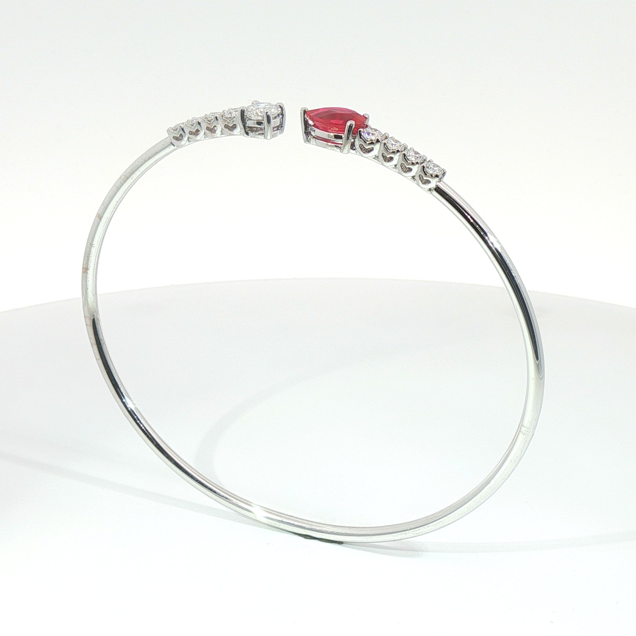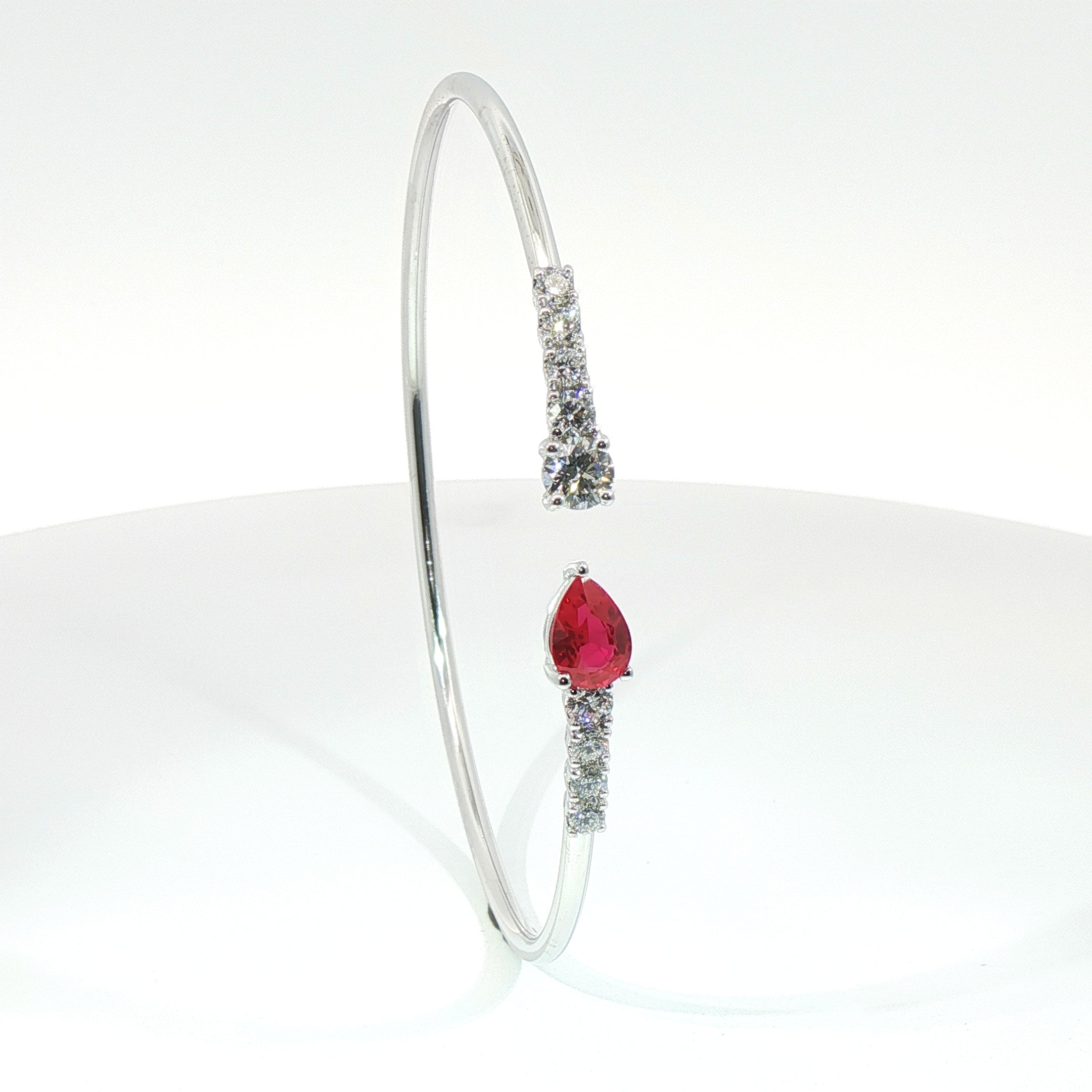 Bracciale Twin in oro bianco con rubino lab-Grown taglio goccia e diamanti Lab-Grown taglio brillante.