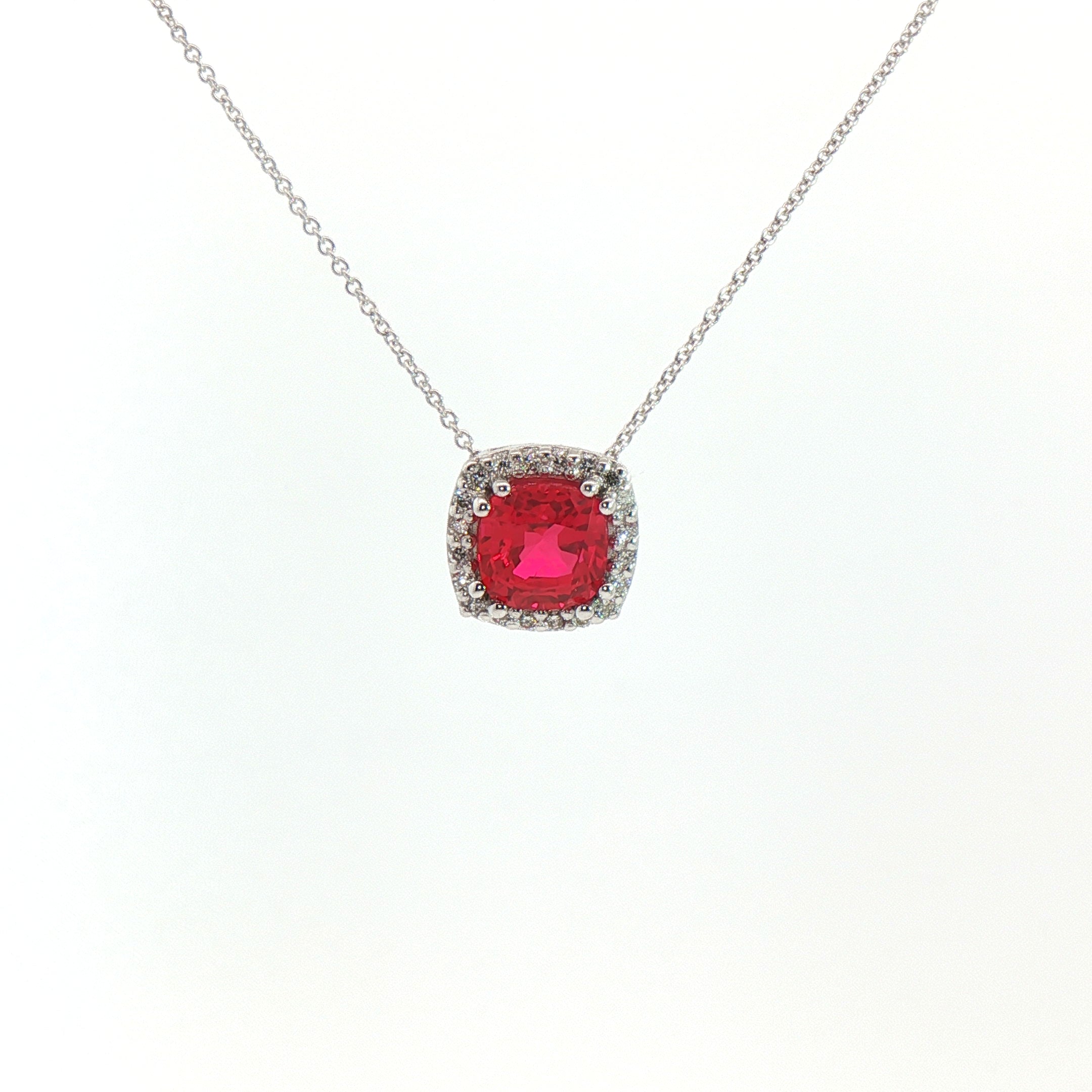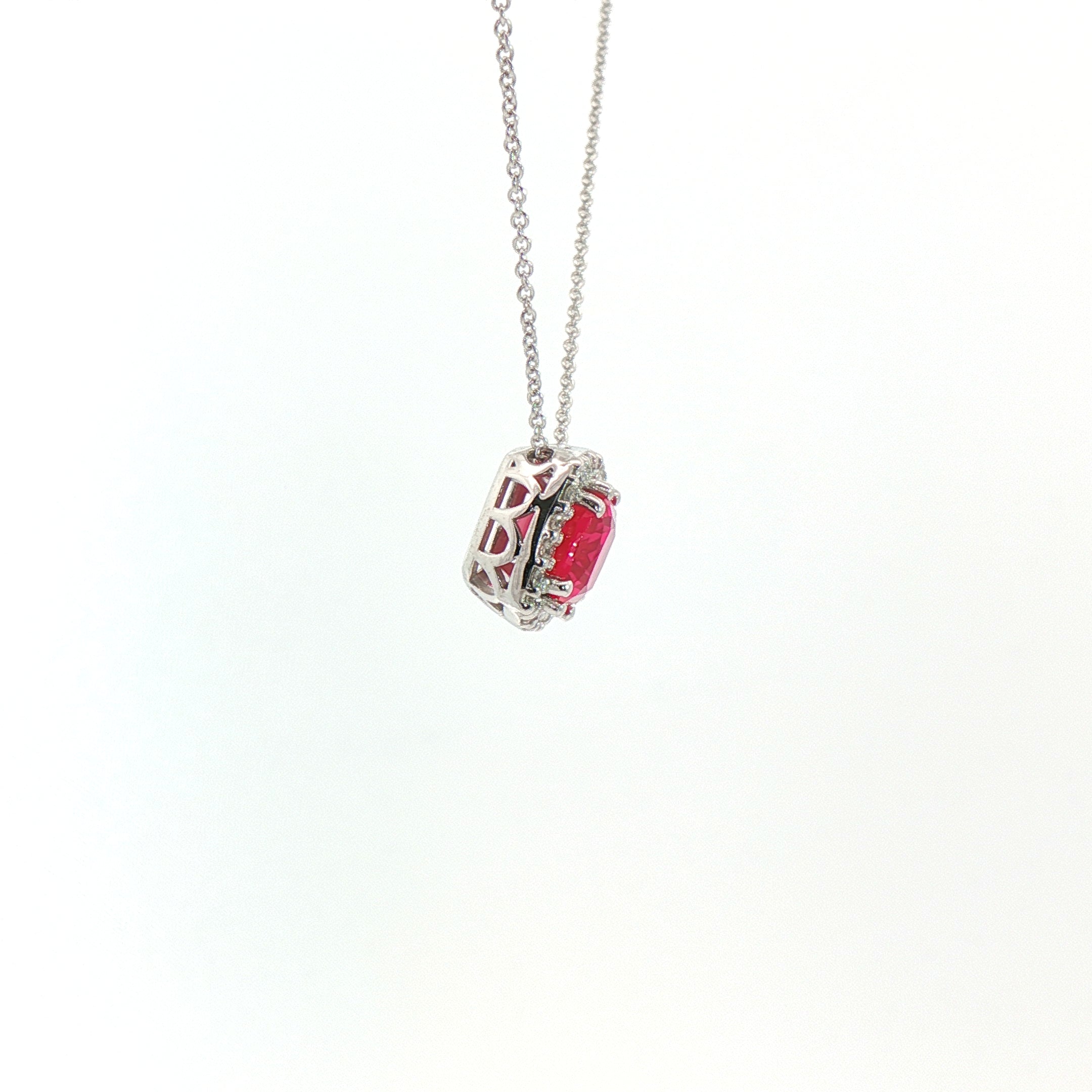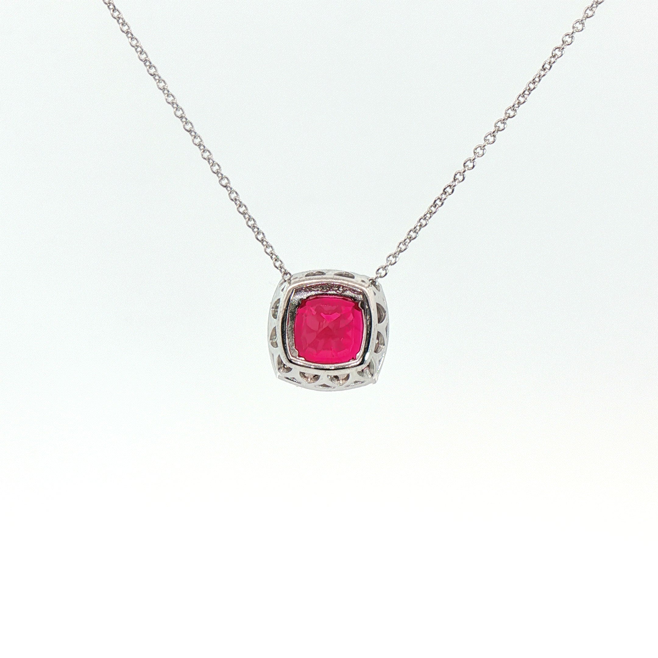 Girocollo in oro bianco con rubino Lab-Grown taglio cuscino e diamanti Lab-Grown taglio brillante.