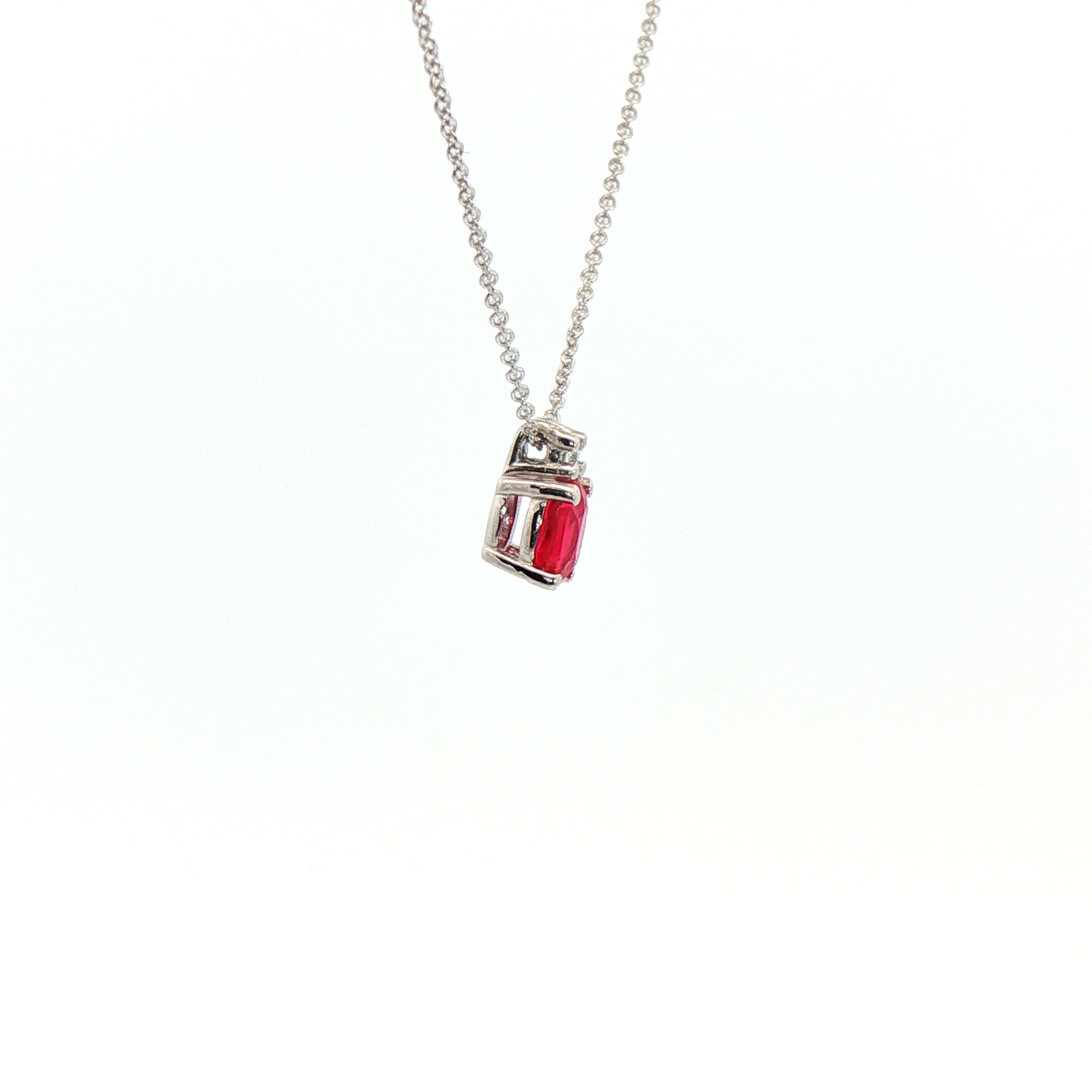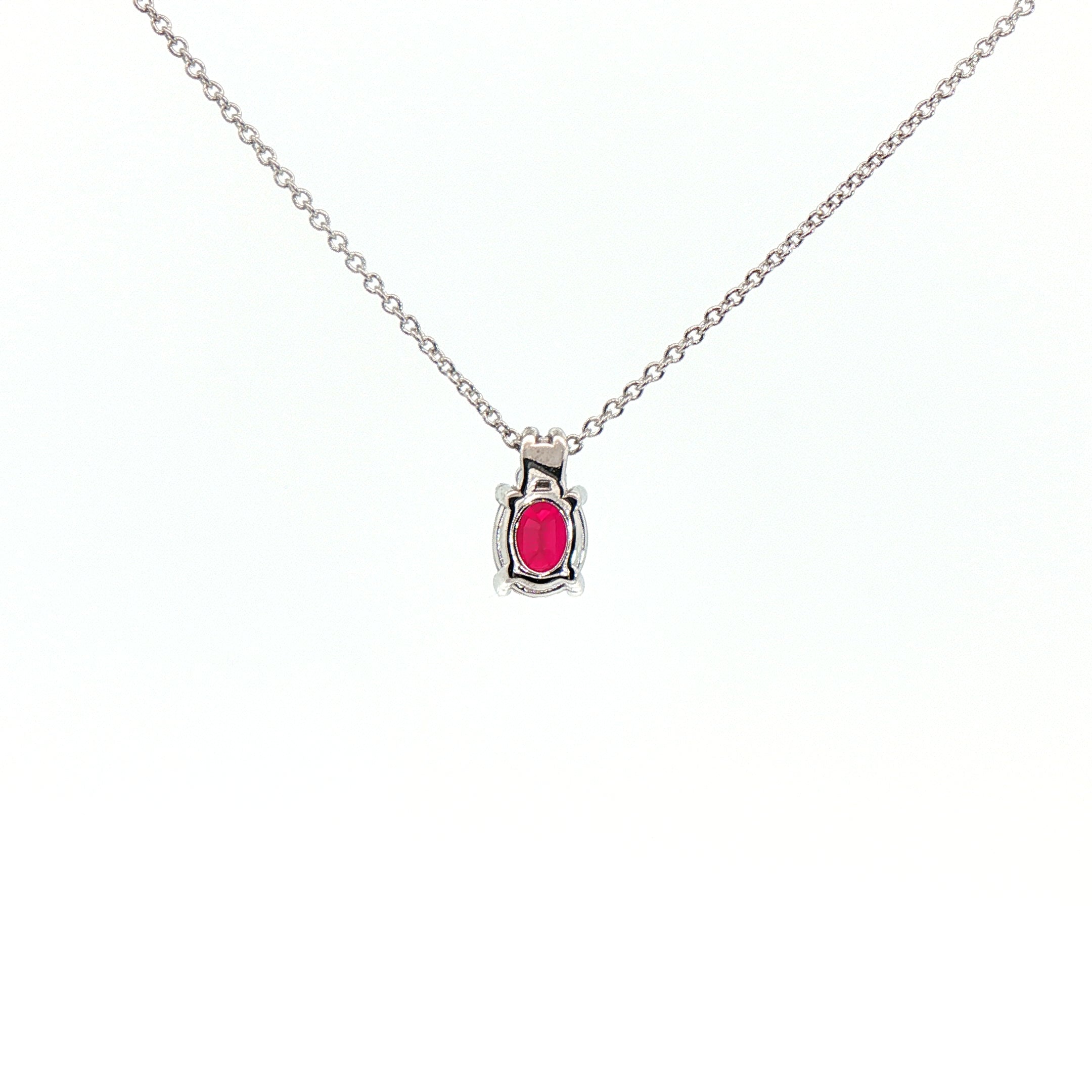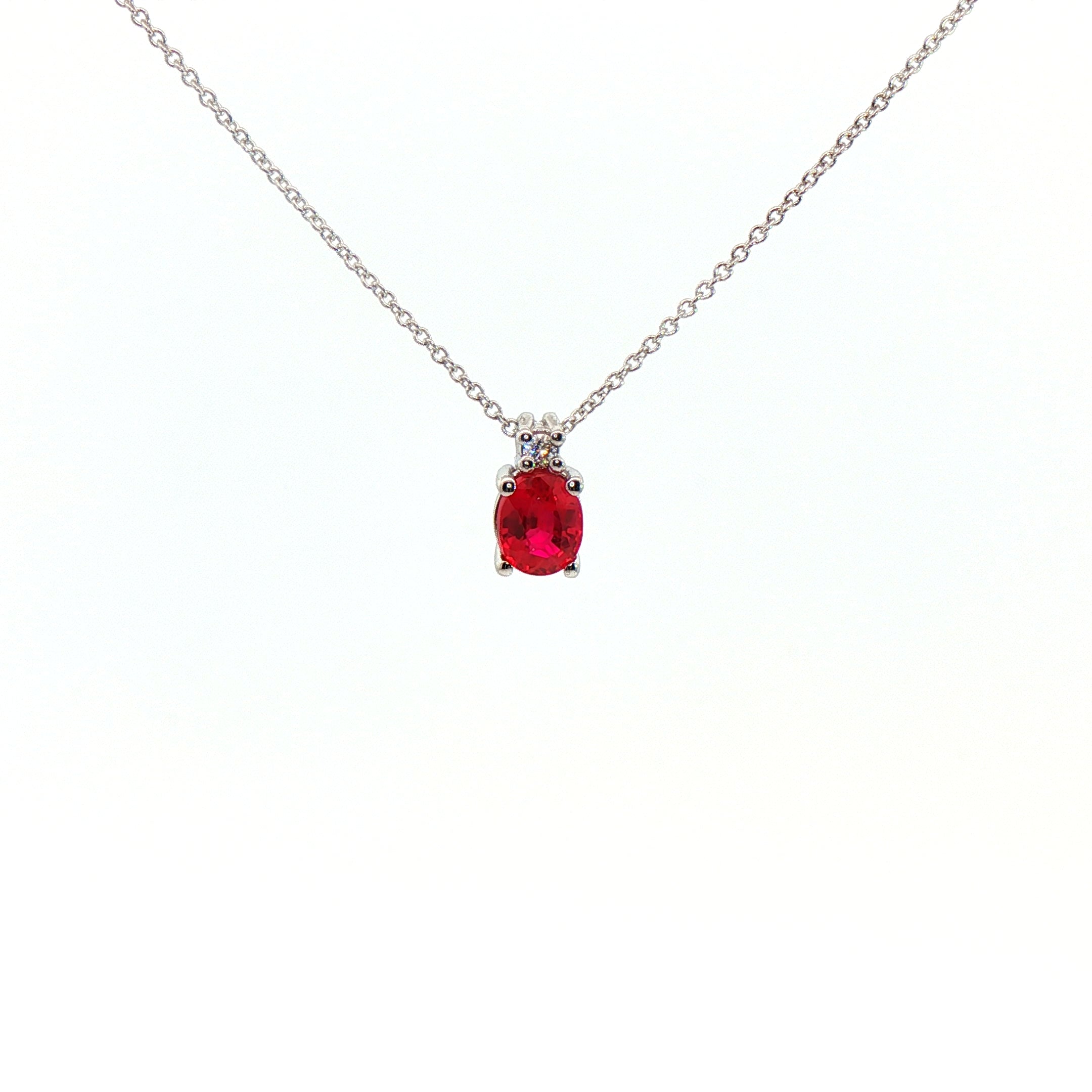 Girocollo in oro bianco con rubino Lab-Grown taglio ovale e diamante Lab-Grown taglio brillante.