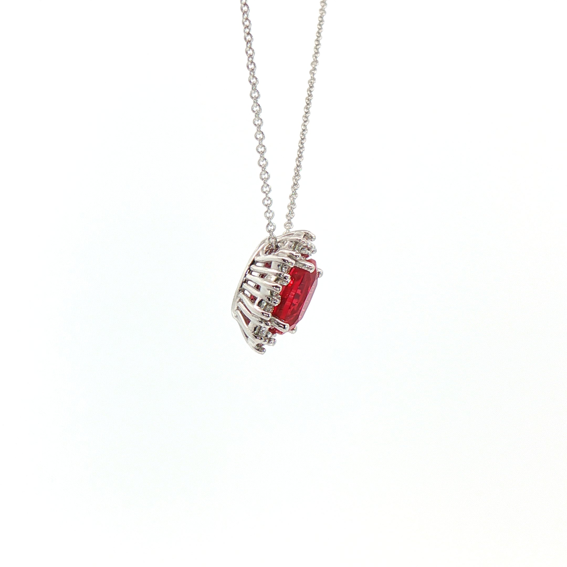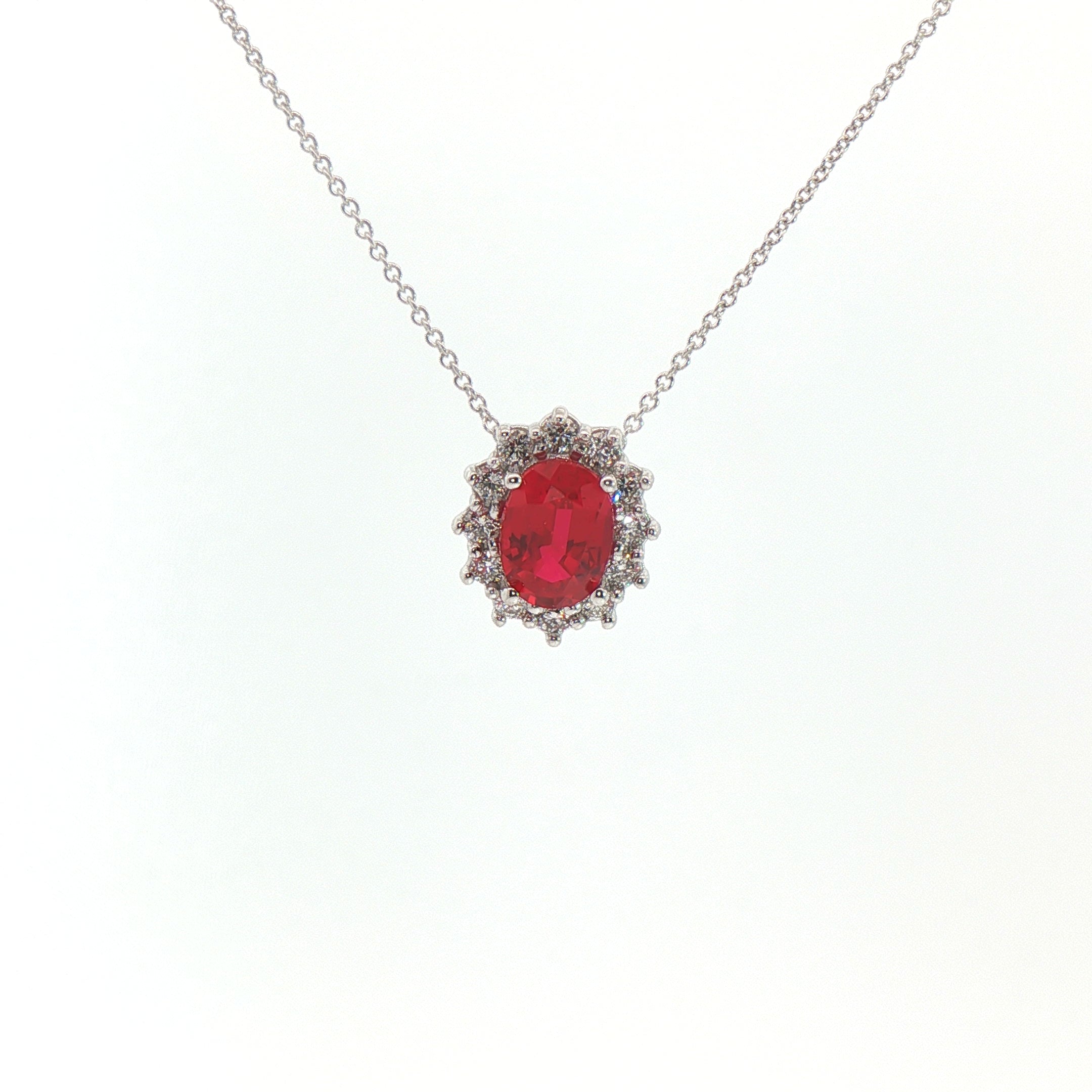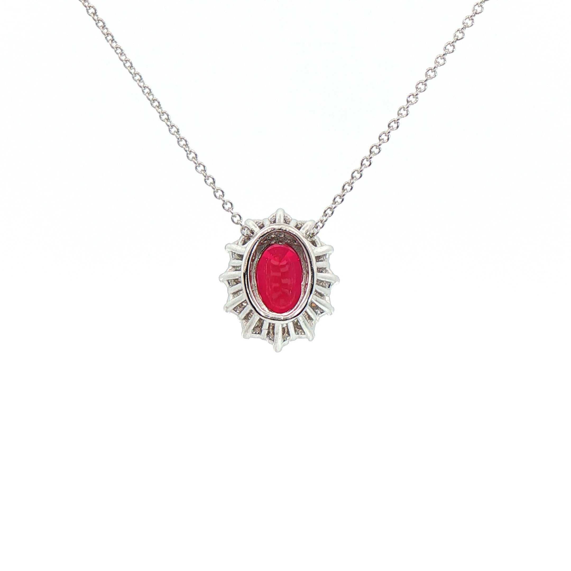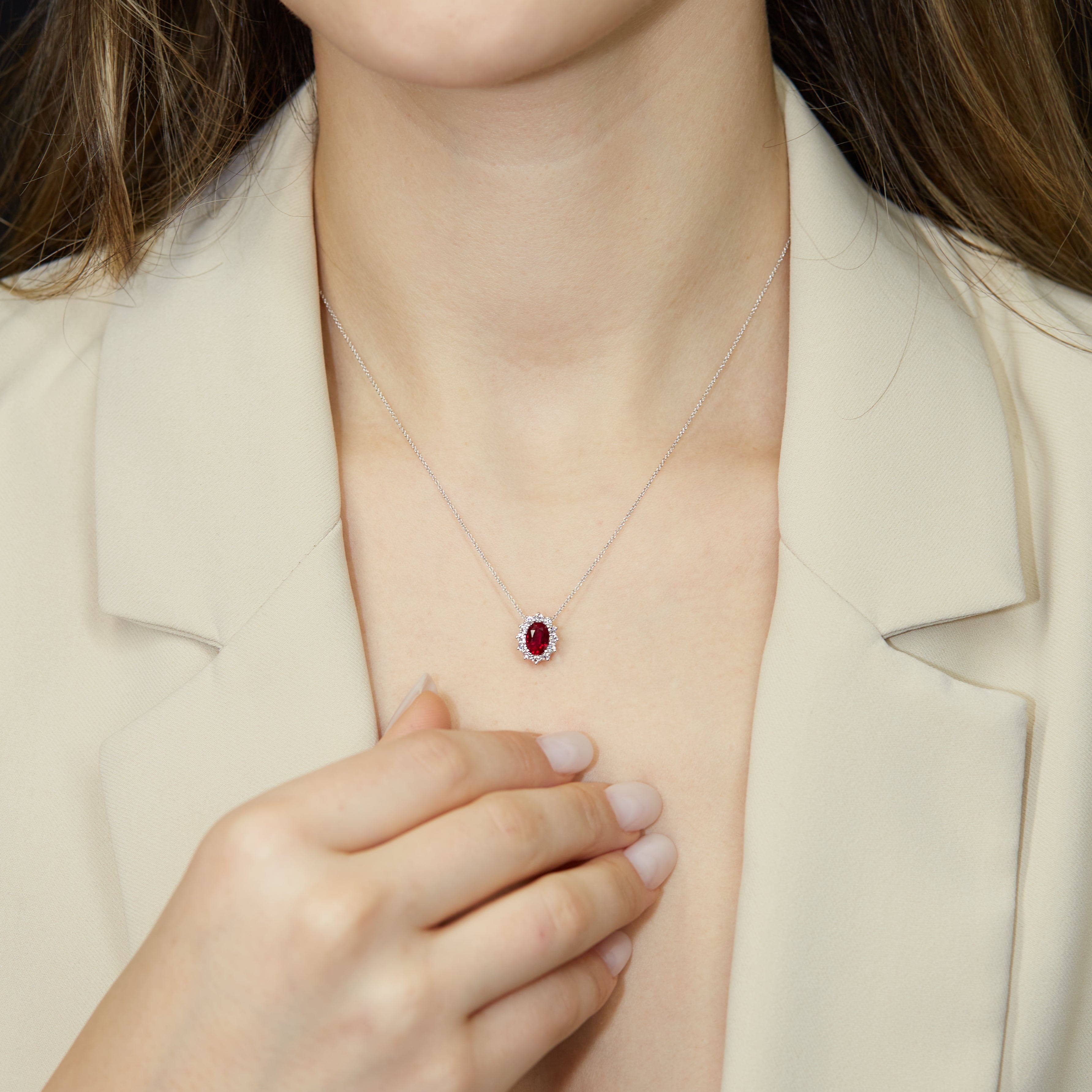 Girocollo in oro bianco con rubino Lab-Grown taglio ovale e diamanti Lab-Grown taglio brillante.