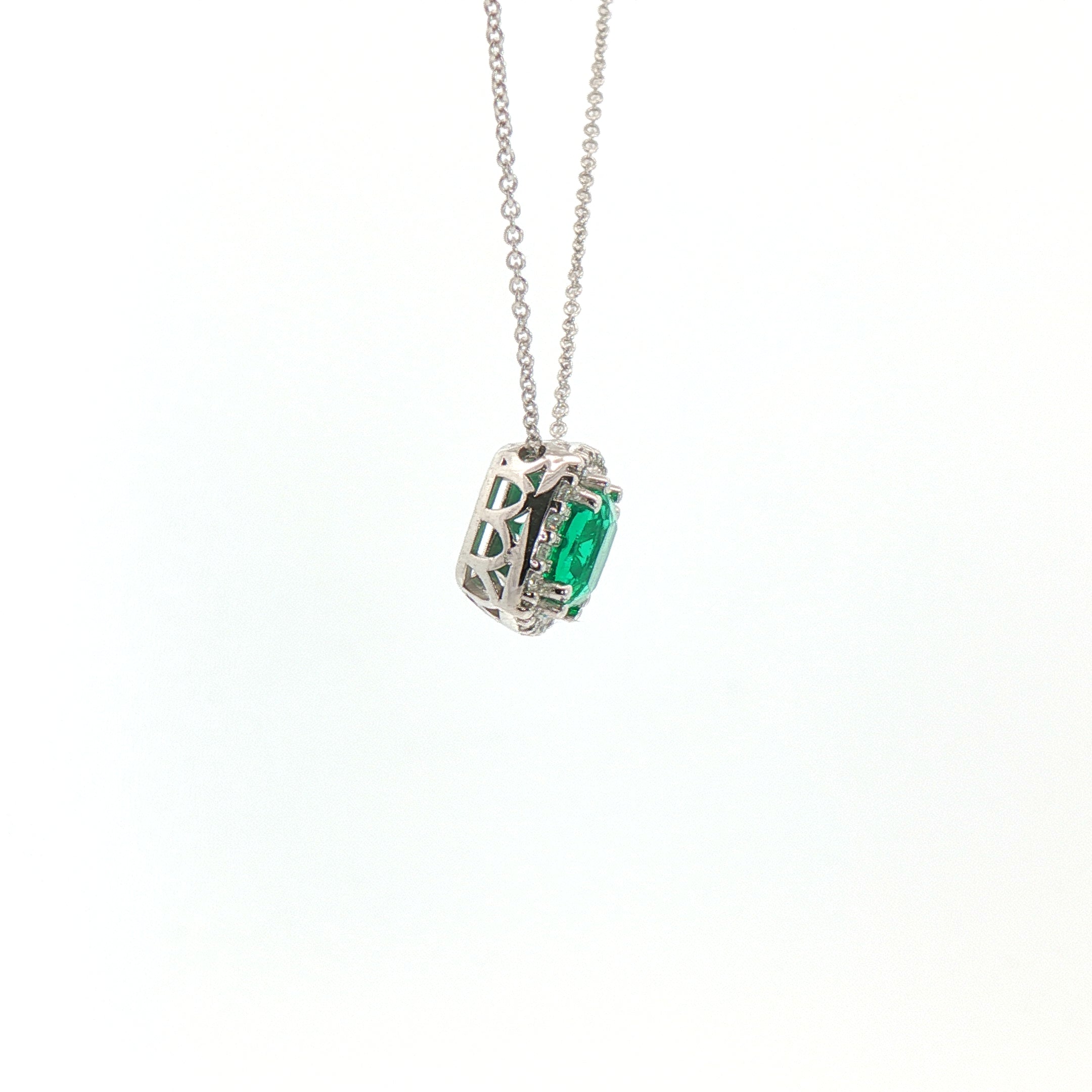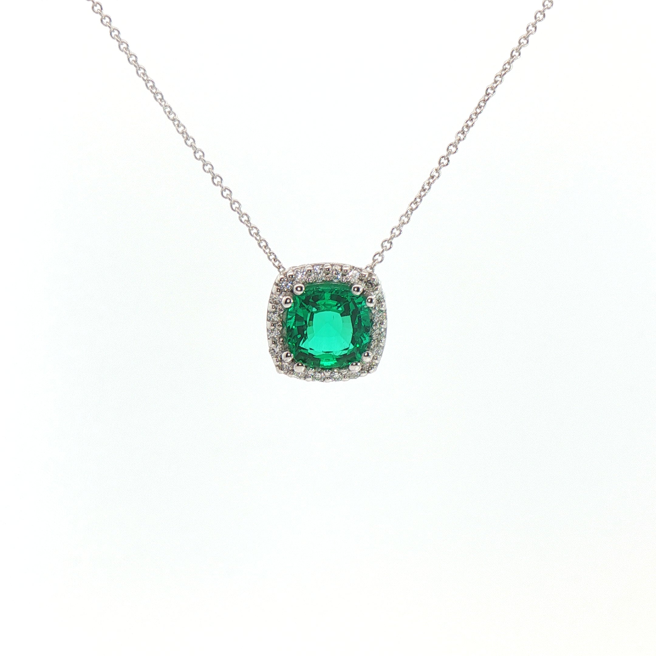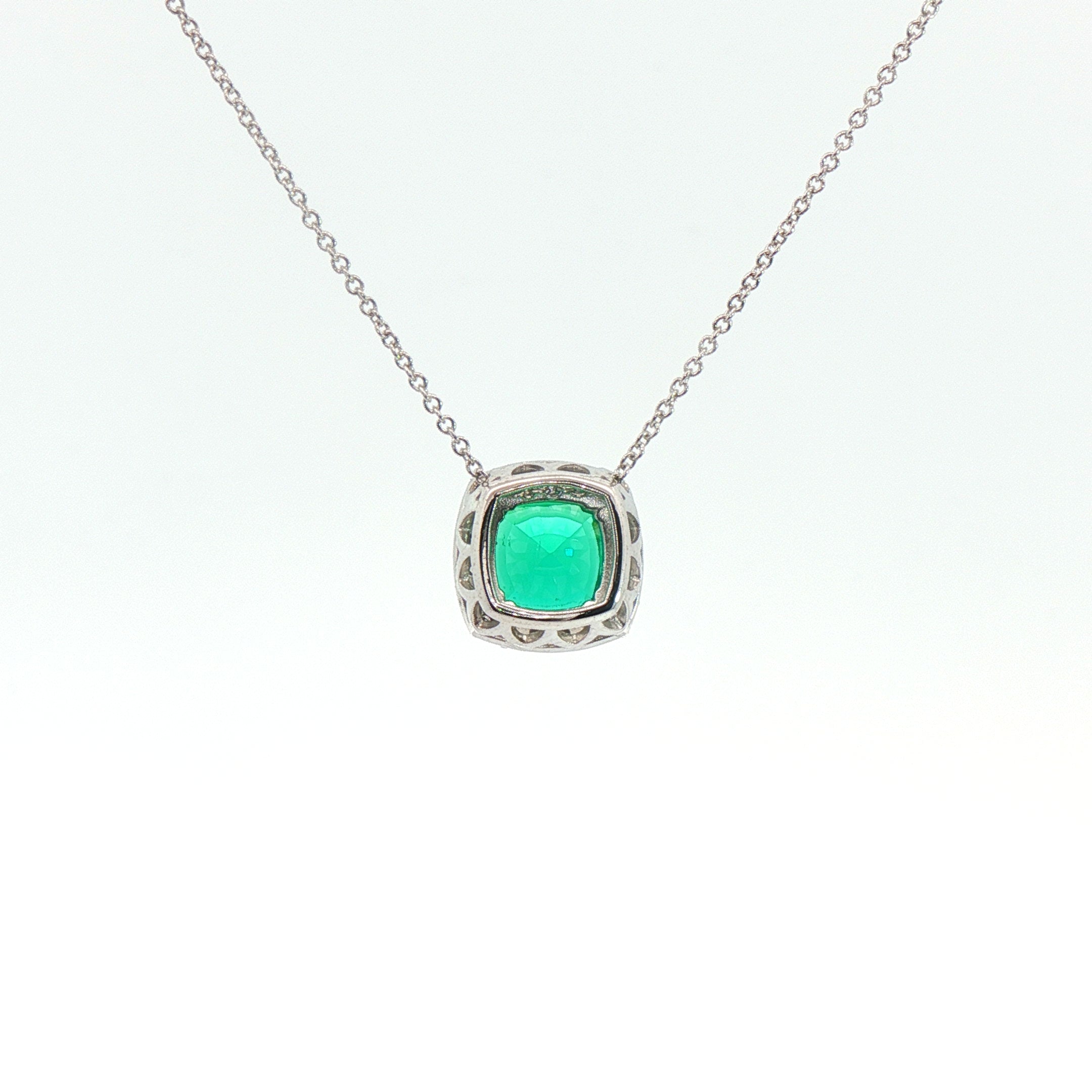 Girocollo in oro bianco con smeraldo Lab-Grown taglio cuscino e diamanti Lab-Grown taglio brillante.
