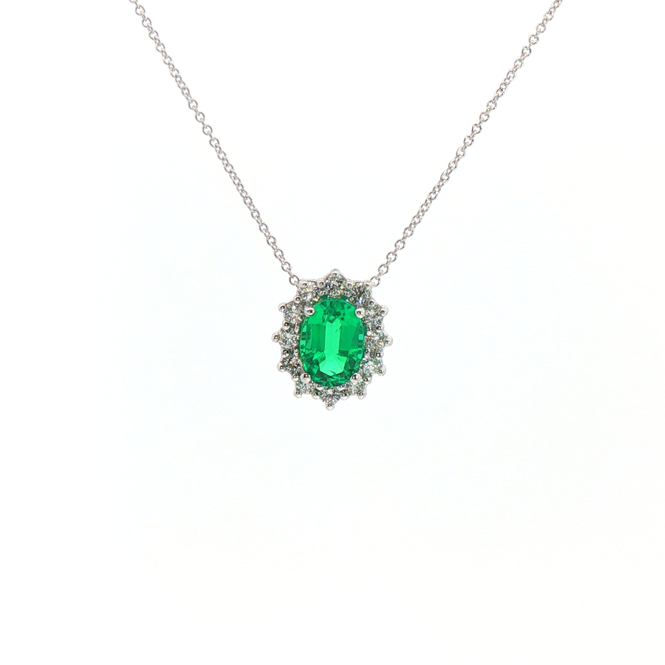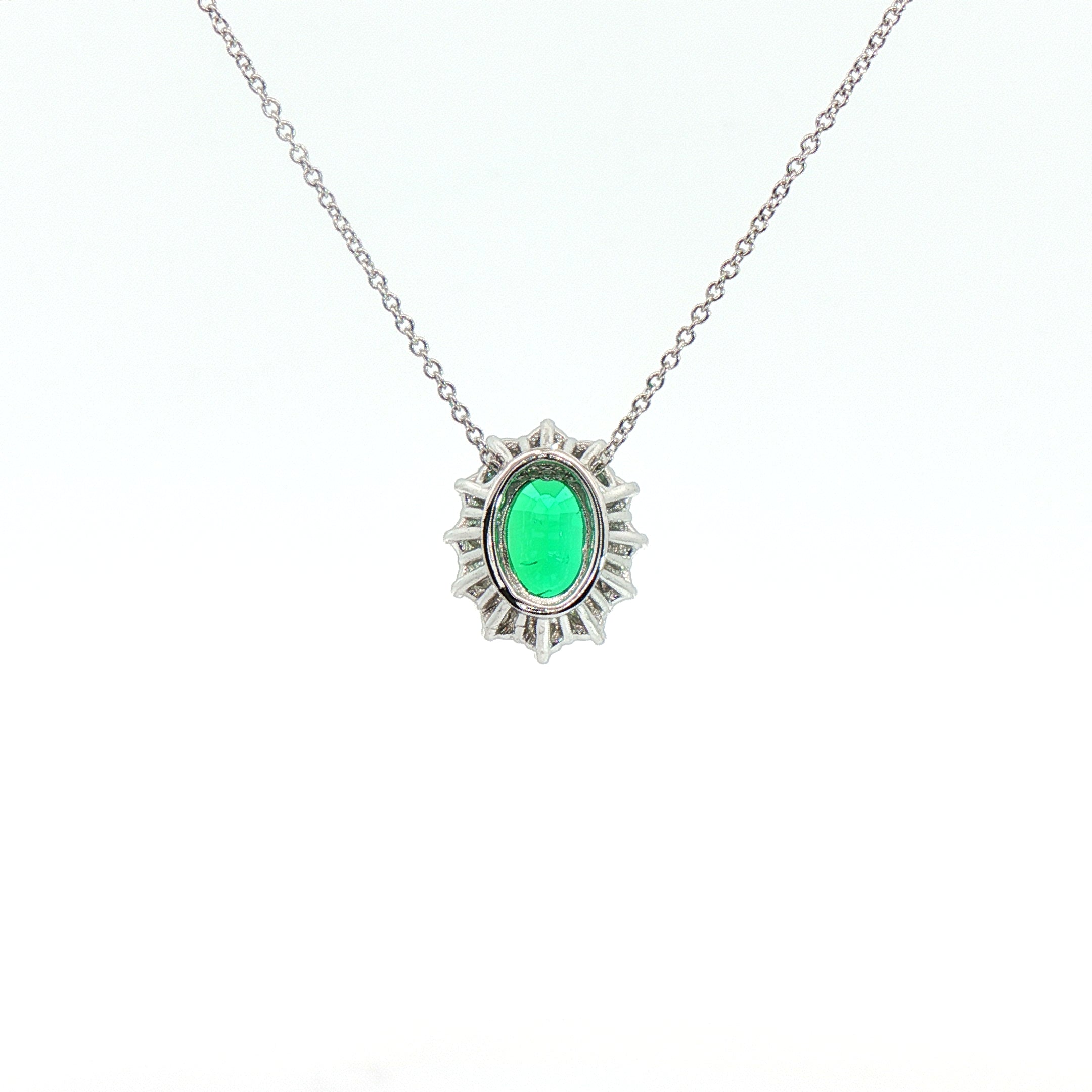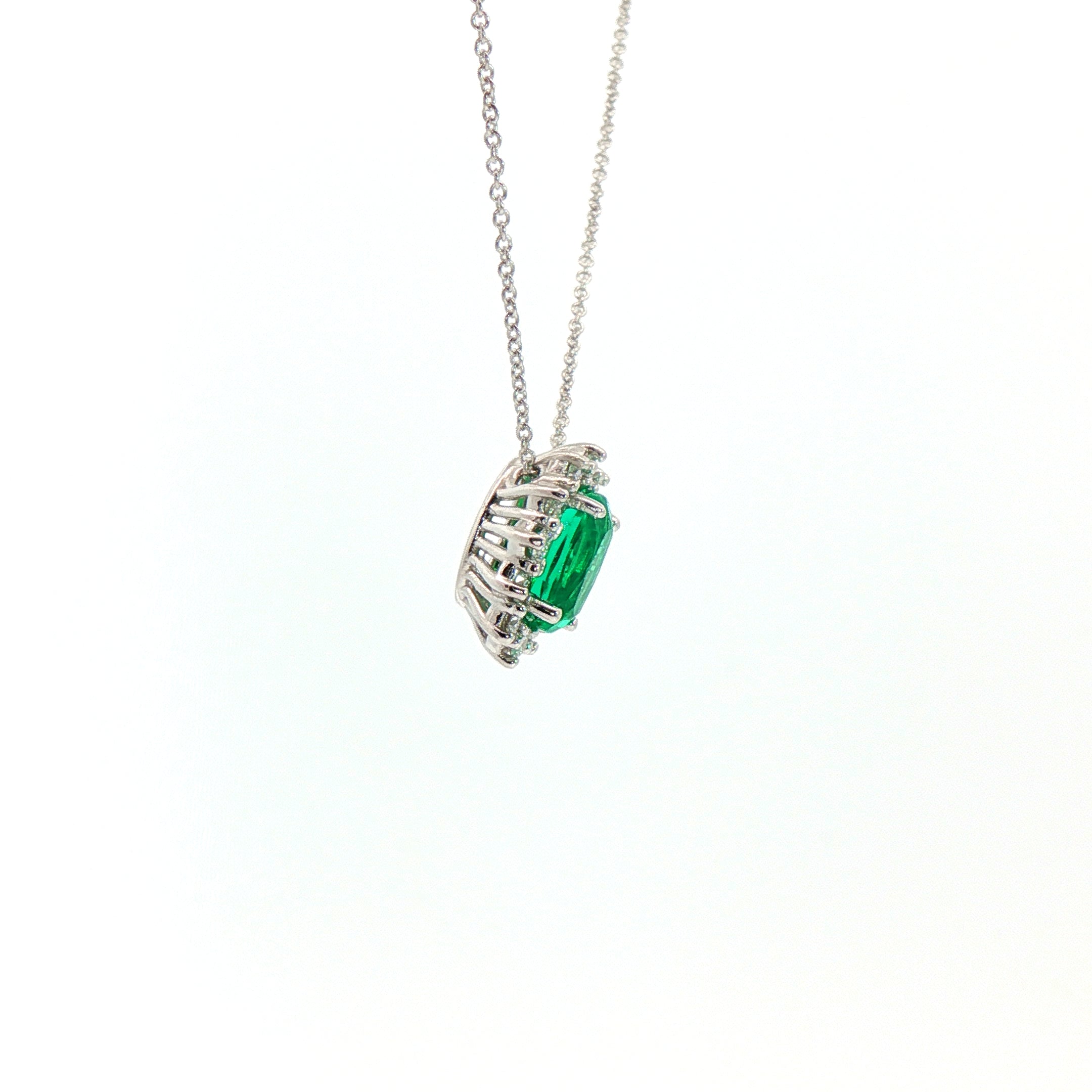 Girocollo in oro bianco con smeraldo Lab-Grown taglio ovale e diamanti Lab-Grown taglio brillante.