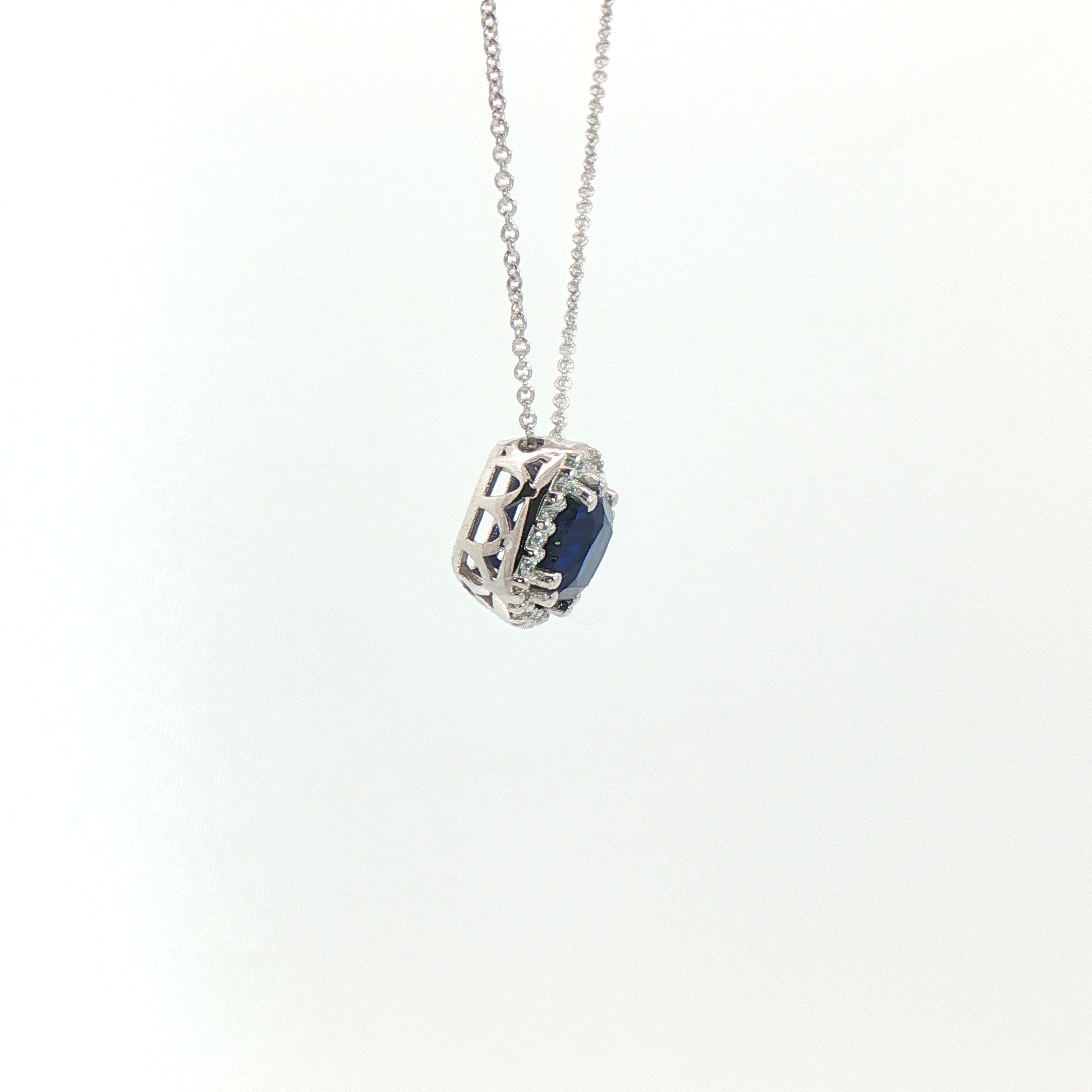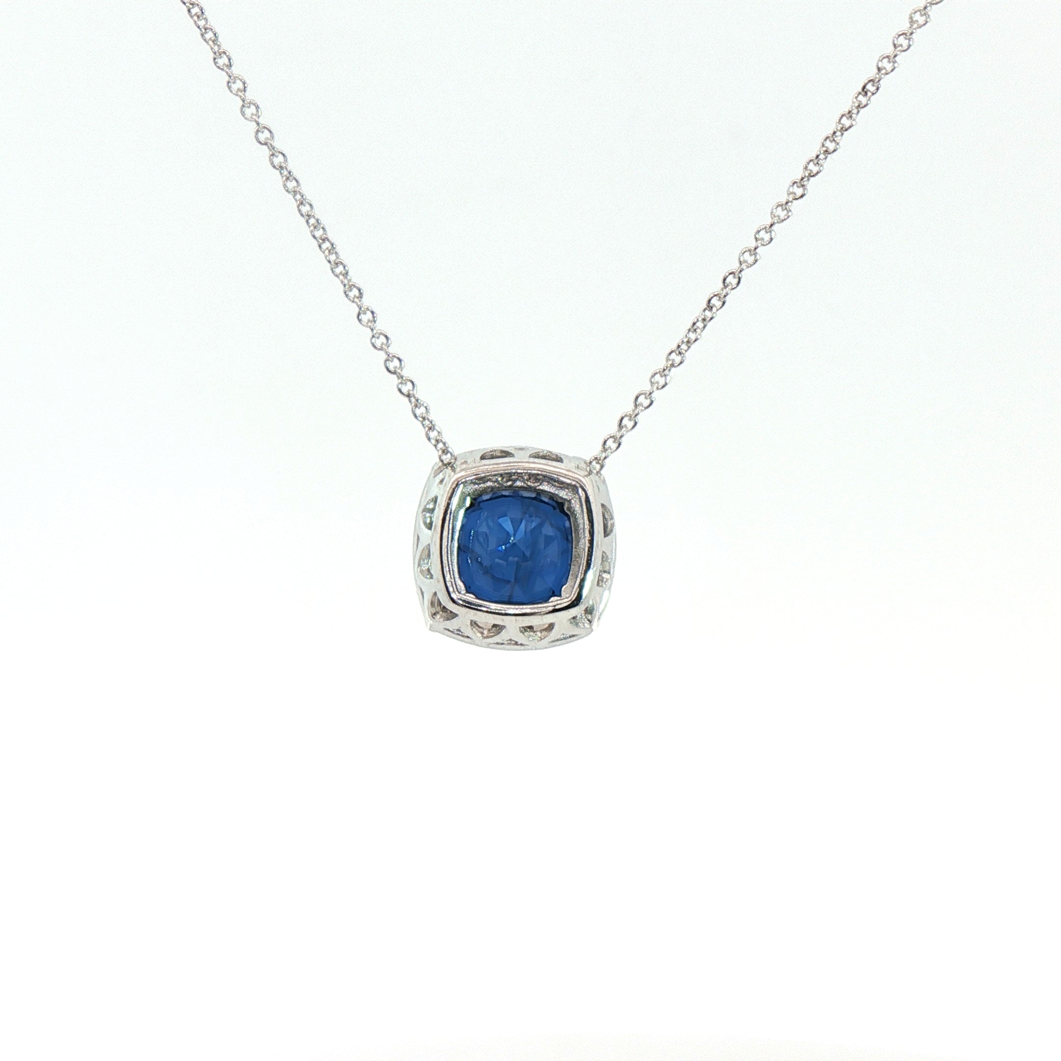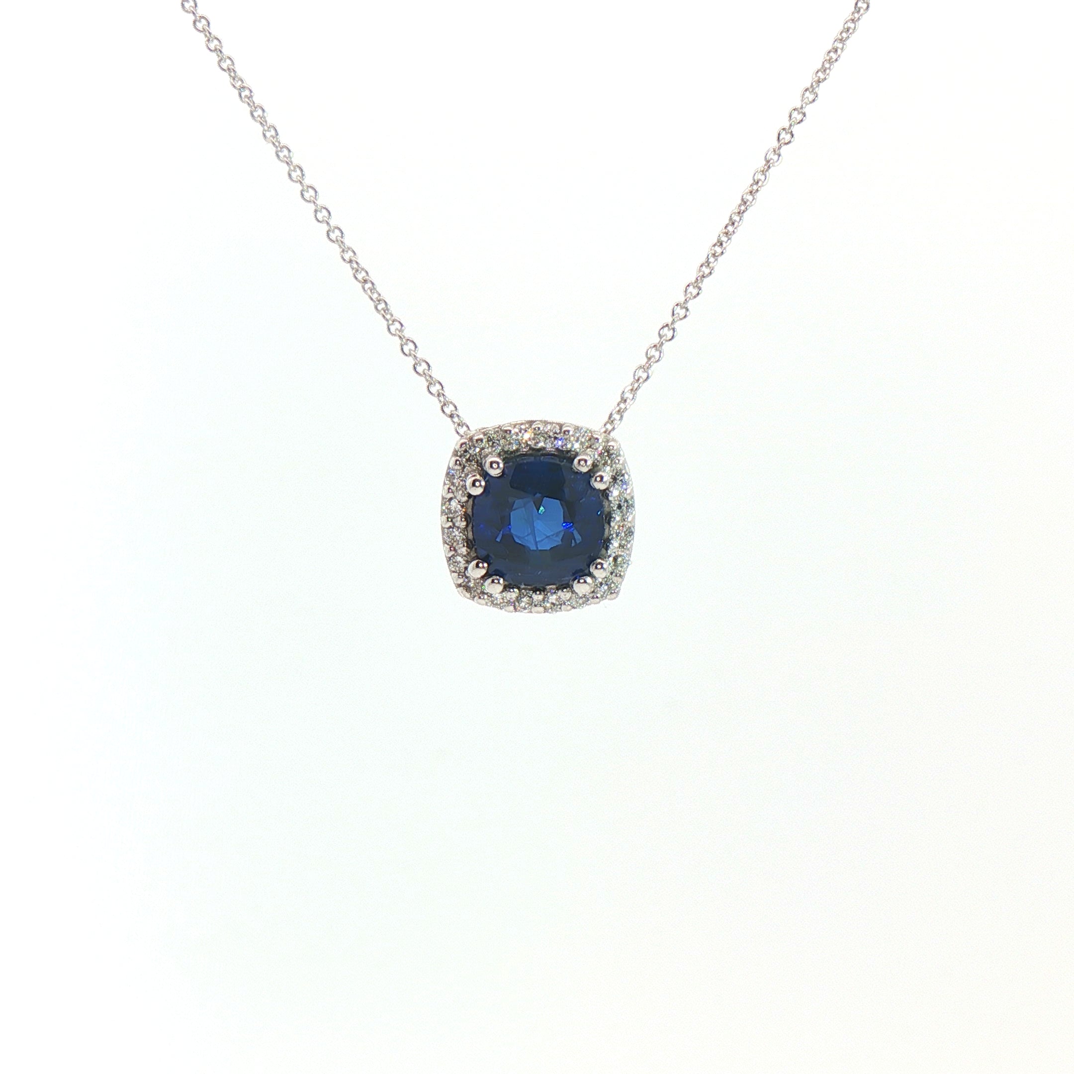 Girocollo in oro bianco con zaffiro Lab-Grown taglio cuscino e diamanti Lab-Grown taglio brillante.