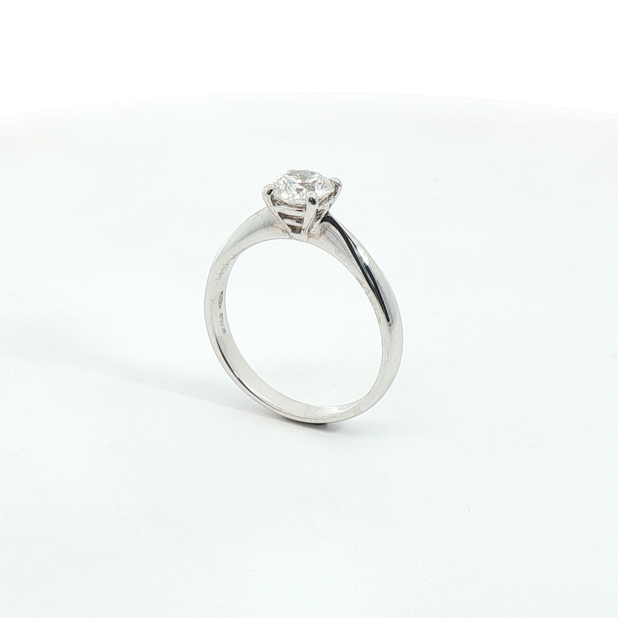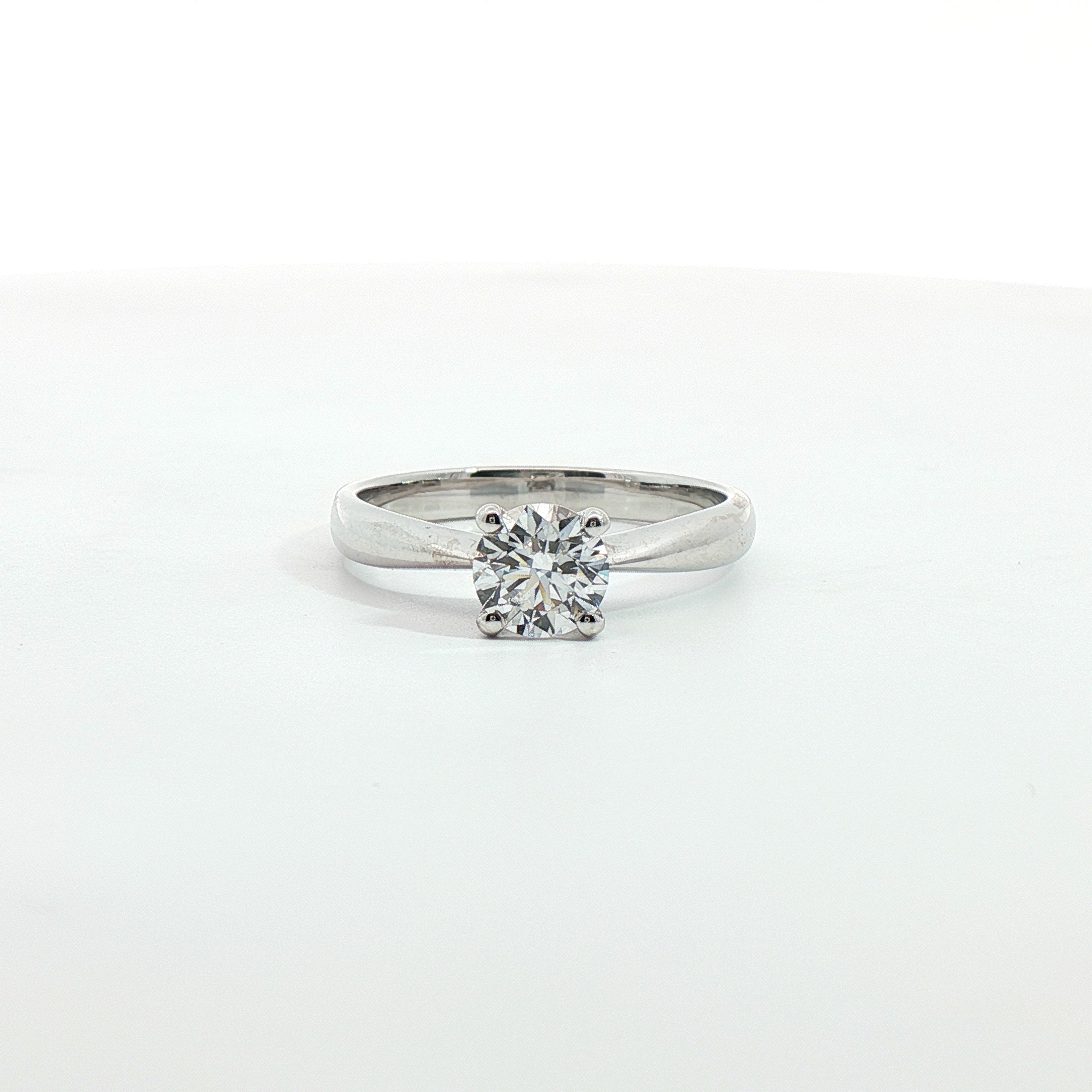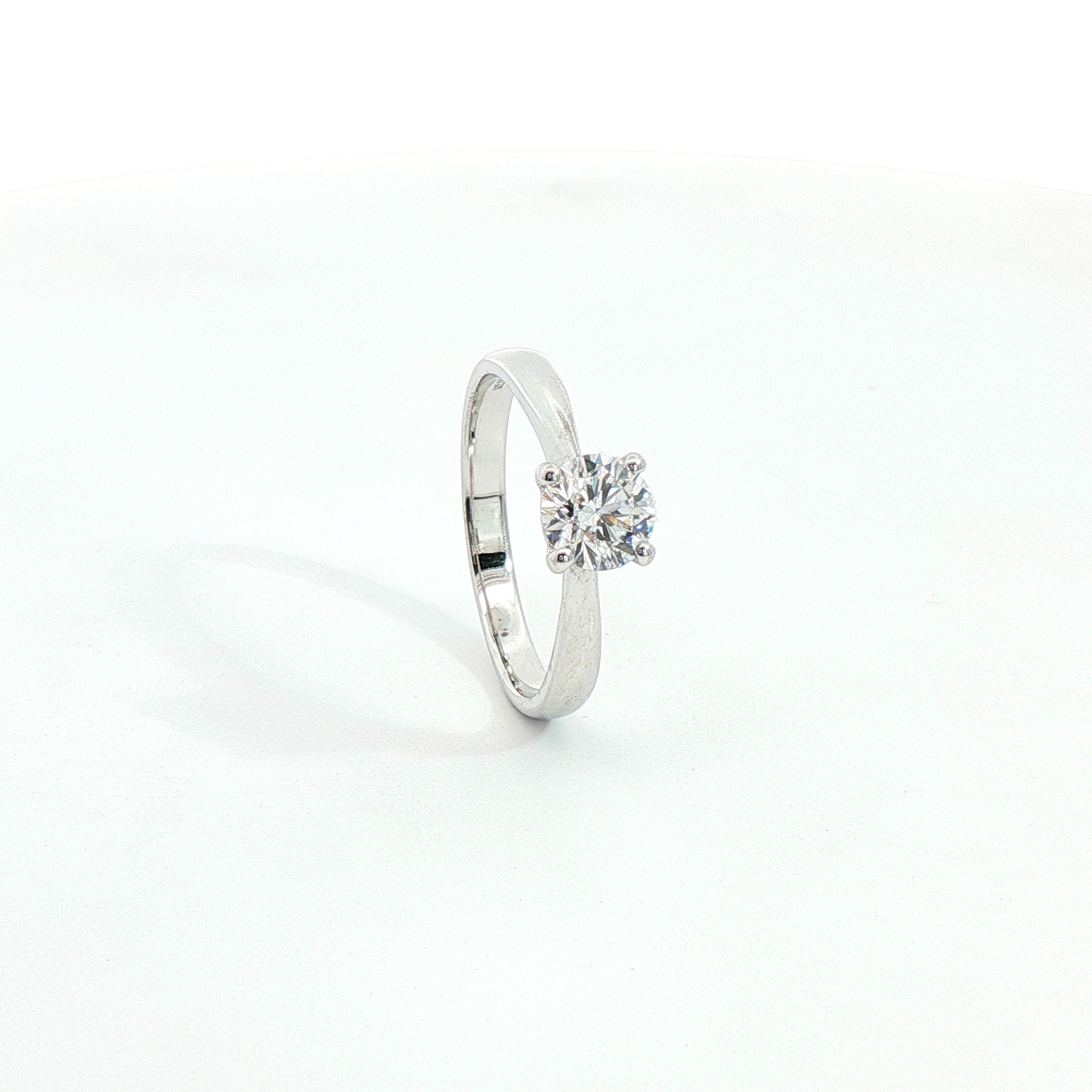 Il Solitario in oro bianco 18 kt, impreziosito da un diamante lab-grown certificato taglio brillante da 0,73 carato, colore D e purezza VS1, è un esempio di eleganza e lusso nella alta gioielleria.