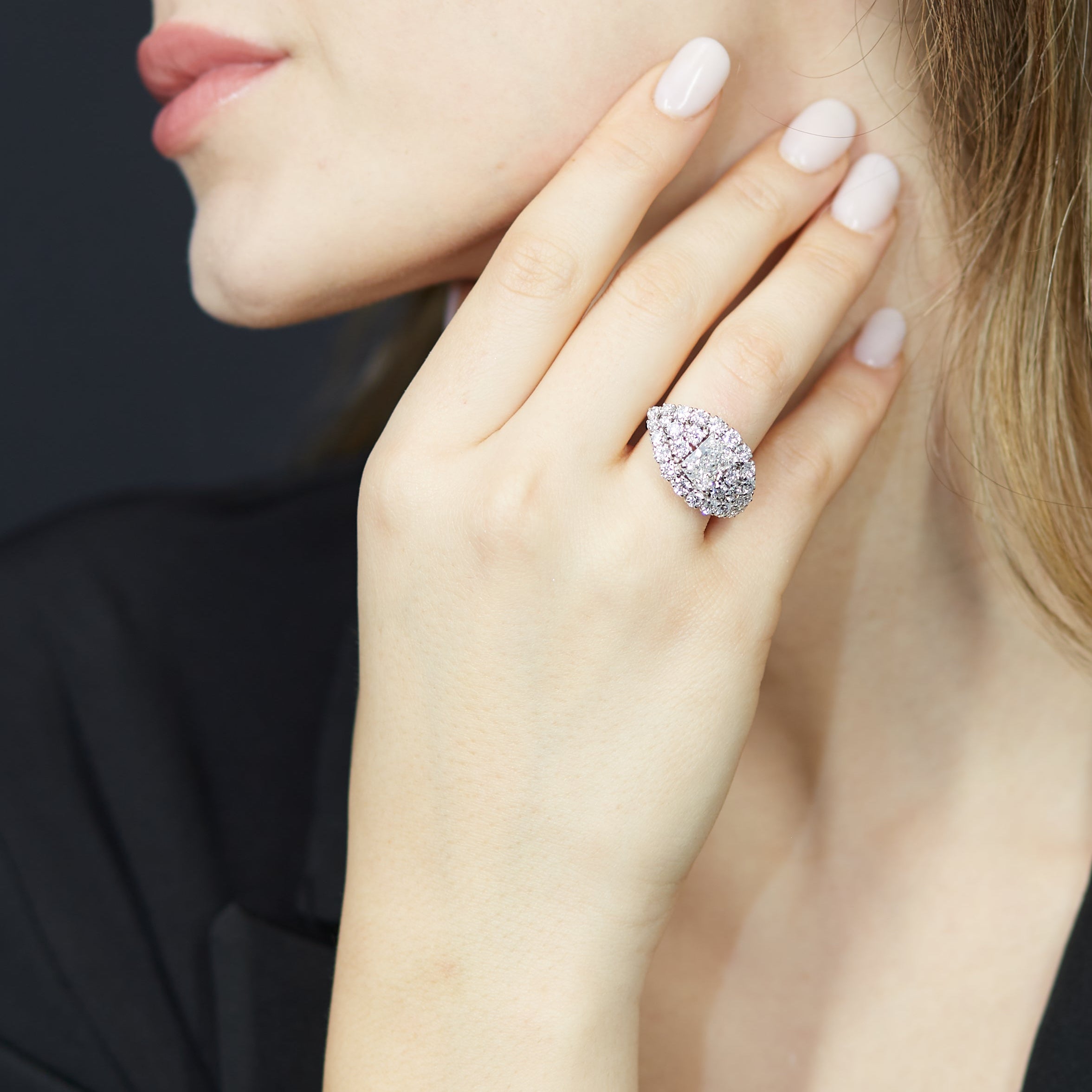 Con un tocco di originalità, per questo anello in oro bianco 18 kt, composto da un diamante centrale accresciuto in laboratorio a taglio radiant da 2,01 carati, contornato da 2,52 carati suddivisi in 26 diamanti lab-grown a taglio brillante per un totale complessivo di 4,53 carati.
