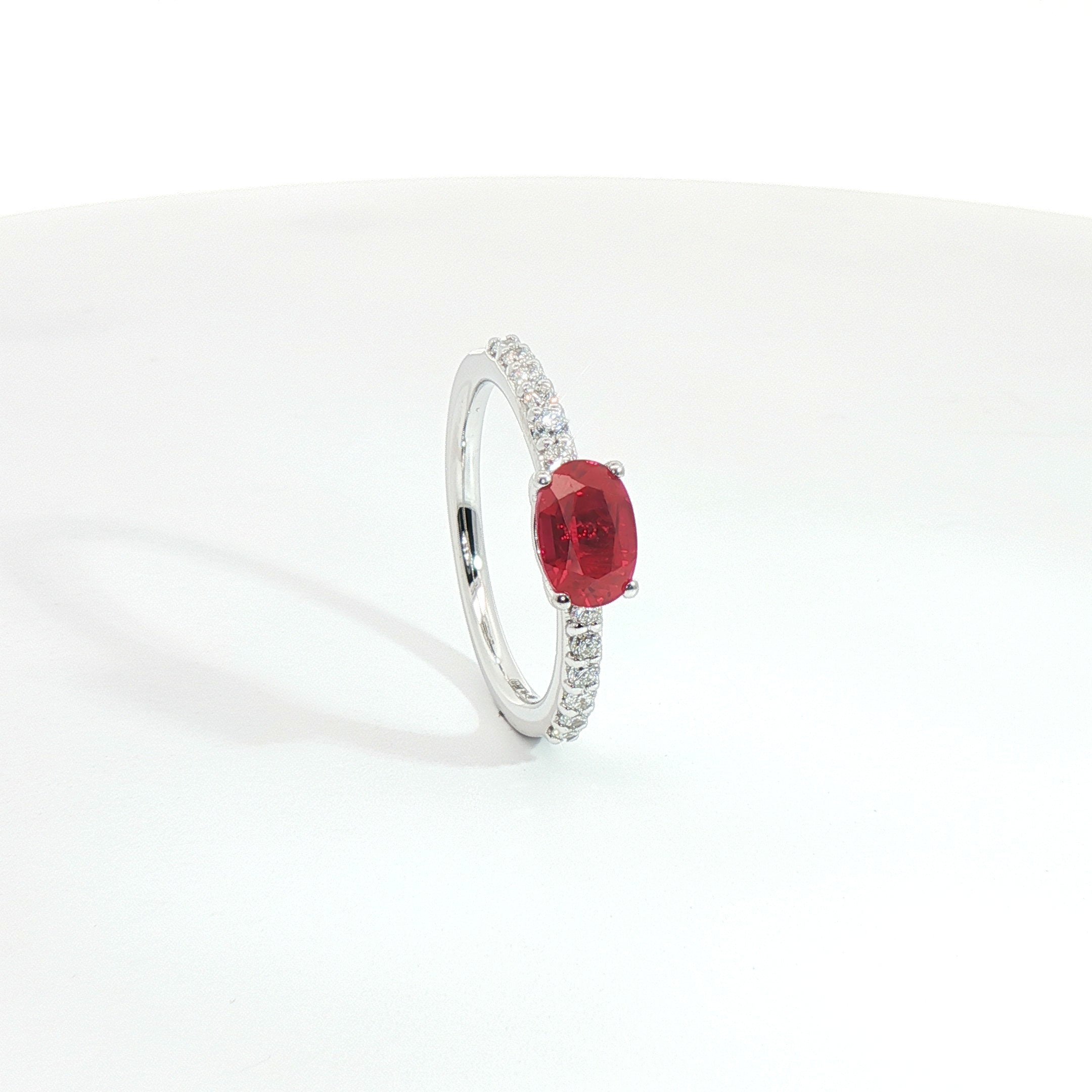 Anello in oro bianco con rubino Lab-Grown taglio ovale e diamanti Lab-grown taglio brillante.