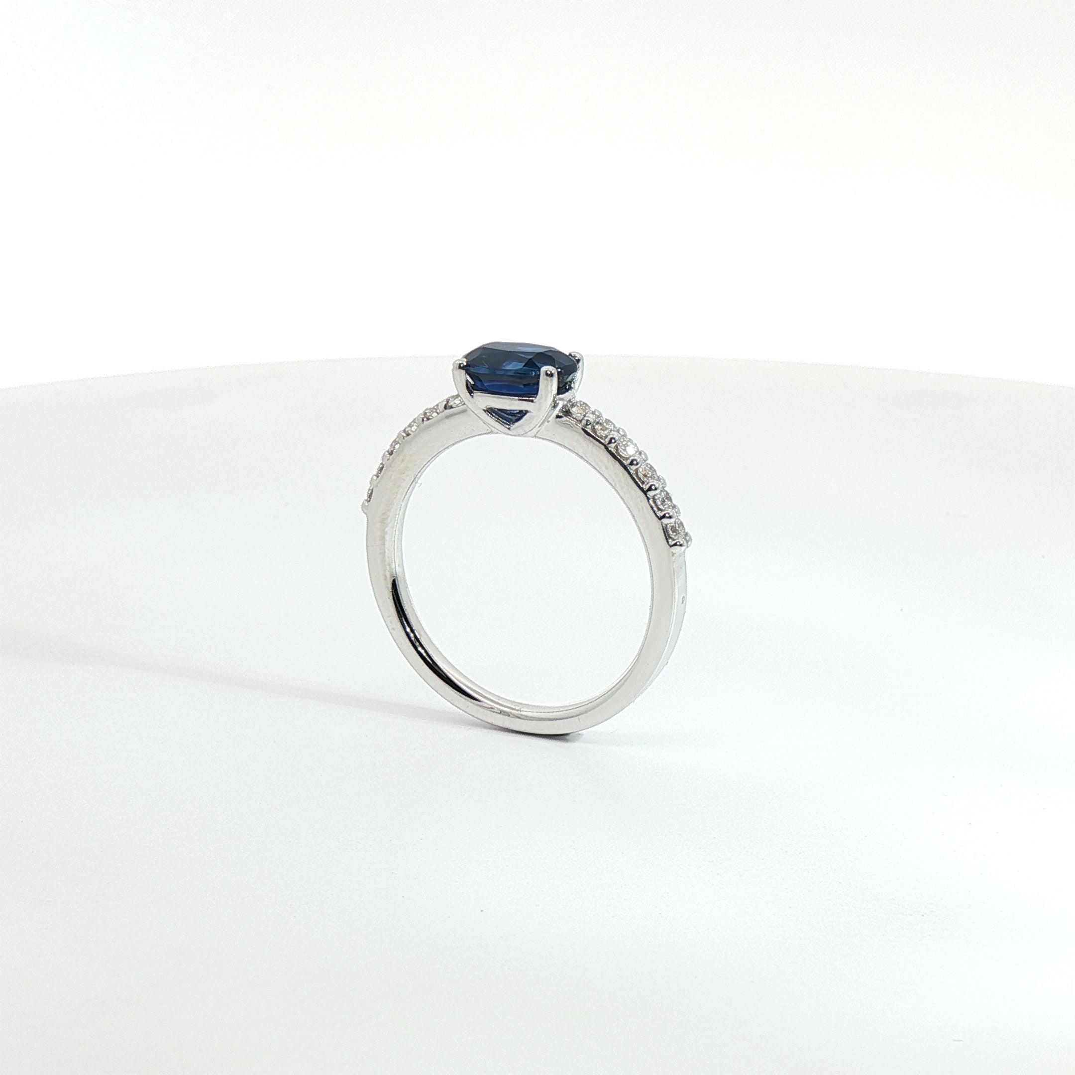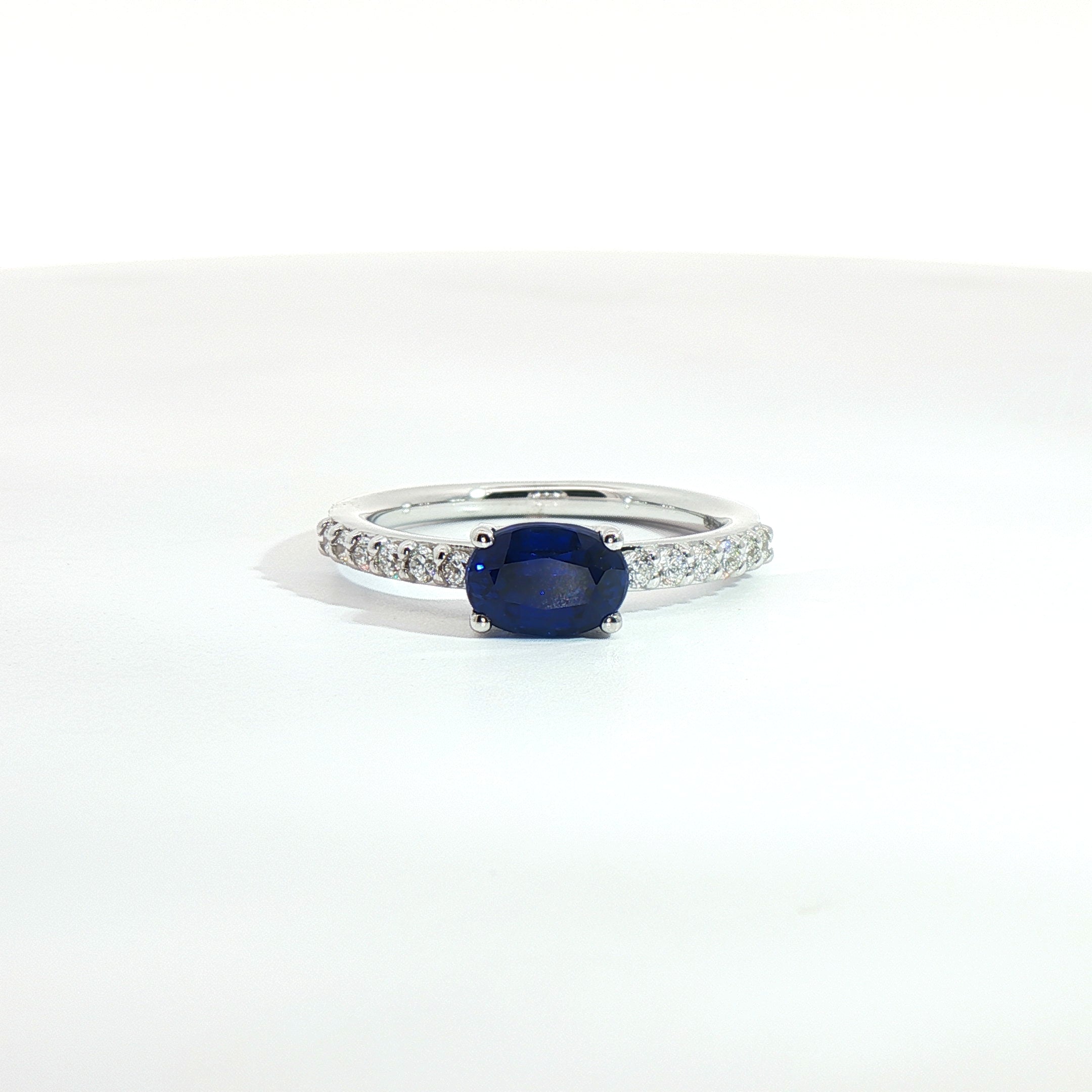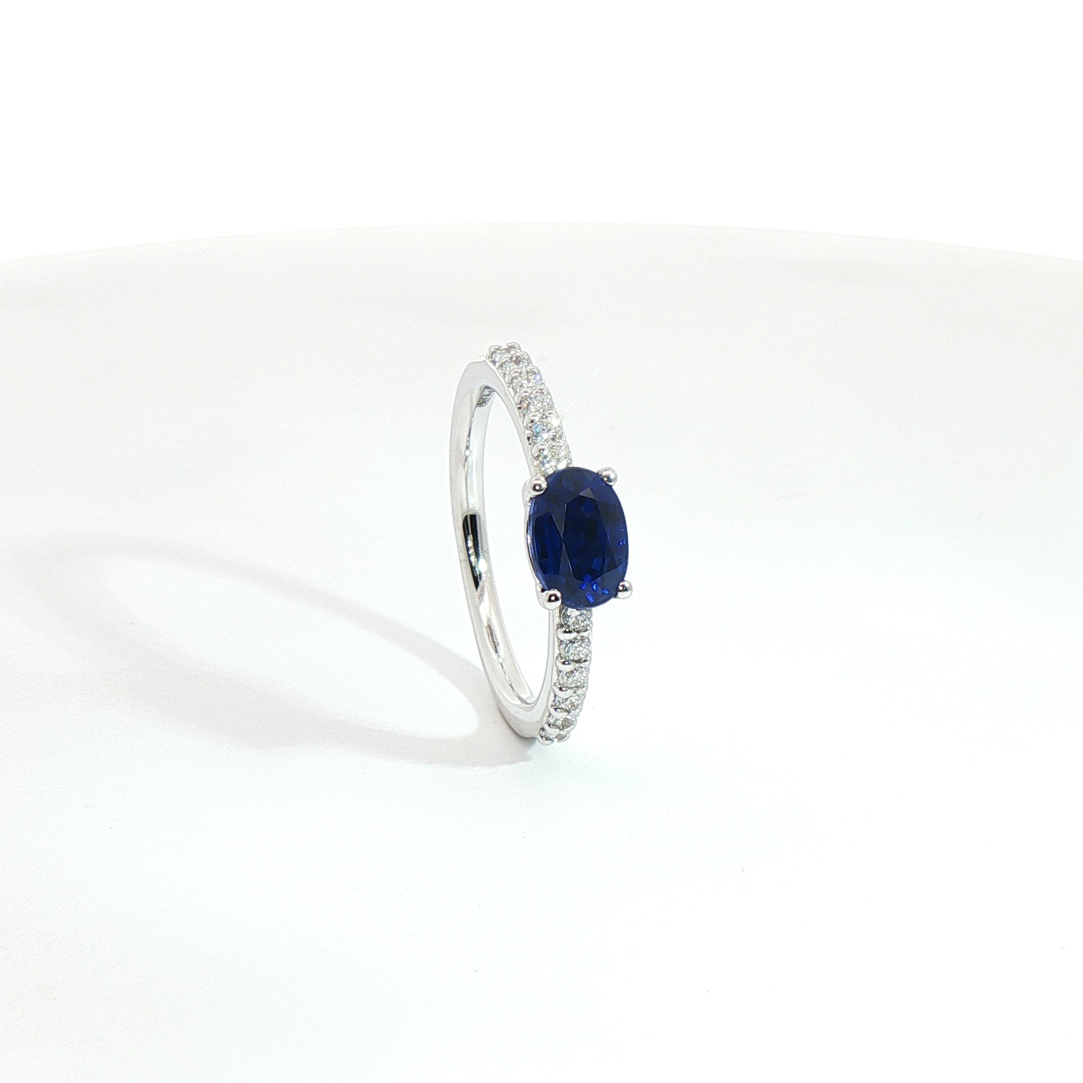 Anello in oro bianco con zaffiro Lab-Grown taglio ovale e diamanti lab-Grown taglio brillante.