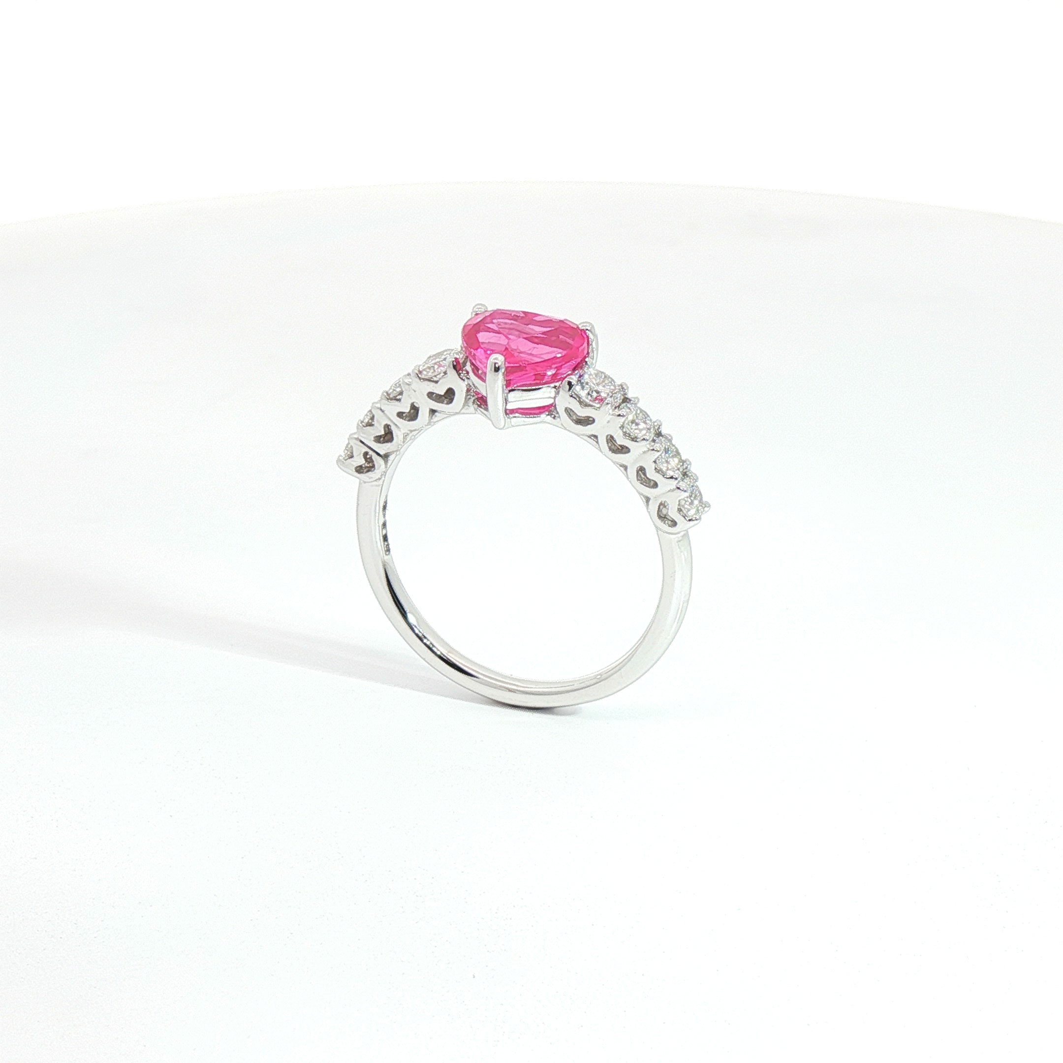 Anello in oro bianco con zaffiro rosa Lab-Grown taglio cuore e diamanti Lab-Grown taglio brillante.