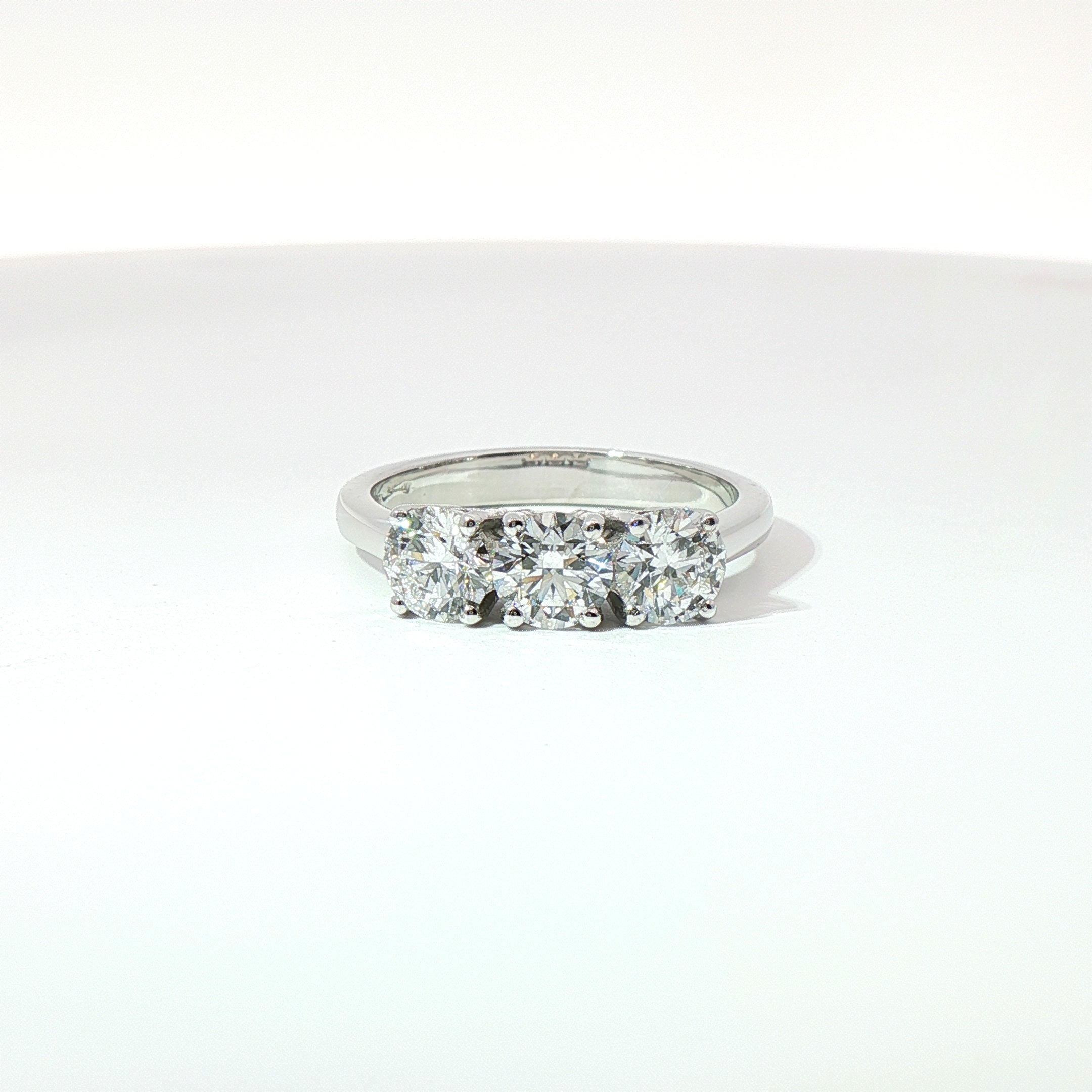 Anello Trilogy in oro bianco con diamanti Lab-Grown taglio brillante, 1,56 carati.