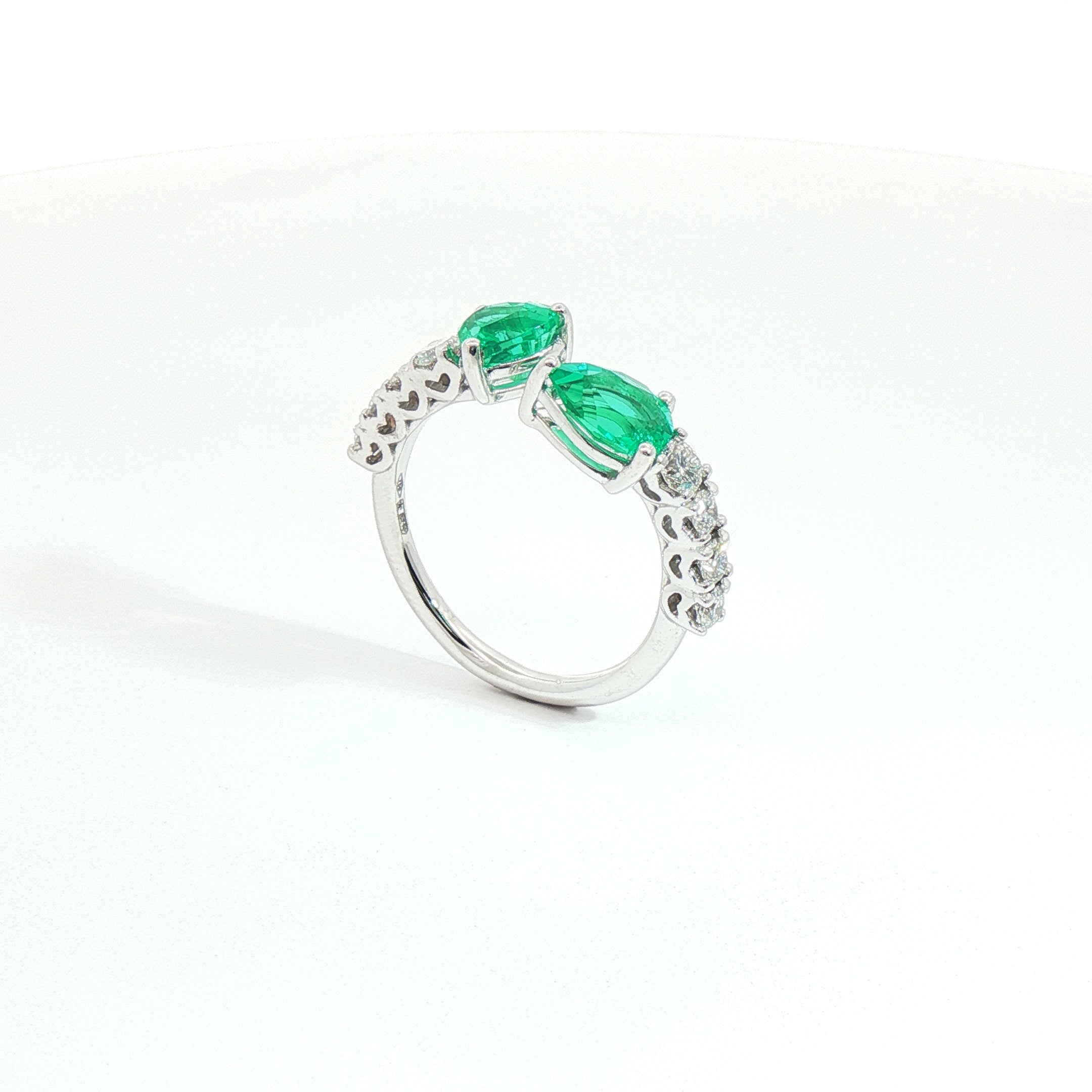 Anello Twin in oro bianco con smeraldi Lab-Grown e diamanti Lab-Grown taglio brillante.