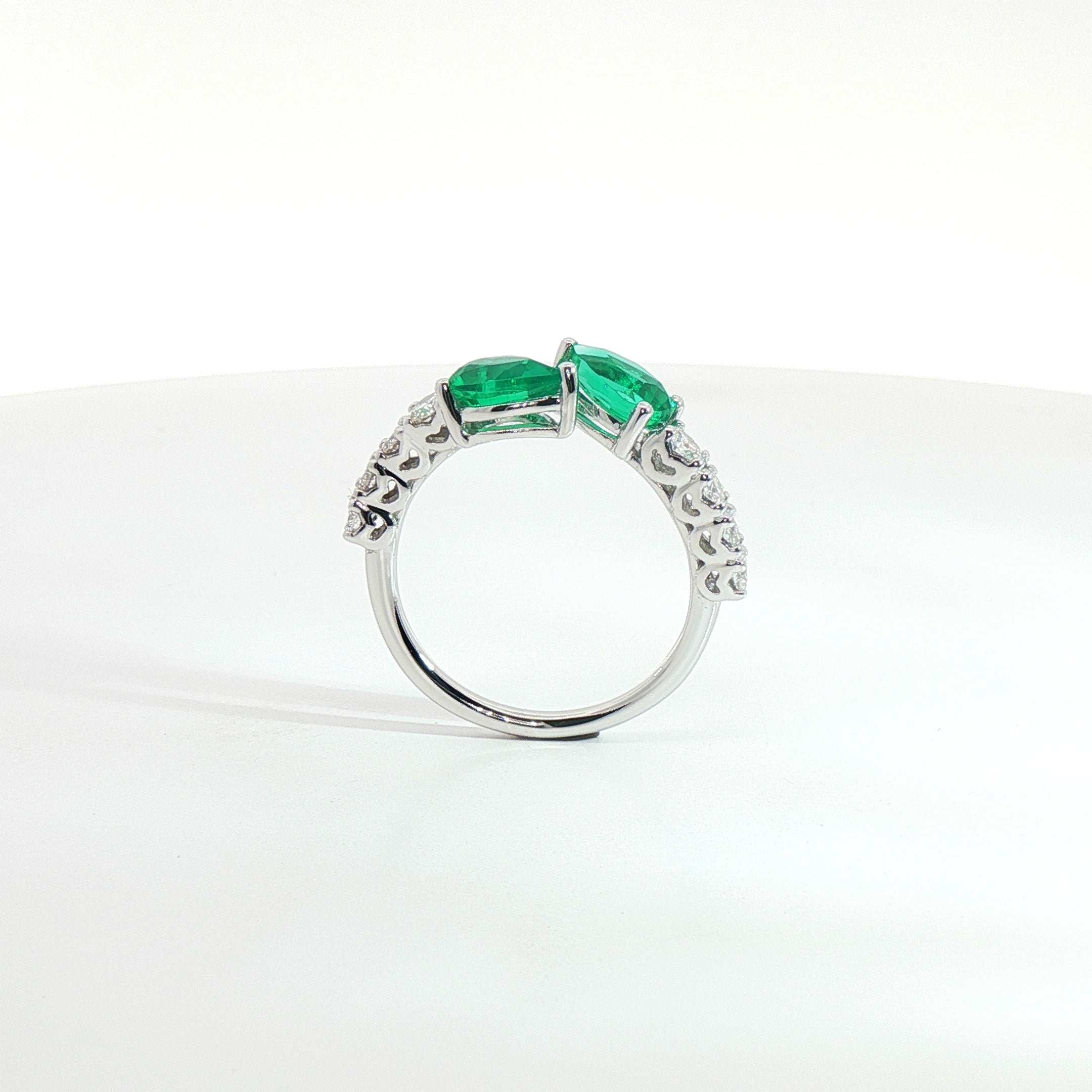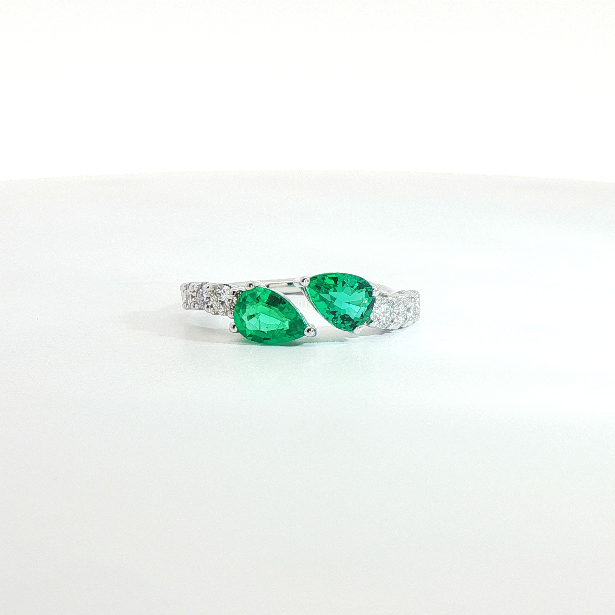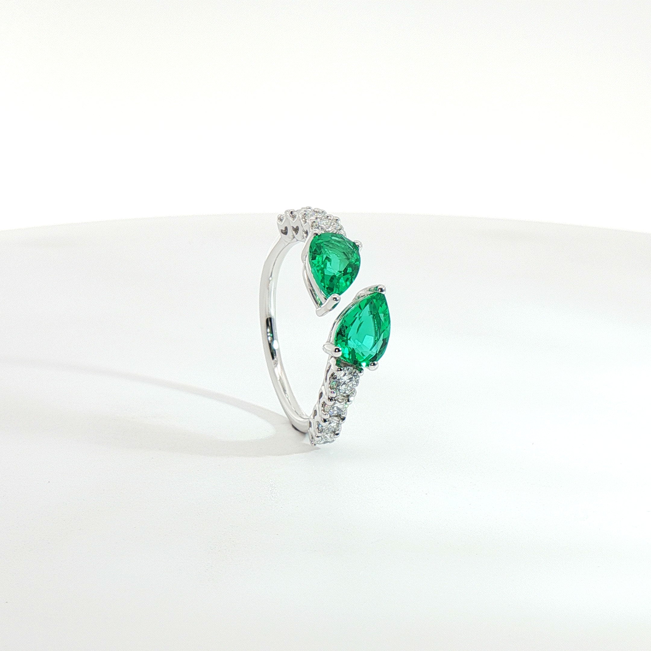 Anello Twin in oro bianco con smeraldi Lab-Grown taglio goccia e diamanti Lab-Grown taglio brillante.