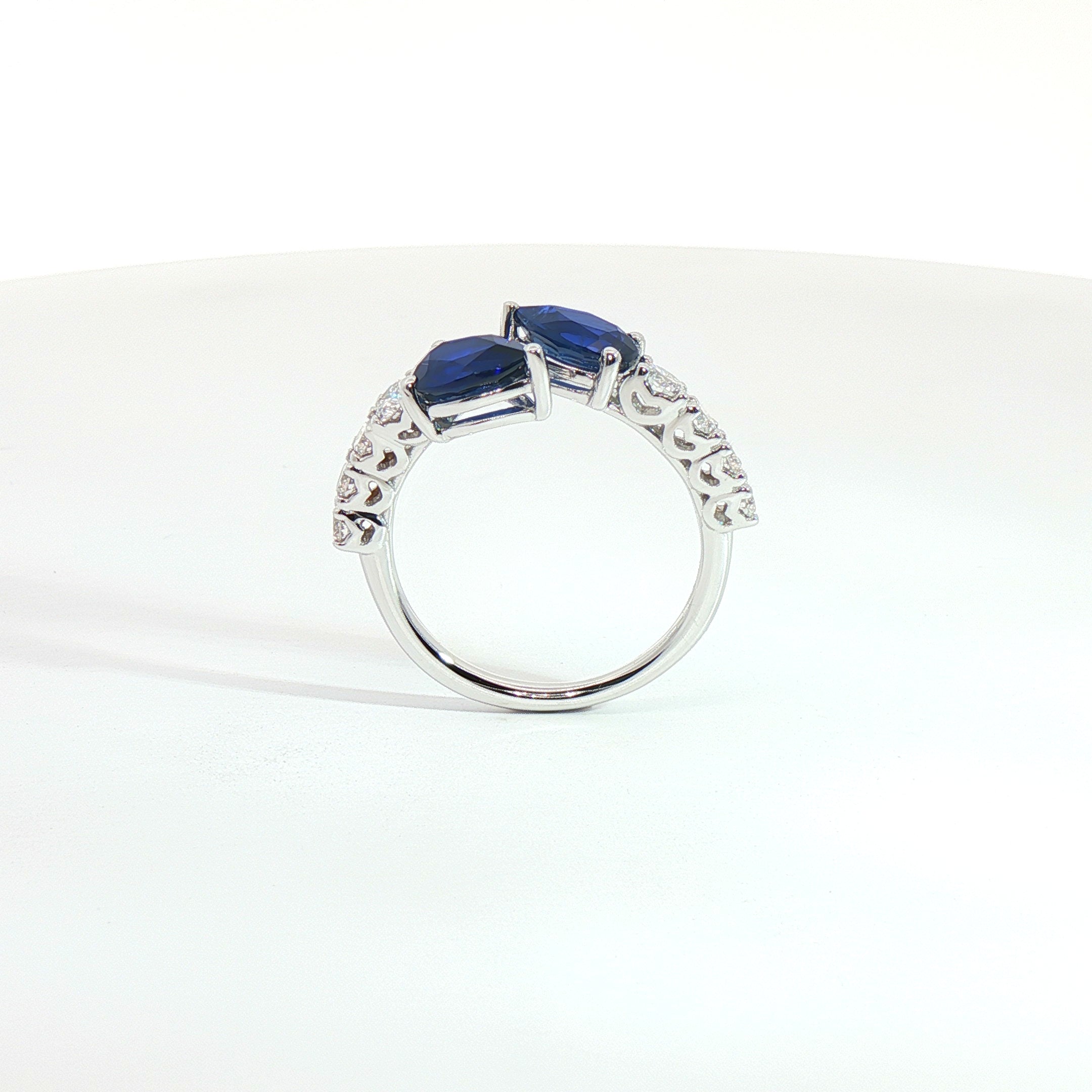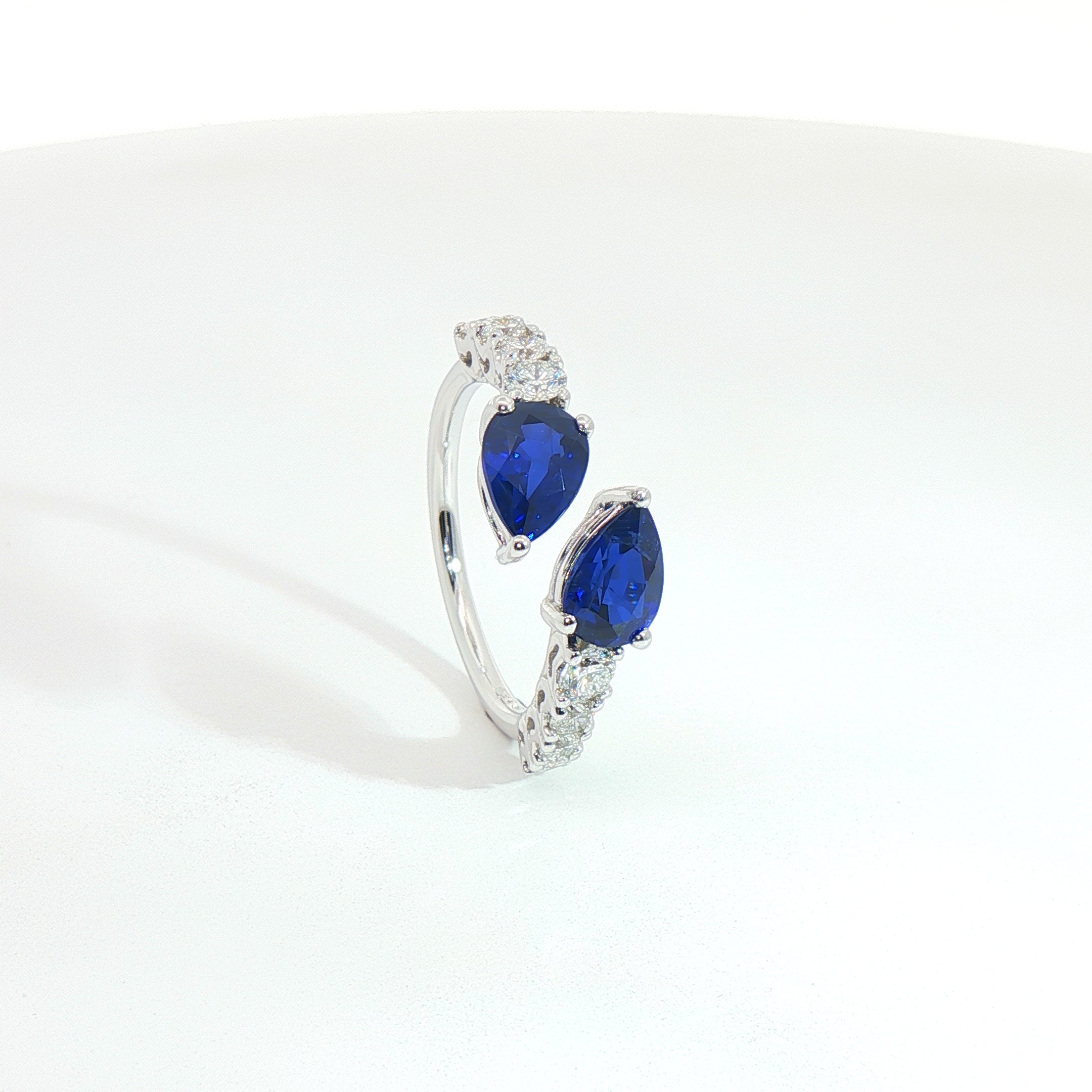 Anello Twin in oro bianco con zaffiri Lab-Grown taglio goccia e diamanti Lab-Grown taglio brillante.