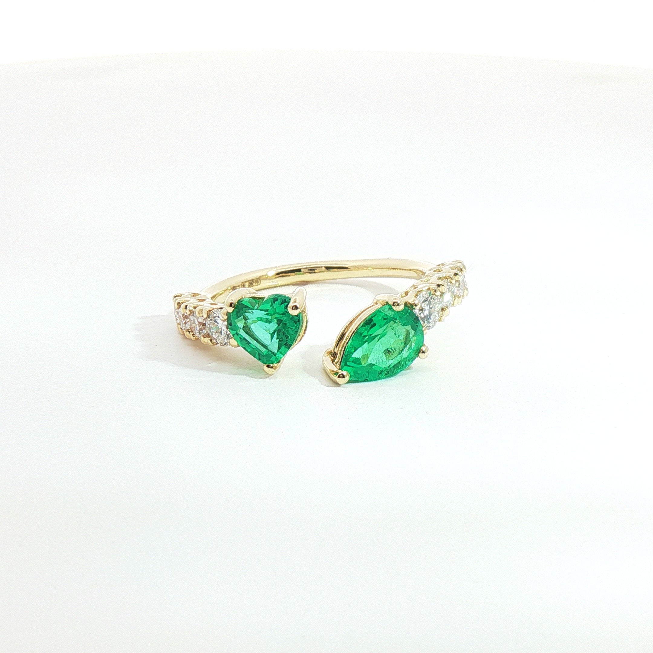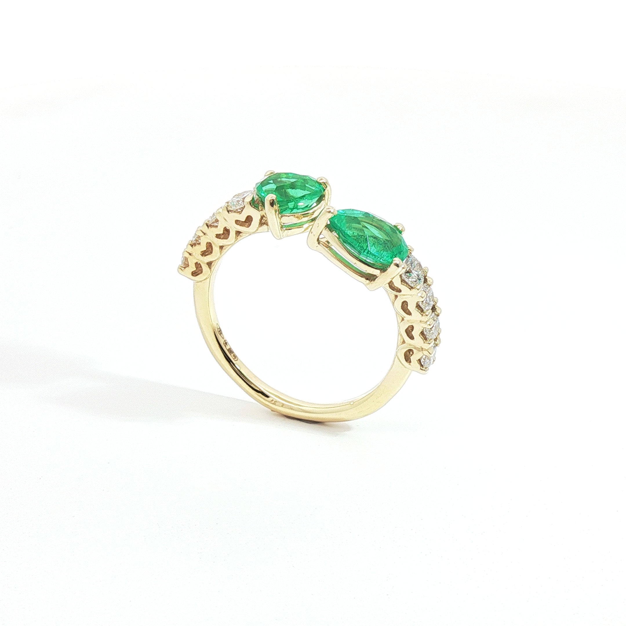 Anello Twin in oro giallo con smeraldi Lab-Grown e diamanti Lab-Grown taglio brillante.