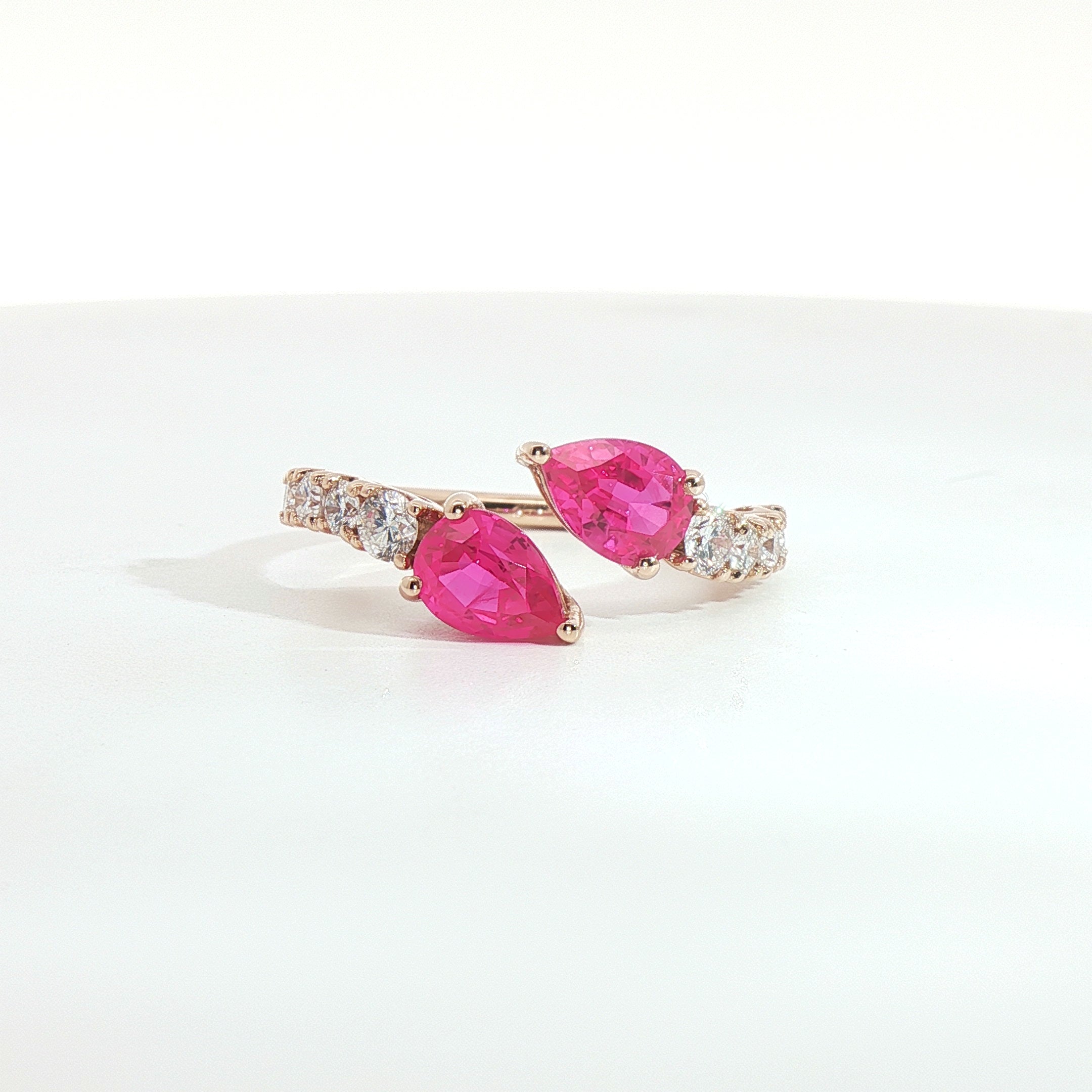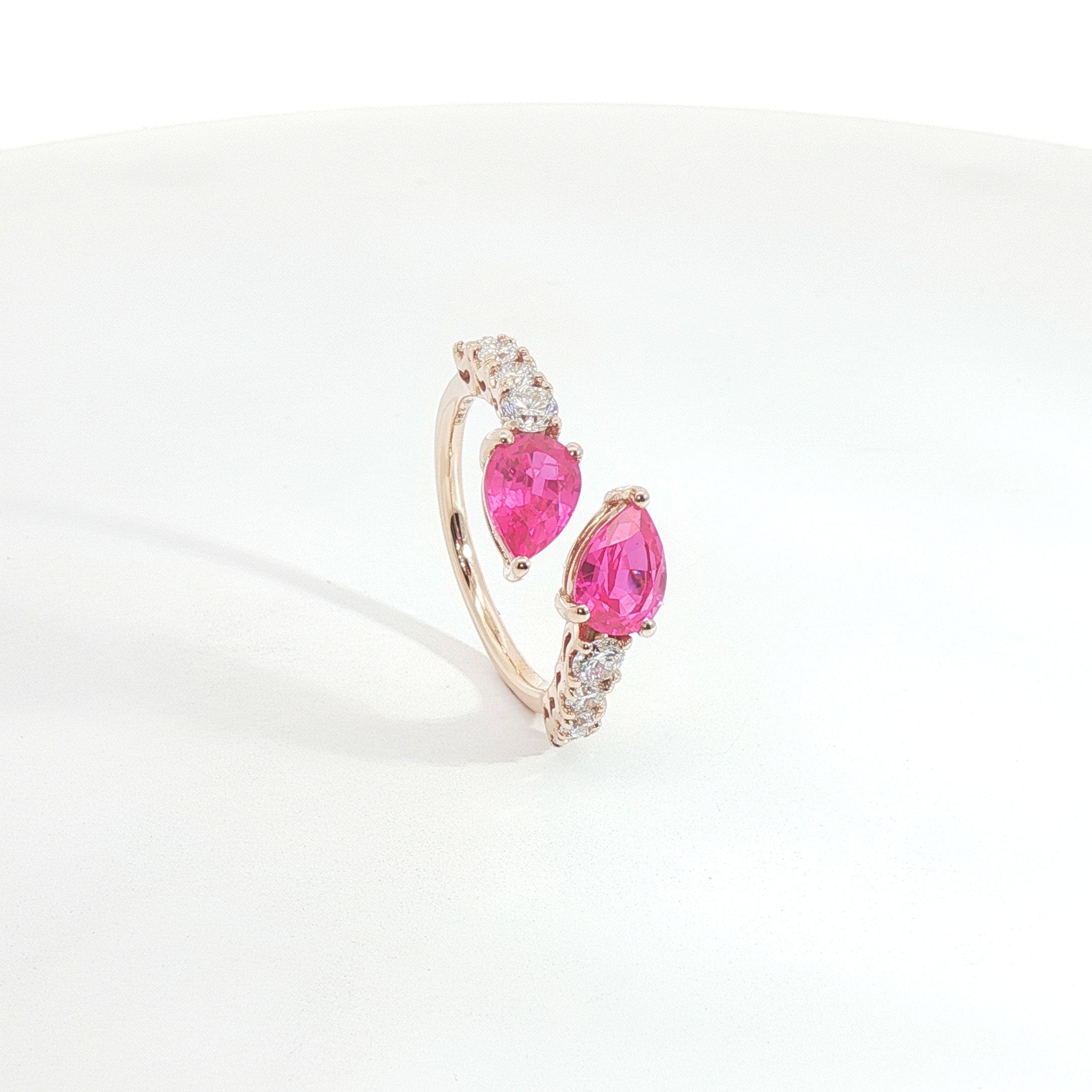 Anello Twin in oro rosa con zaffiri rosa Lab-Grown taglio goccia e diamanti Lab-Grown taglio brillante.