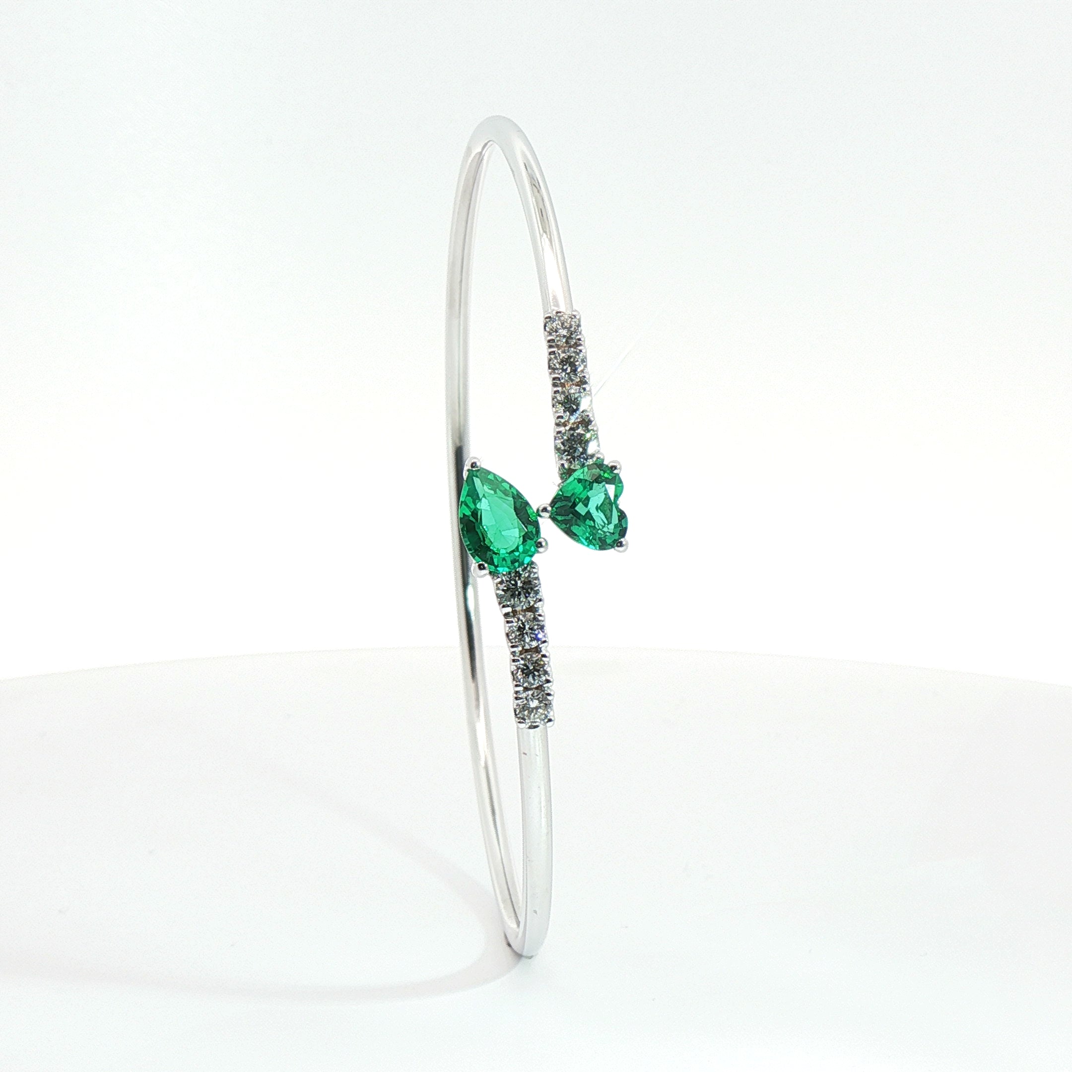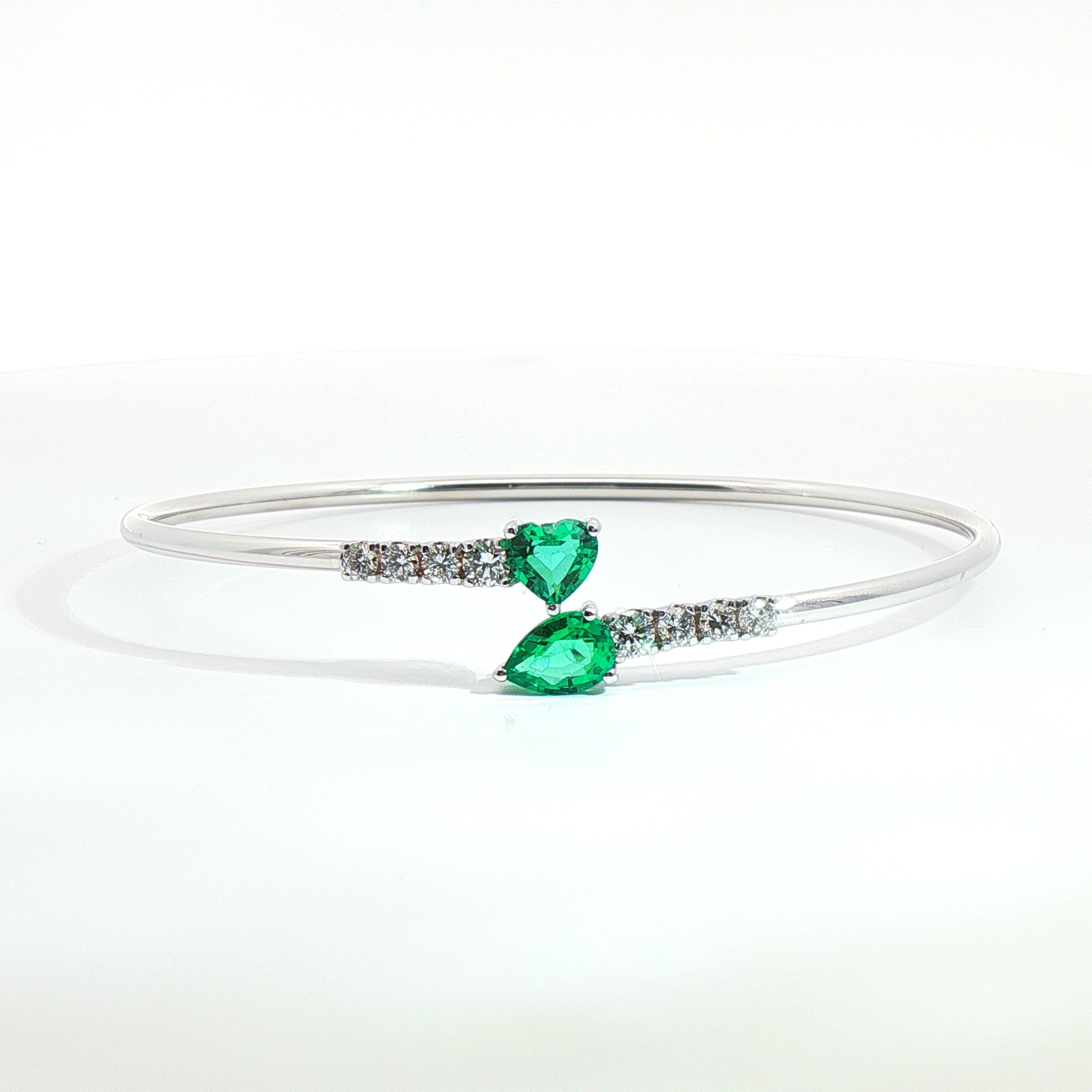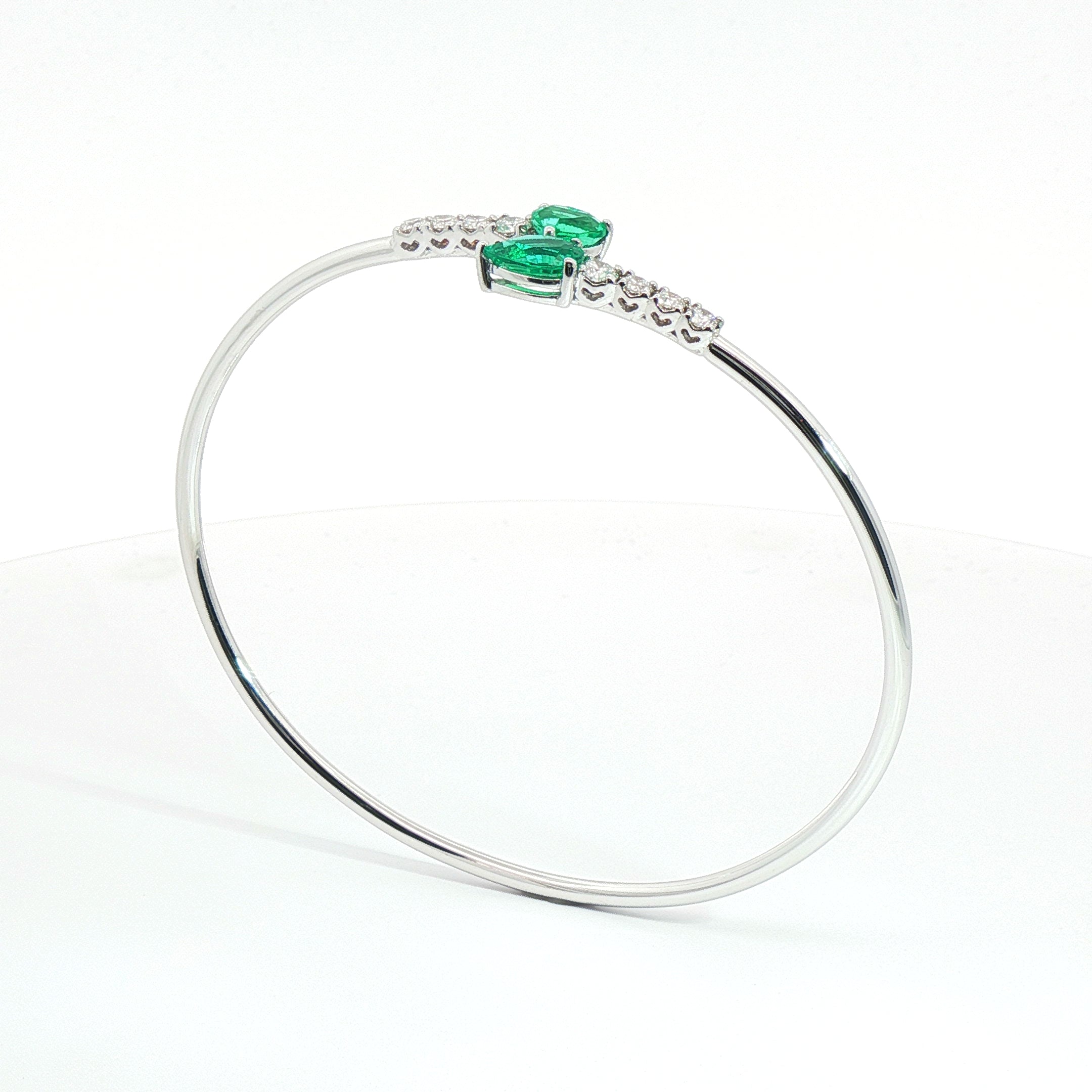 Bracciale Twin in oro bianco con smeraldi Lab-Grown e diamanti Lab-Grown taglio brillante.