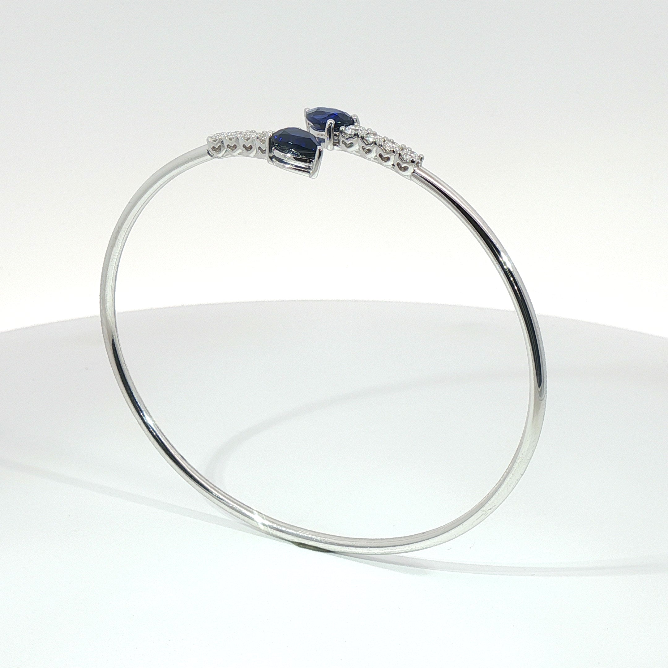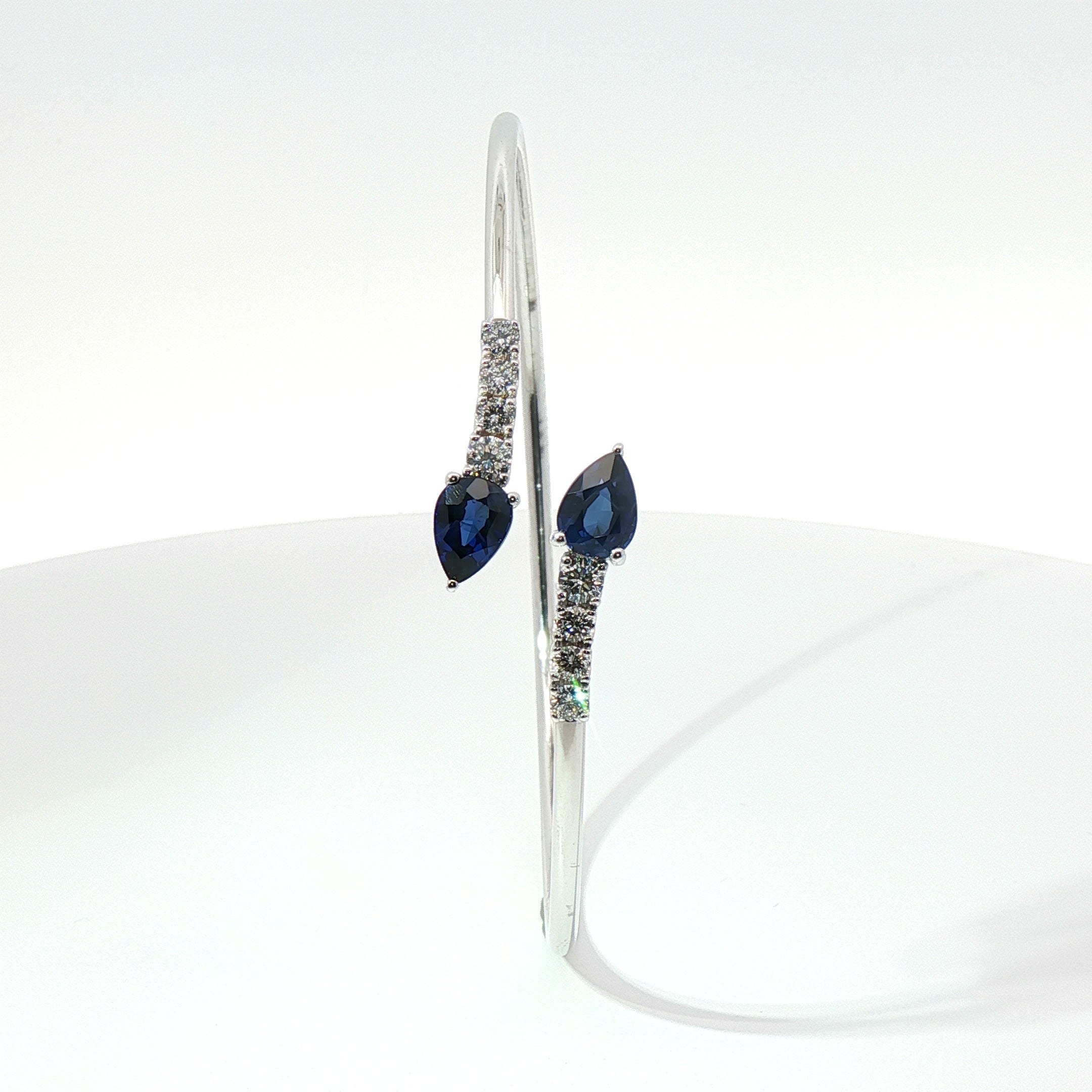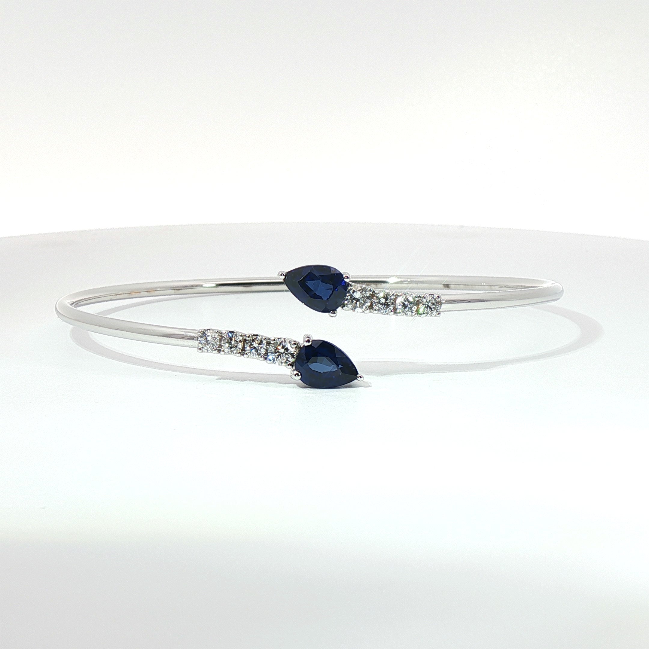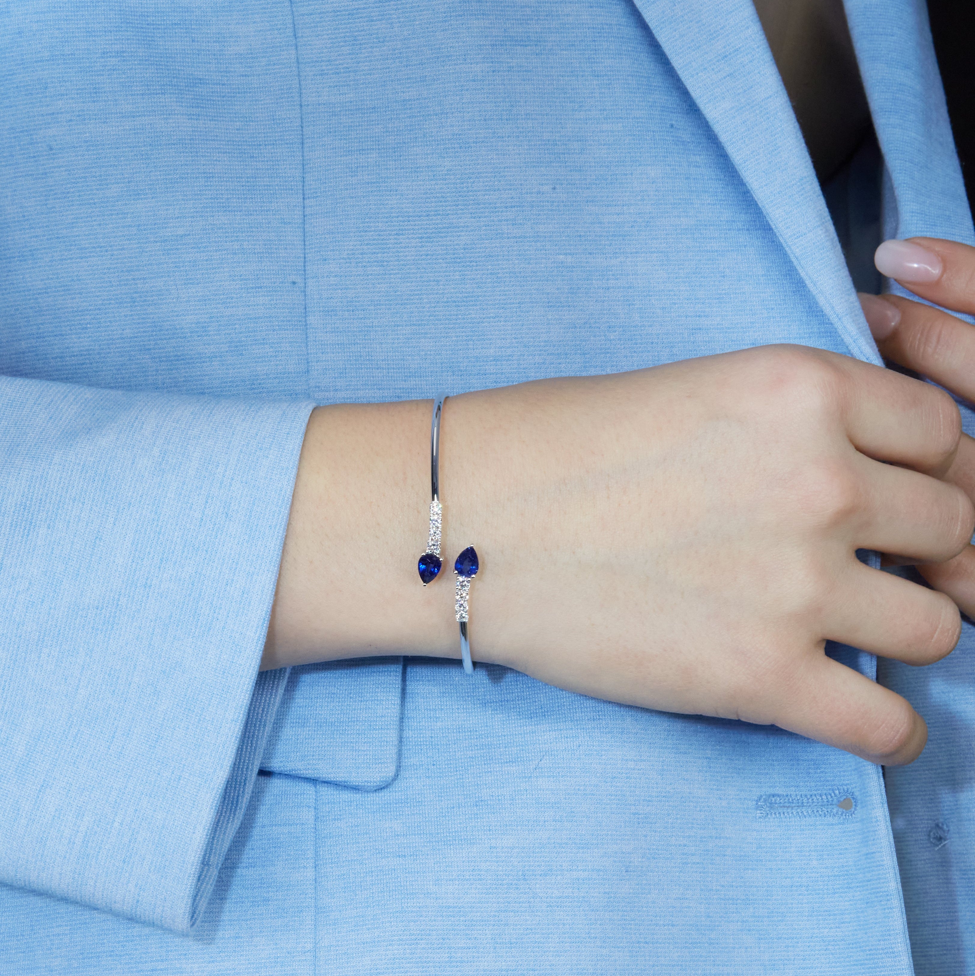 Bracciale Twin in oro bianco con Zaffiri Lab-Grown taglio goccia e diamanti Lab-Grown taglio brillante.
