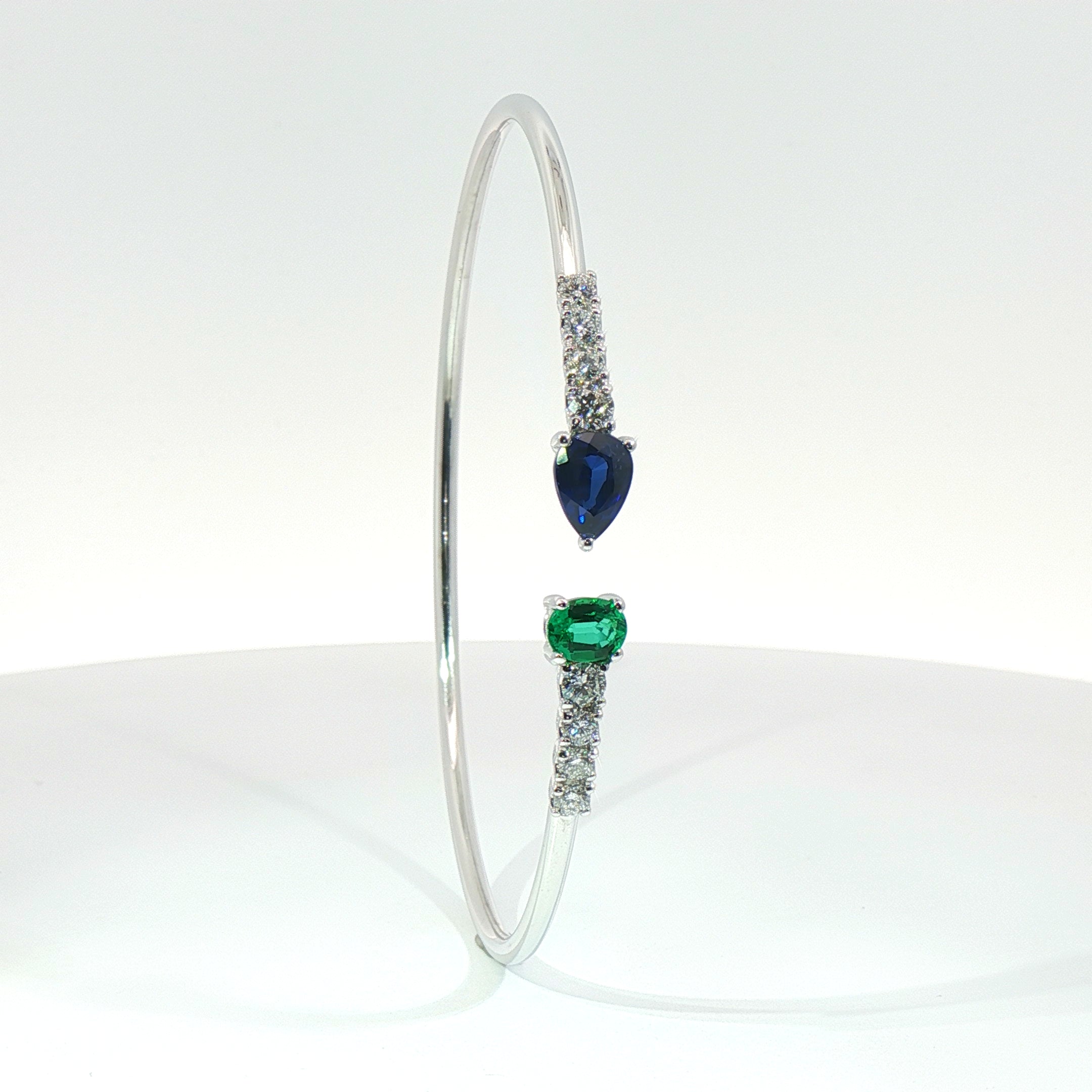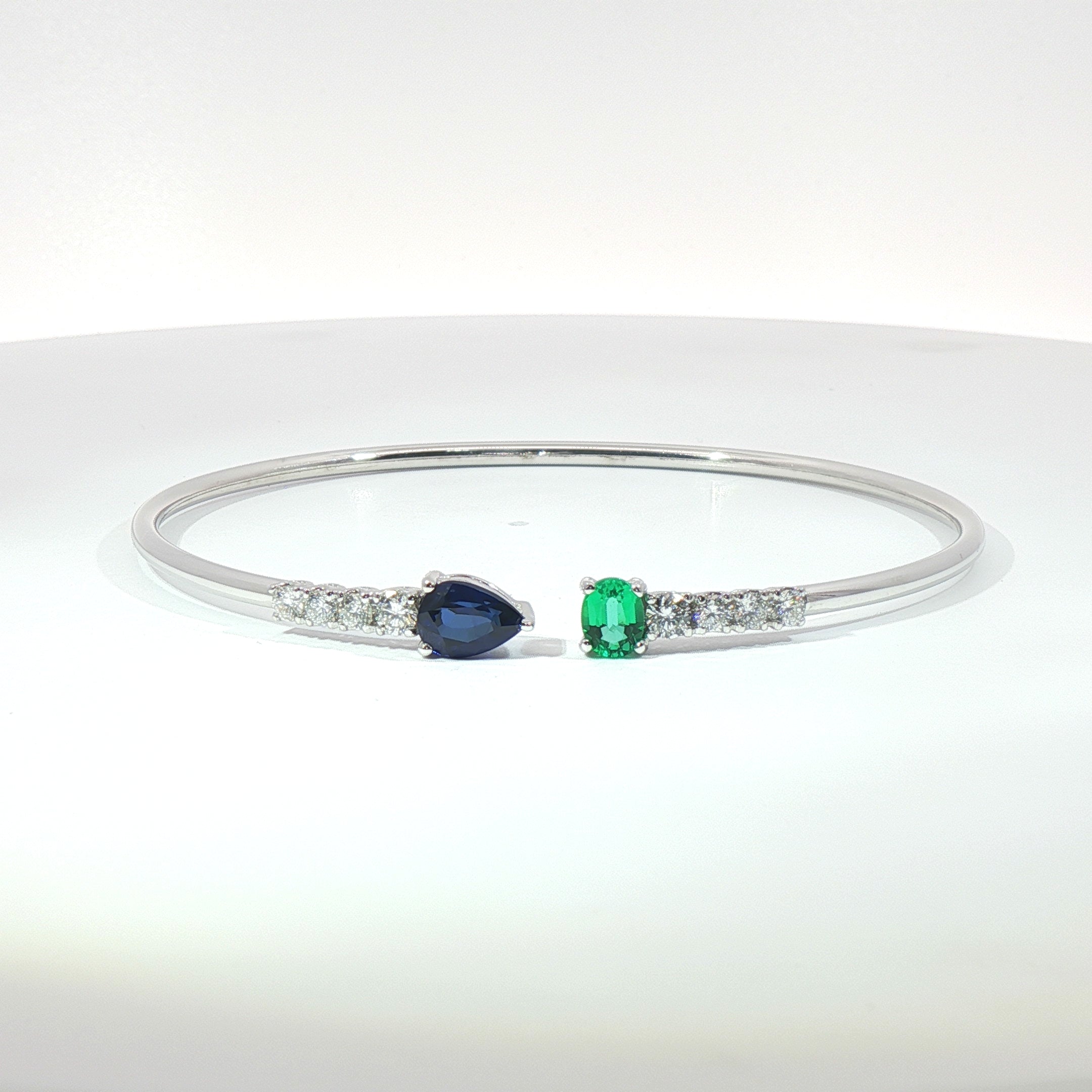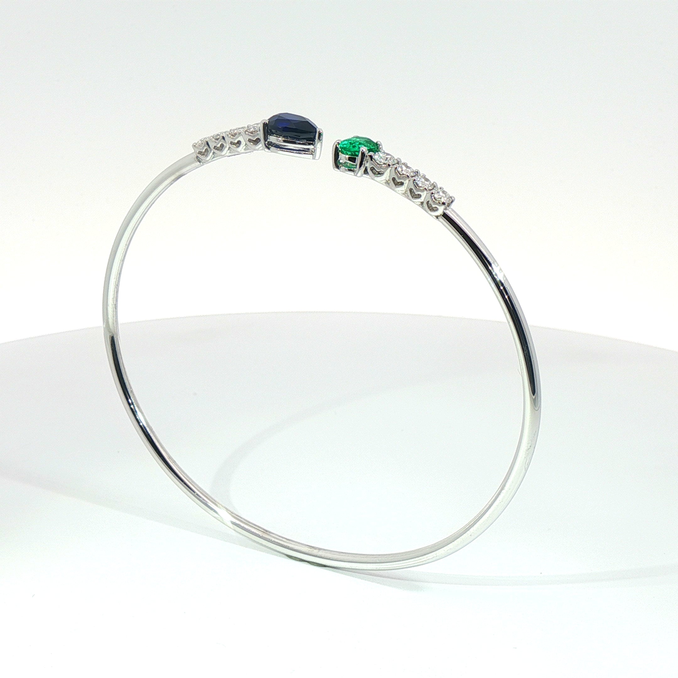 Bracciale Twin in oro bianco con zaffiro, smeraldo e diamanti Lab-Grown taglio brillante.