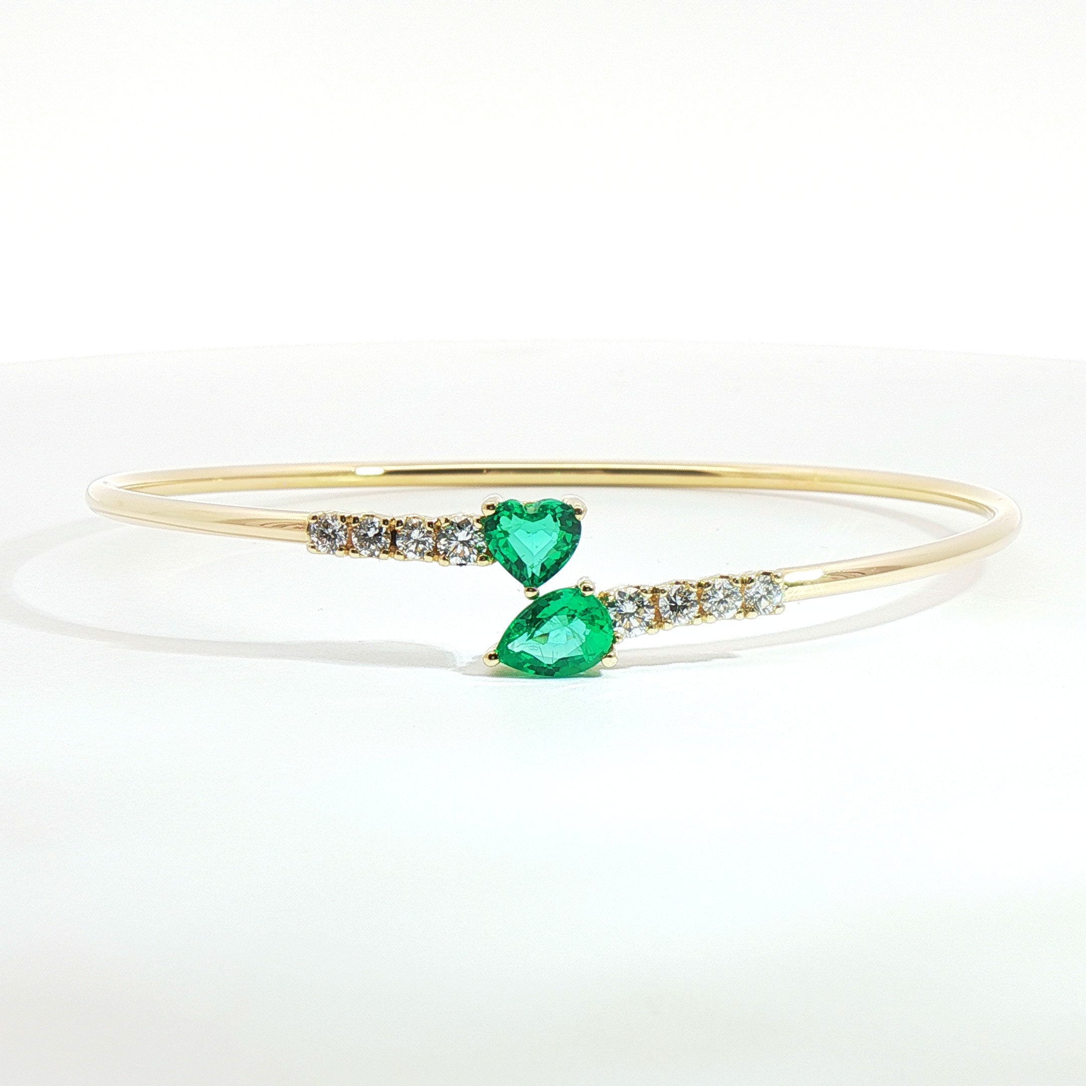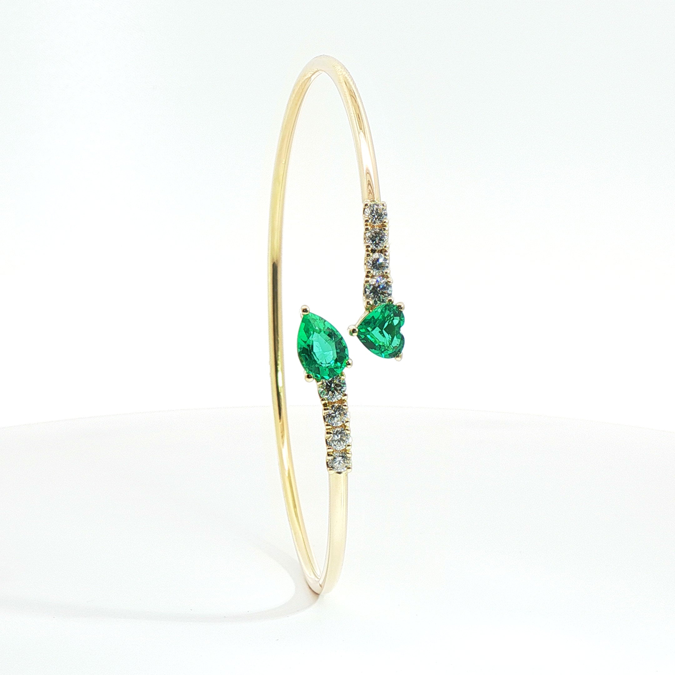Bracciale Twin in oro giallo con smeraldi Lab-Grown e diamanti Lab-Grown taglio brillante.