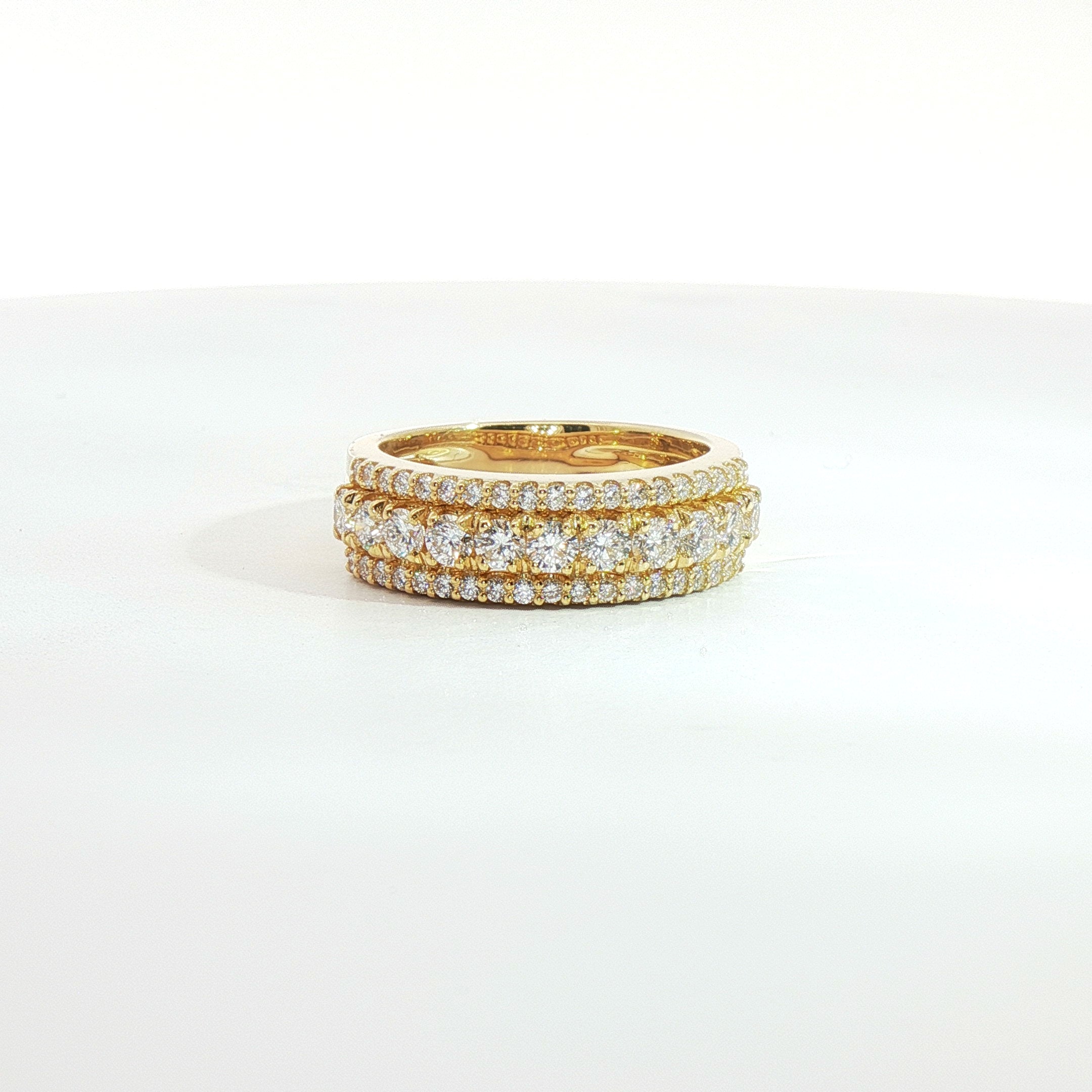 Fascia in oro giallo 18kt impreziosita da 49 diamanti Lab-Grown taglio brillante, disposti su tre file unite che creano una superficie luminosa e continua.