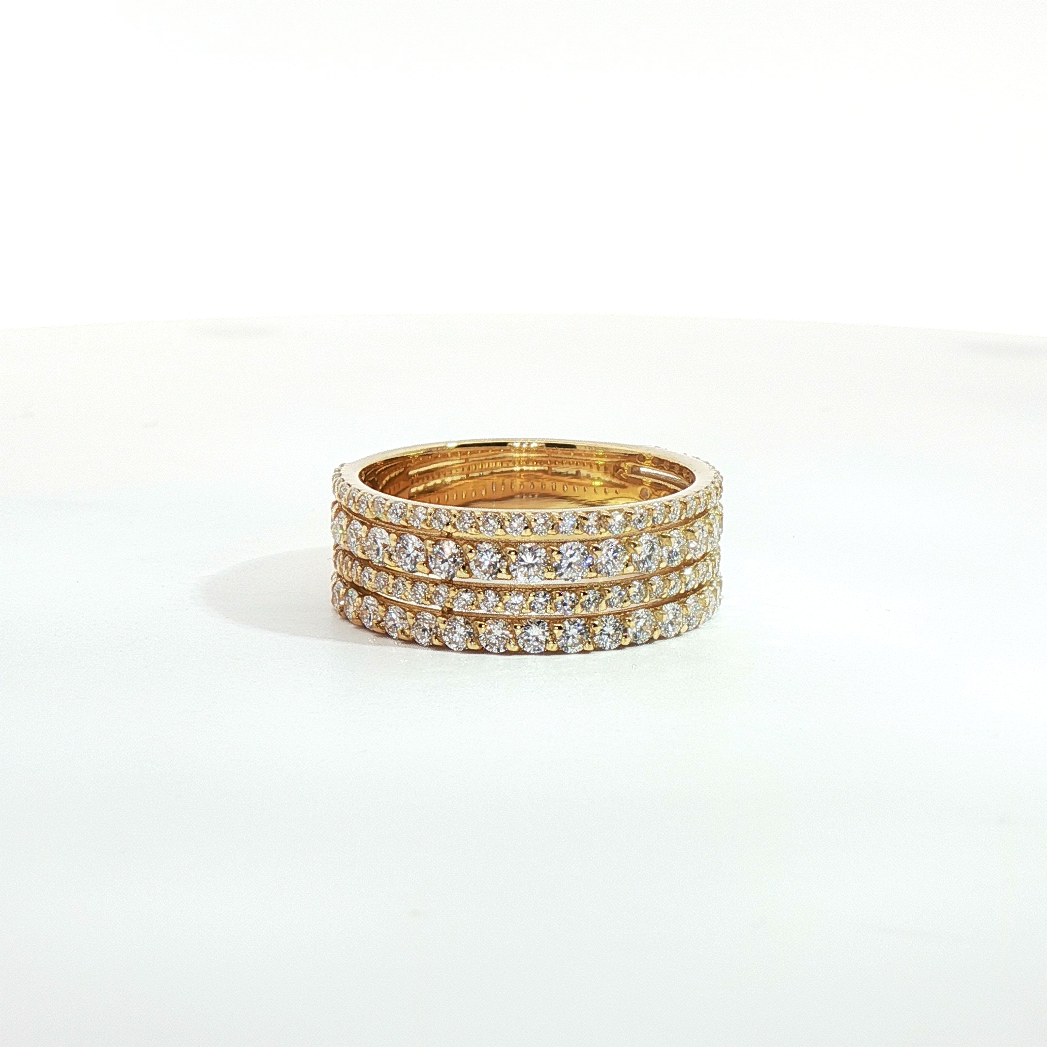 Questa fascia in oro giallo 18kt si distingue per il suo disegno strutturato e contemporaneo, formato da quattro file distinte impreziosite da 108 diamanti Lab-Grown taglio brillante accuratamente selezionati.