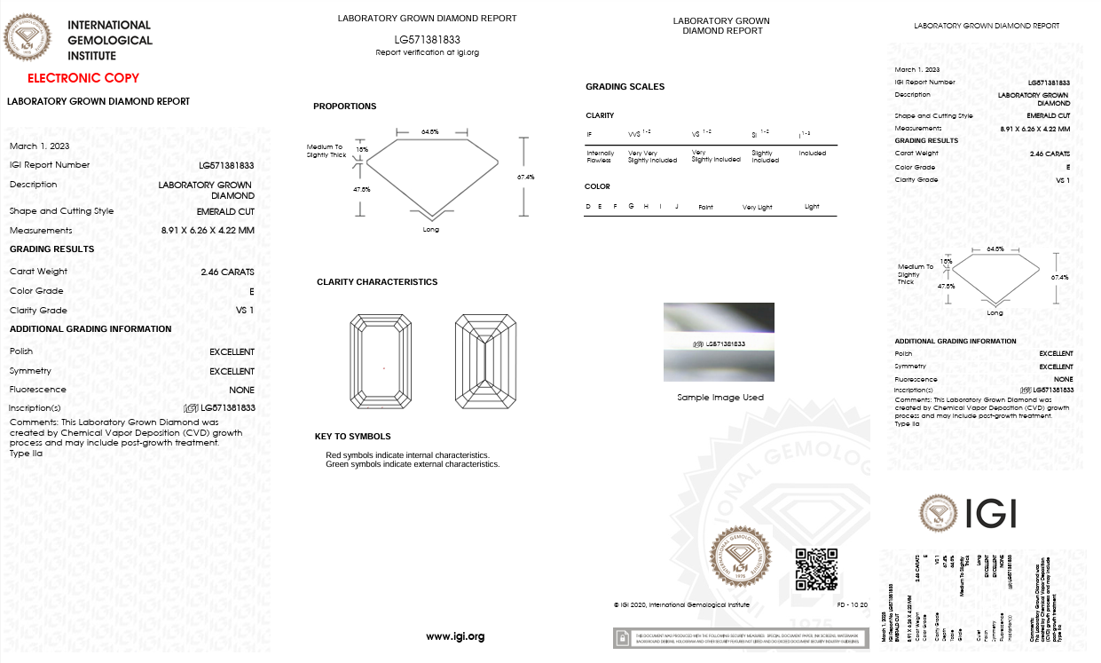 2,46 CERTIFICATO IGI: LG571381833 COLORE E PUREZZA VS1