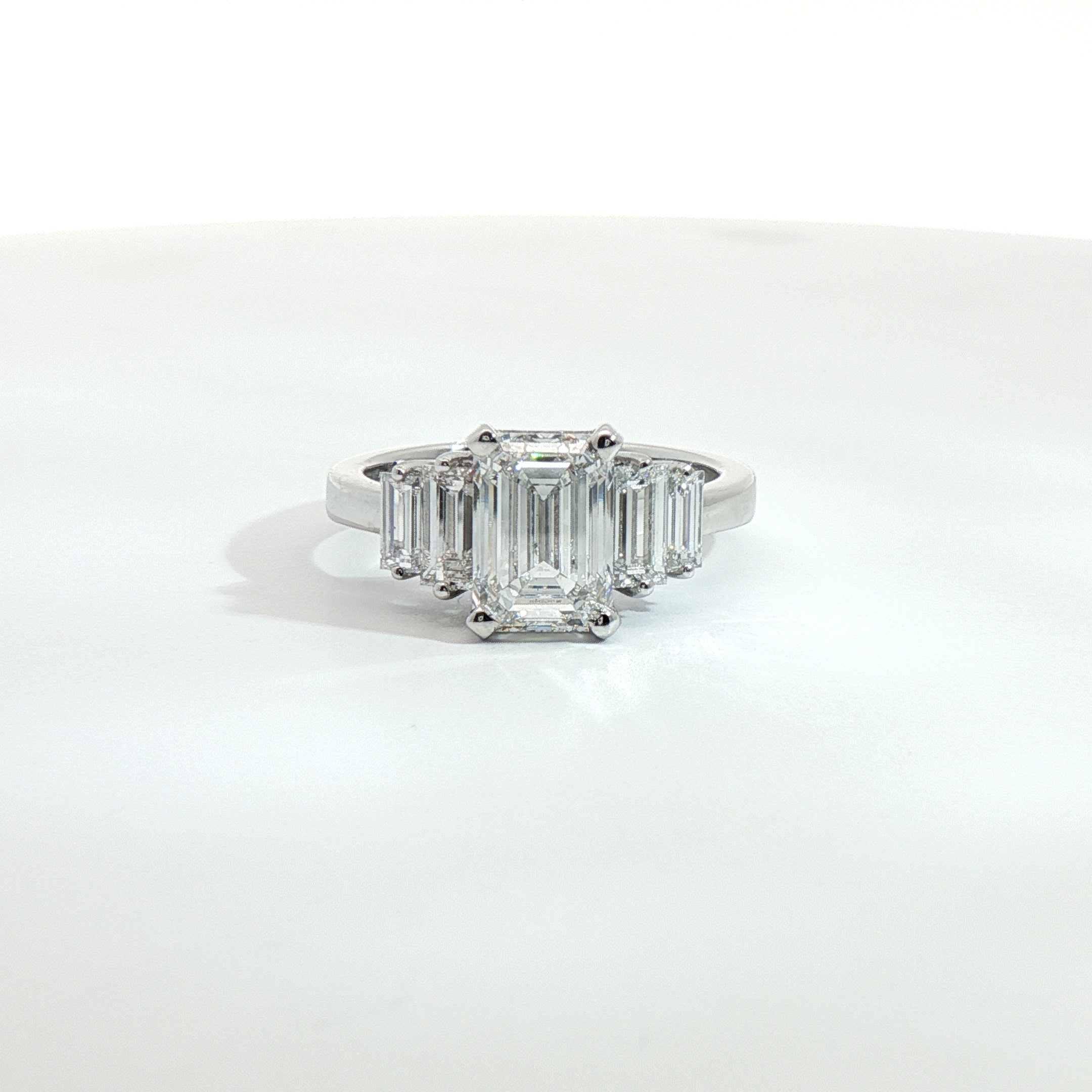 Fedina in oro bianco con Diamanti Lab-Grown taglio smeraldo, 3,38 carati.