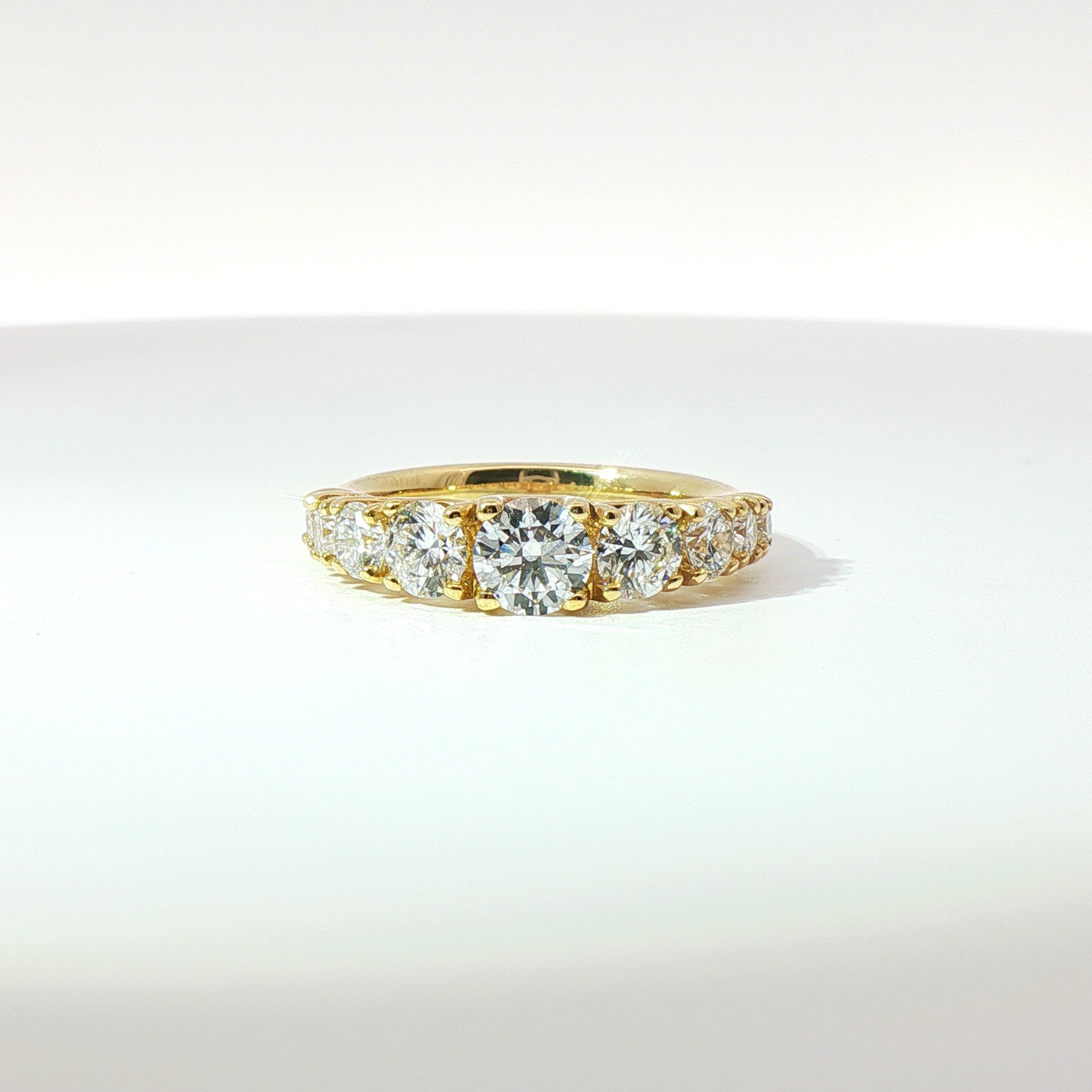 Fedina in oro giallo 18kt con nove diamanti Lab-Grown taglio brillante per un totale di 1,73 carati complessivi, colore E/F e purezza VS.