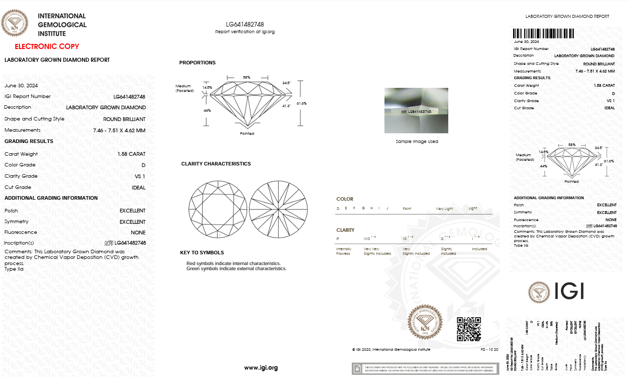 Tutti i diamanti di C-01 jewels sopra 1,00 ct (per quanto riguarda i tagli di forma) sono dotati di di certificatione IGI internazionale.