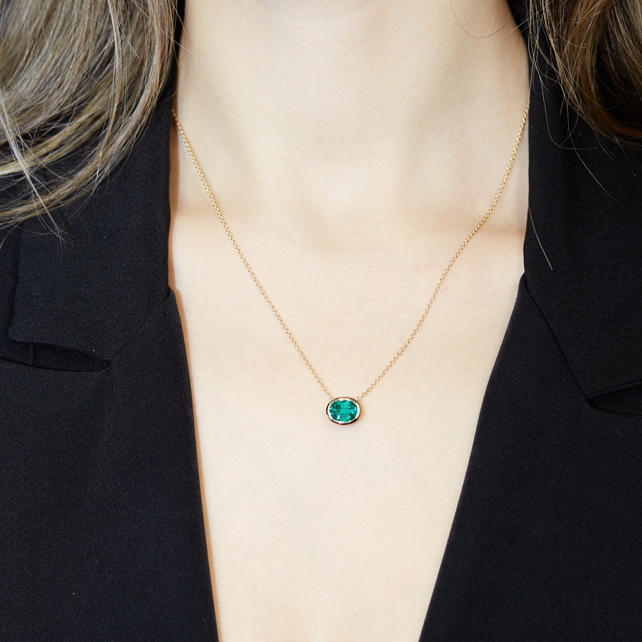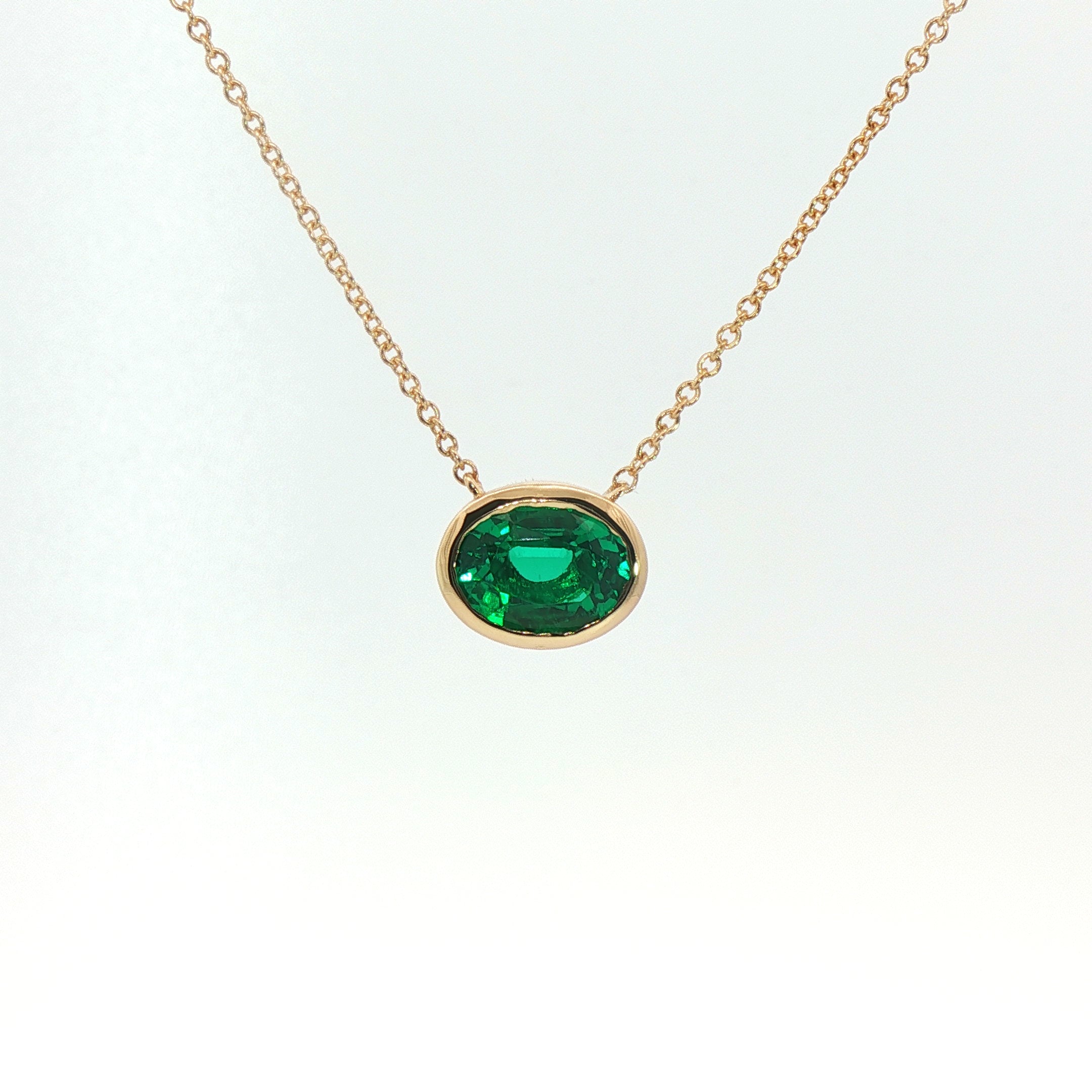Girocollo Aurea in oro giallo con smeraldo lab-Grown taglio ovale, 1,88 carati.