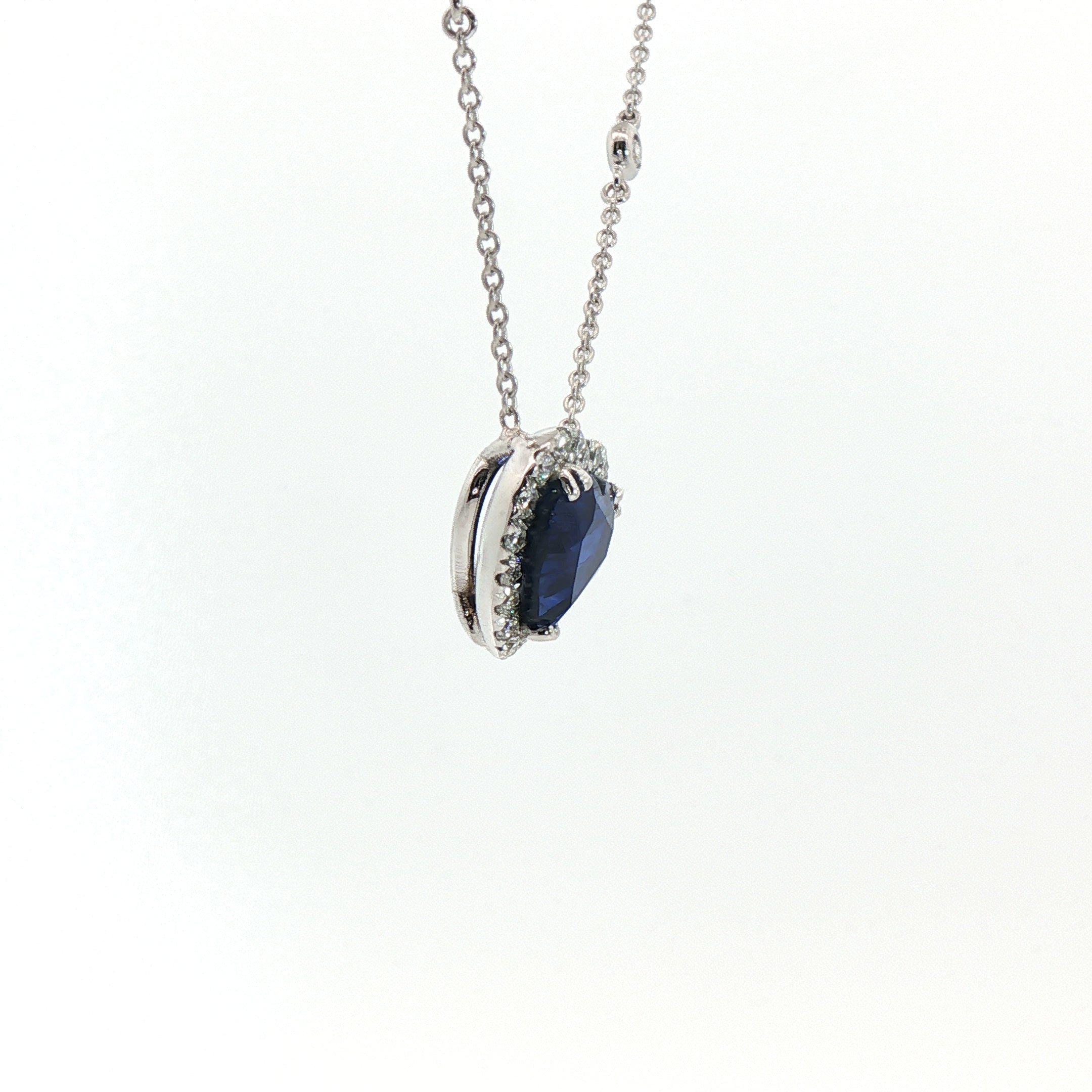 Girocollo in oro bianco con zaffiro Lab-Grown taglio cuore e diamanti Lab-Grown taglio brillante.