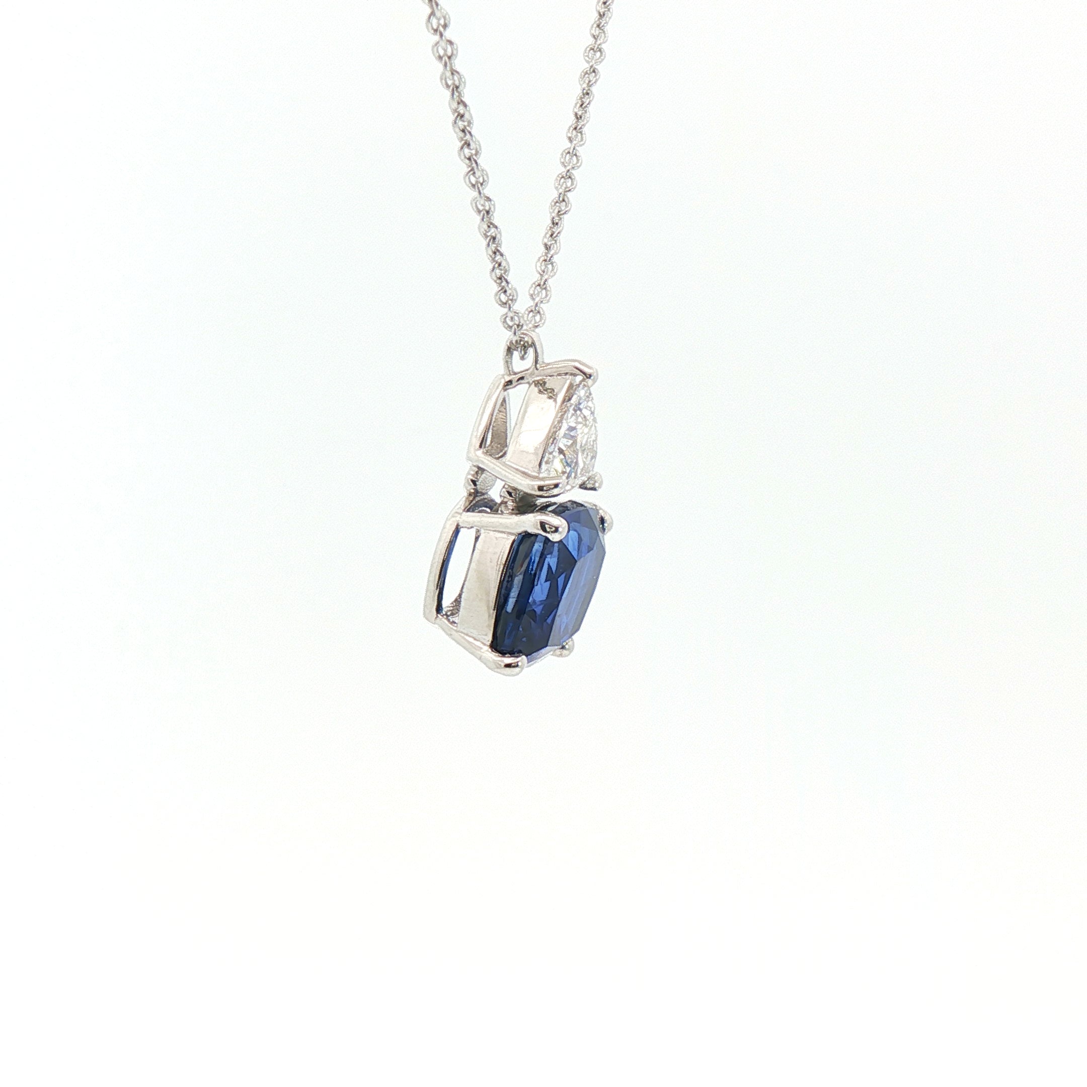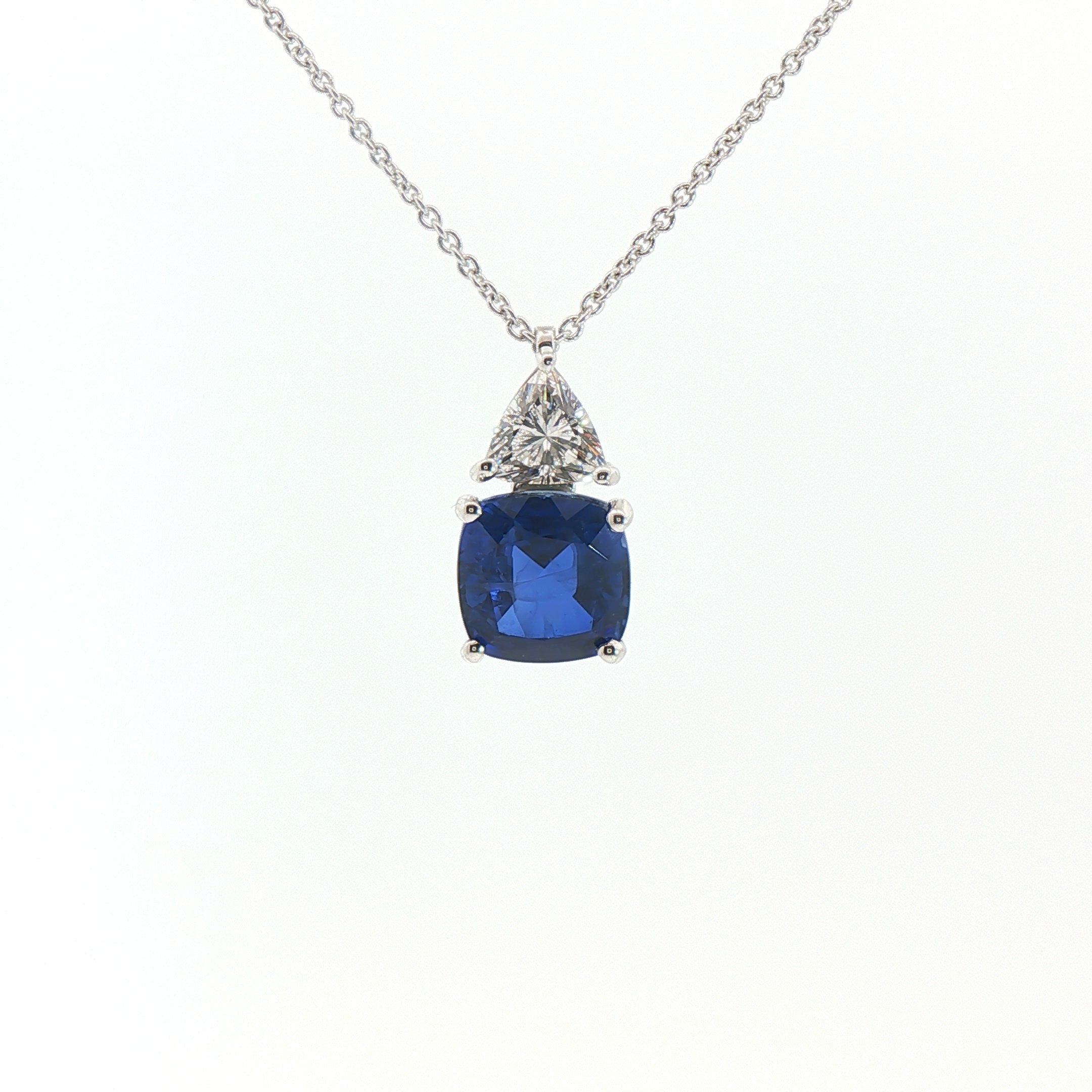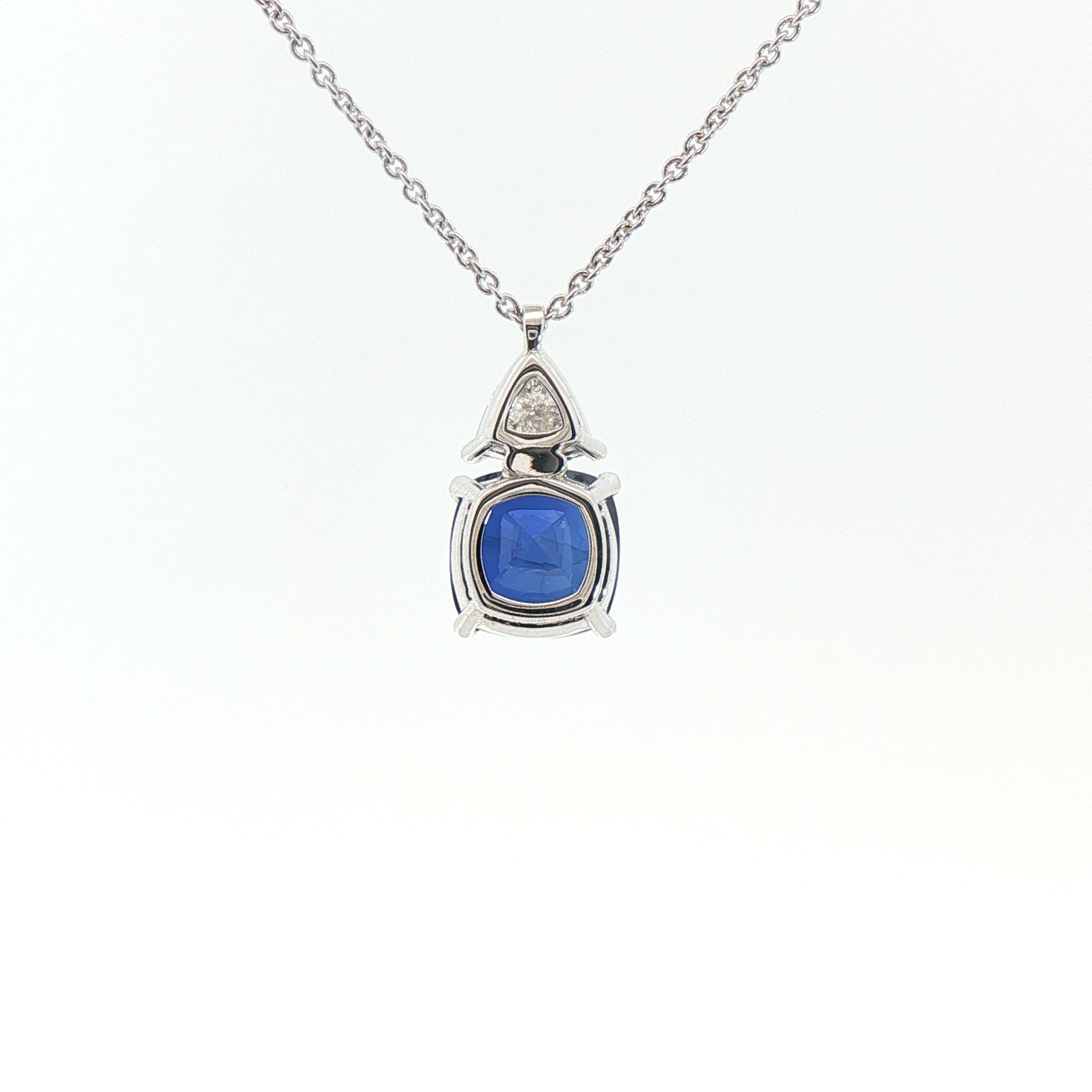 Girocollo in oro bianco con zaffiro Lab-Grown taglio cuscino e diamante Lab-Grown taglio trillion.