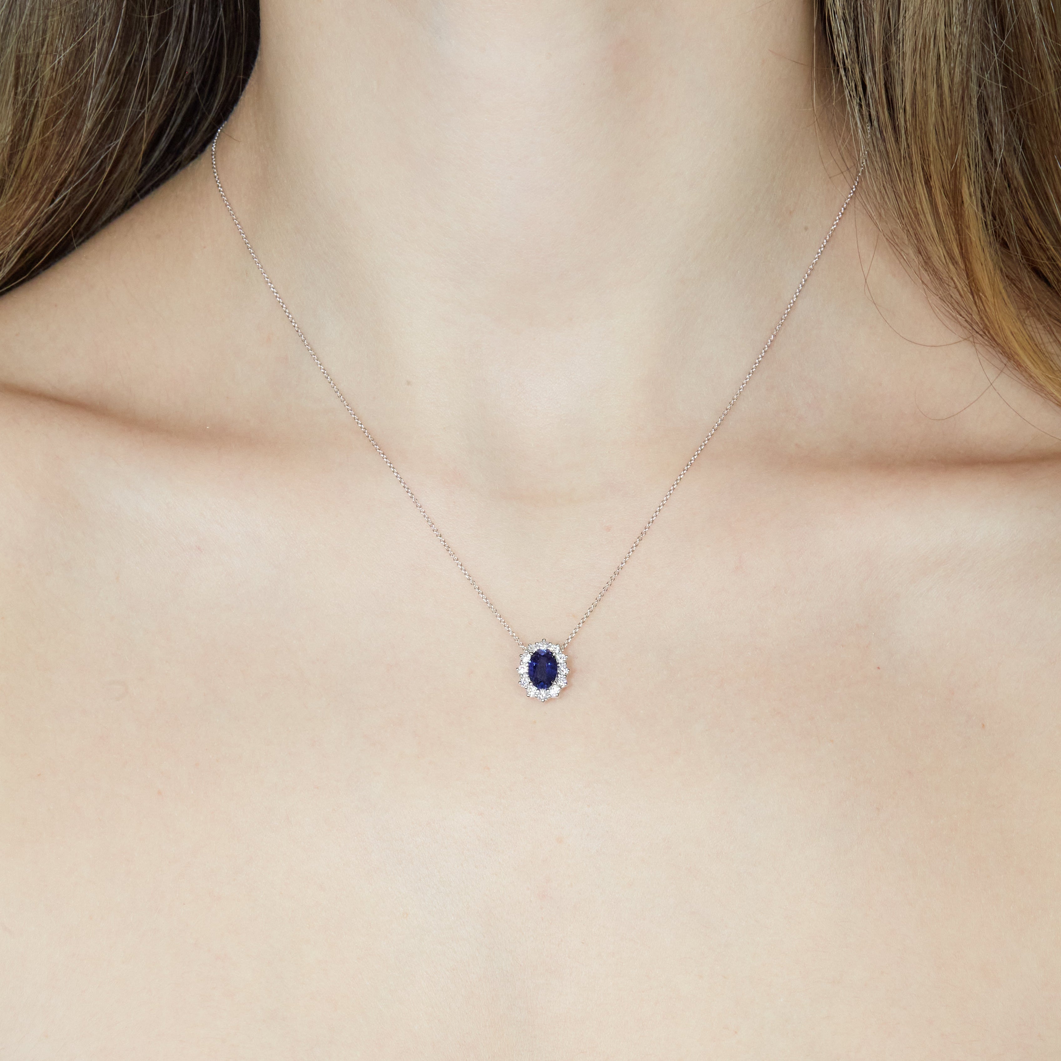 Girocollo in oro bianco con zaffiro Lab-Grown taglio ovale e diamanti Lab-Grown taglio brillante.