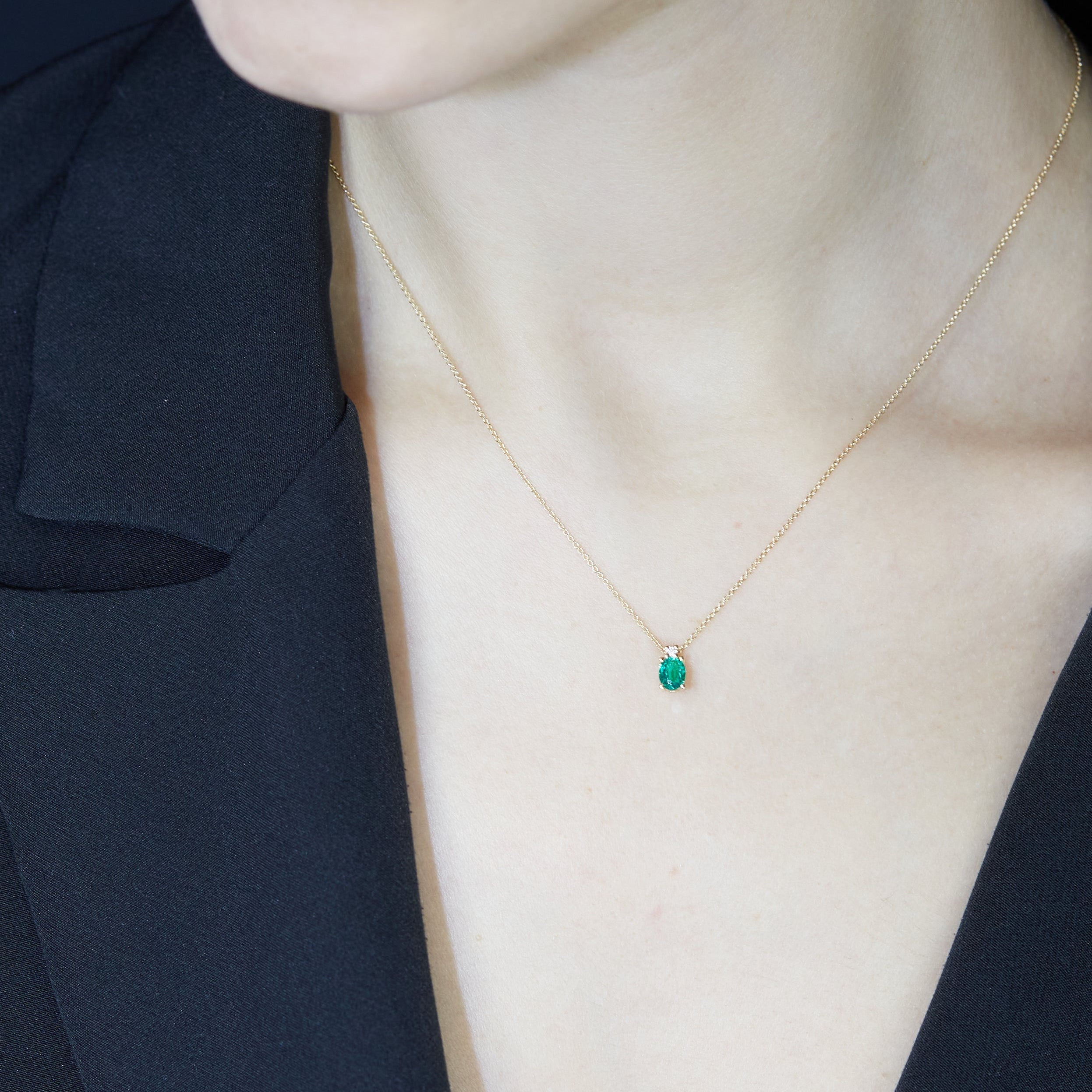 Girocollo in oro giallo con smeraldo Lab-Grown taglio ovale e diamante Lab-Grown taglio brtillante.