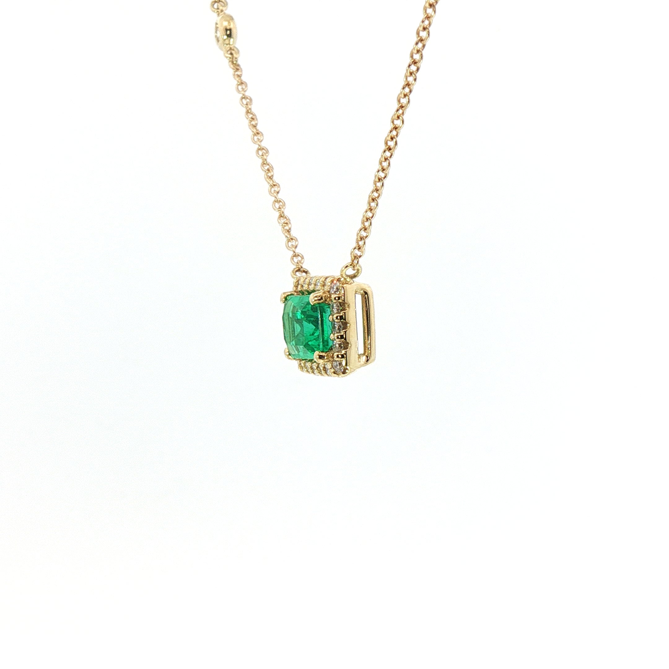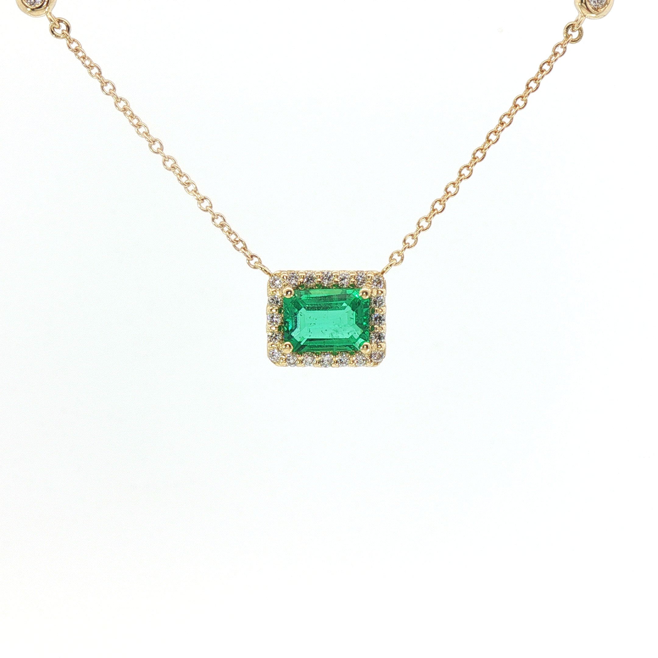 Questo girocollo in oro giallo 18 kt è impreziosito da uno smeraldo Lab-Grown taglio smeraldo da 1,06 carati, incorniciato da una corona di diamanti Lab-Grown taglio brillante per un totale di 0,24 carati.