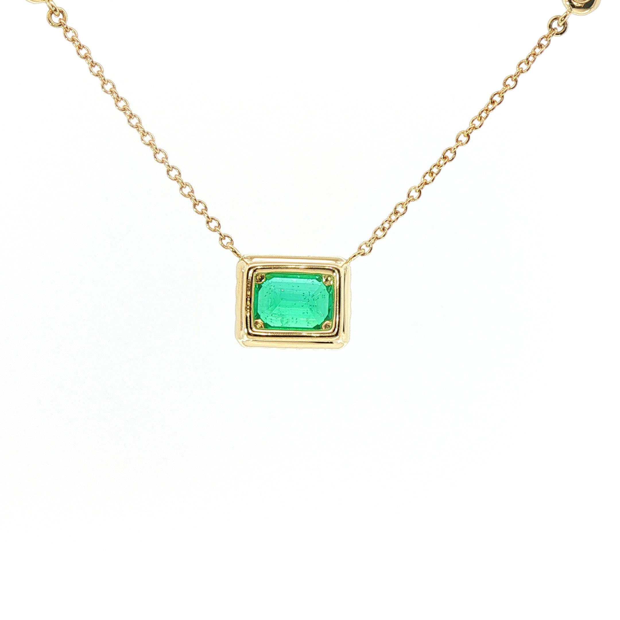 Girocollo in oro giallo con smeraldo Lab-Grown taglio smeraldo e diamanti Lab-Grown taglio brillante.