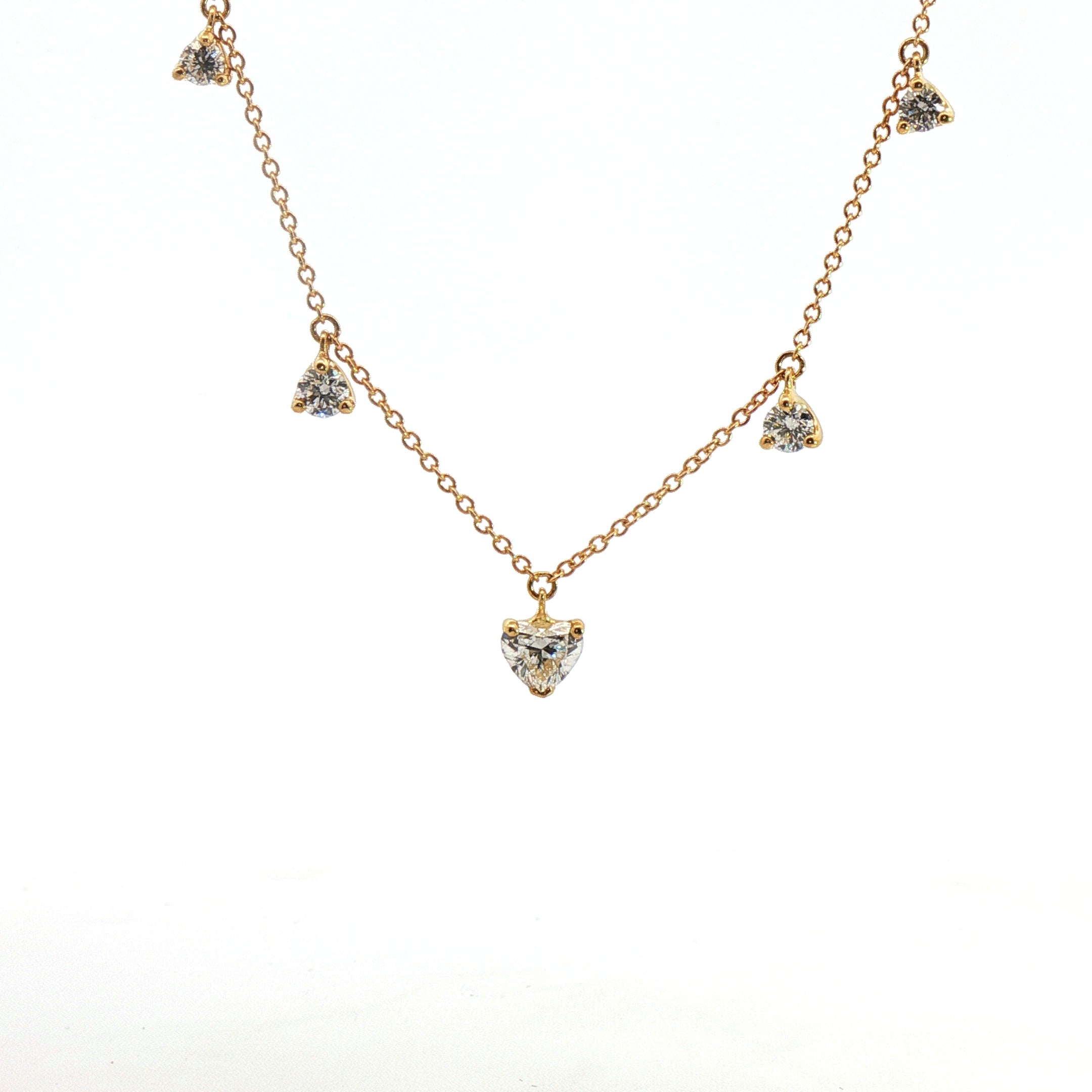 Girocollo in oro giallo e diamanti Lab-Grown taglio cuore e brillante,1,24 carati.
