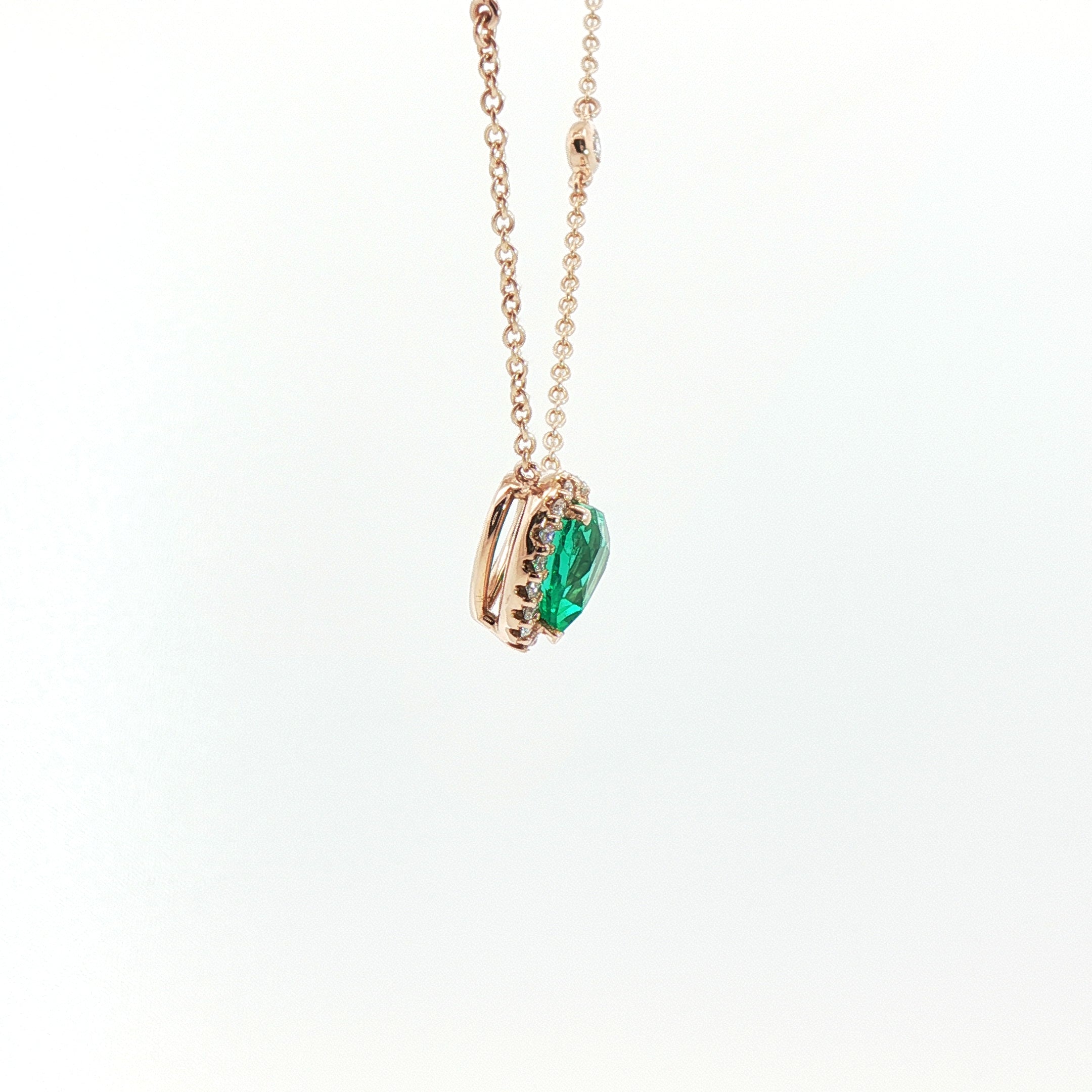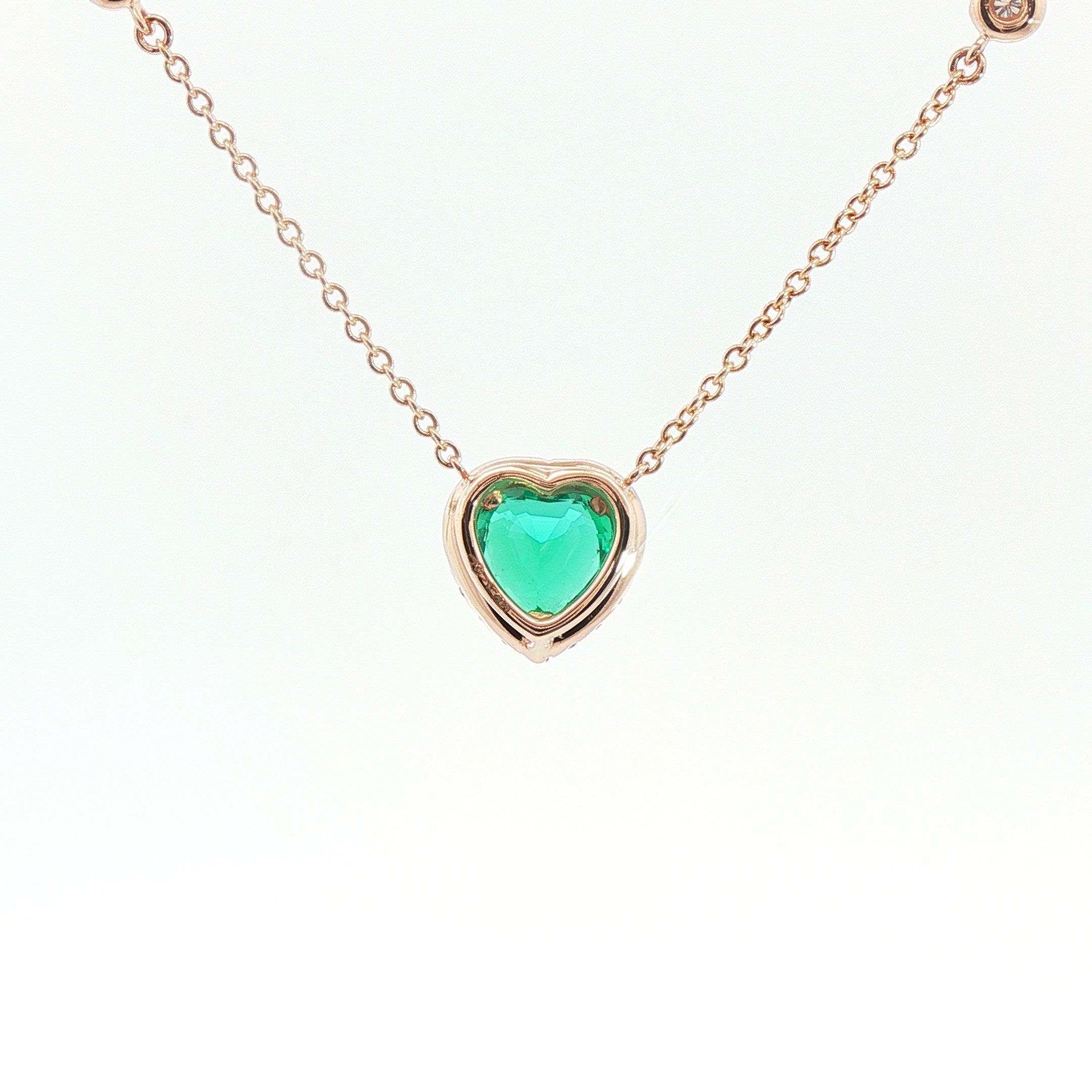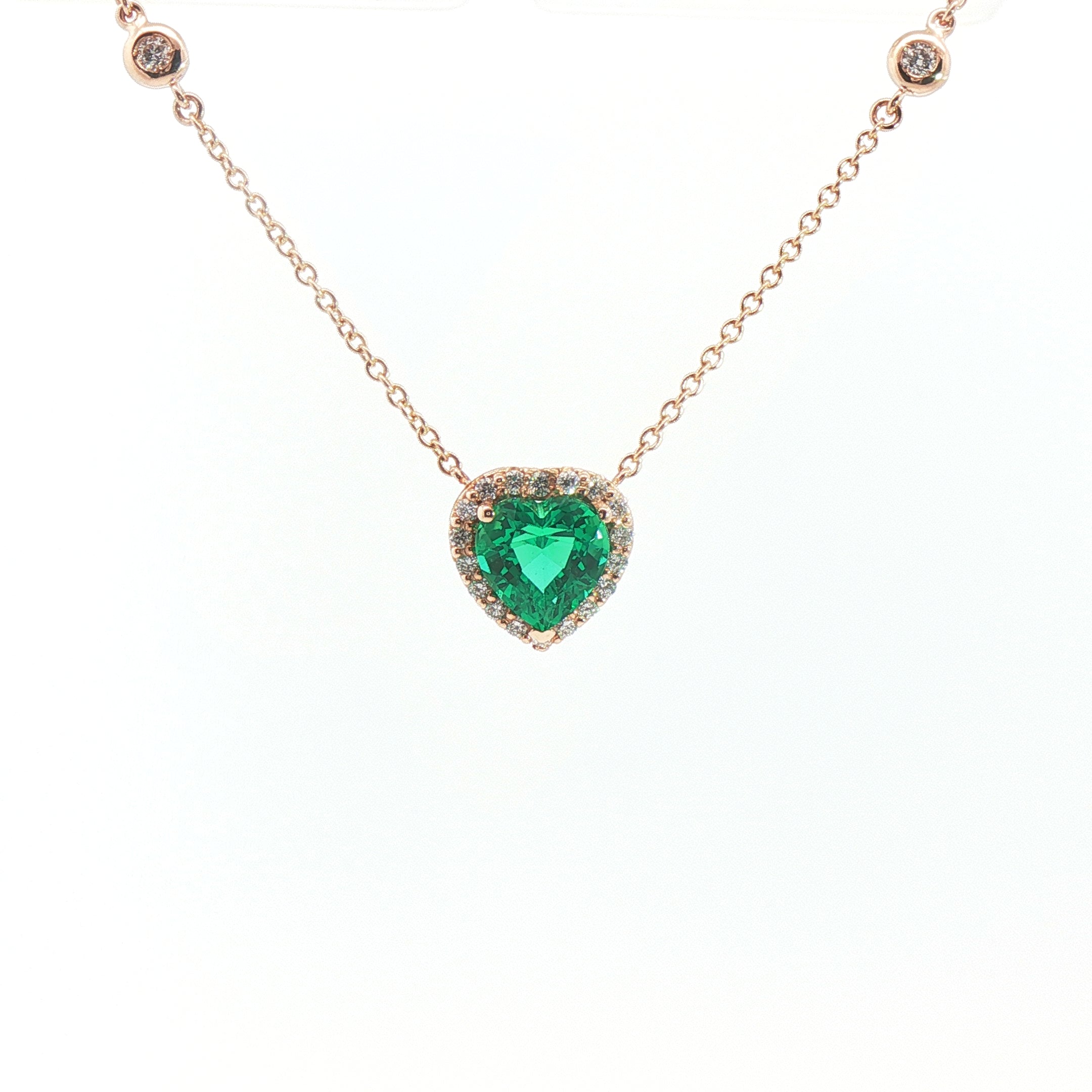 Girocollo in oro rosa con smeraldo Lab-Grown taglio cuore e diamanti Lab-Grown taglio brillante.