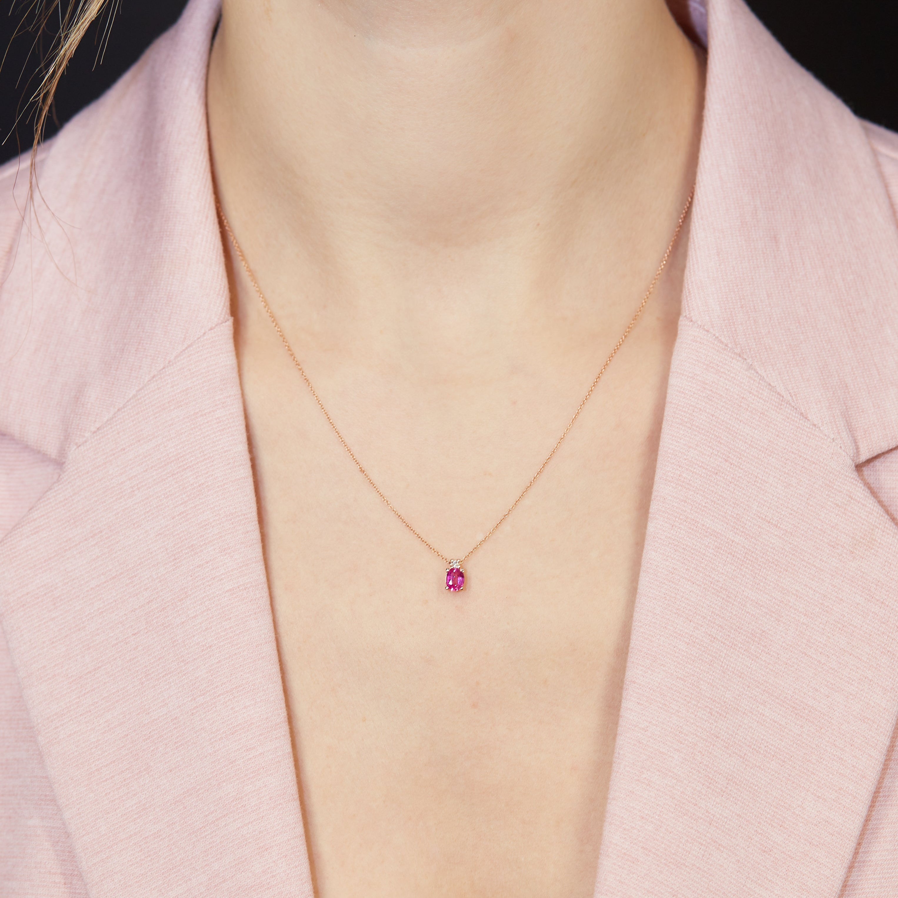 Realizzato in oro rosa 18kt, questo girocollo presenta un delicato zaffiro rosa Lab-Grown taglio ovale da 0,50 carati, scelto per il suo colore vivido e la forma raffinata.