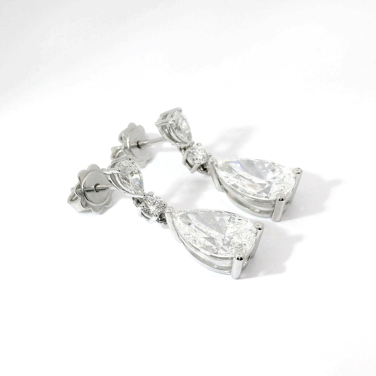 Orecchini a pendente in oro bianco e diamanti Lab-Grown taglio goccia e brillante, 6,24 carati.