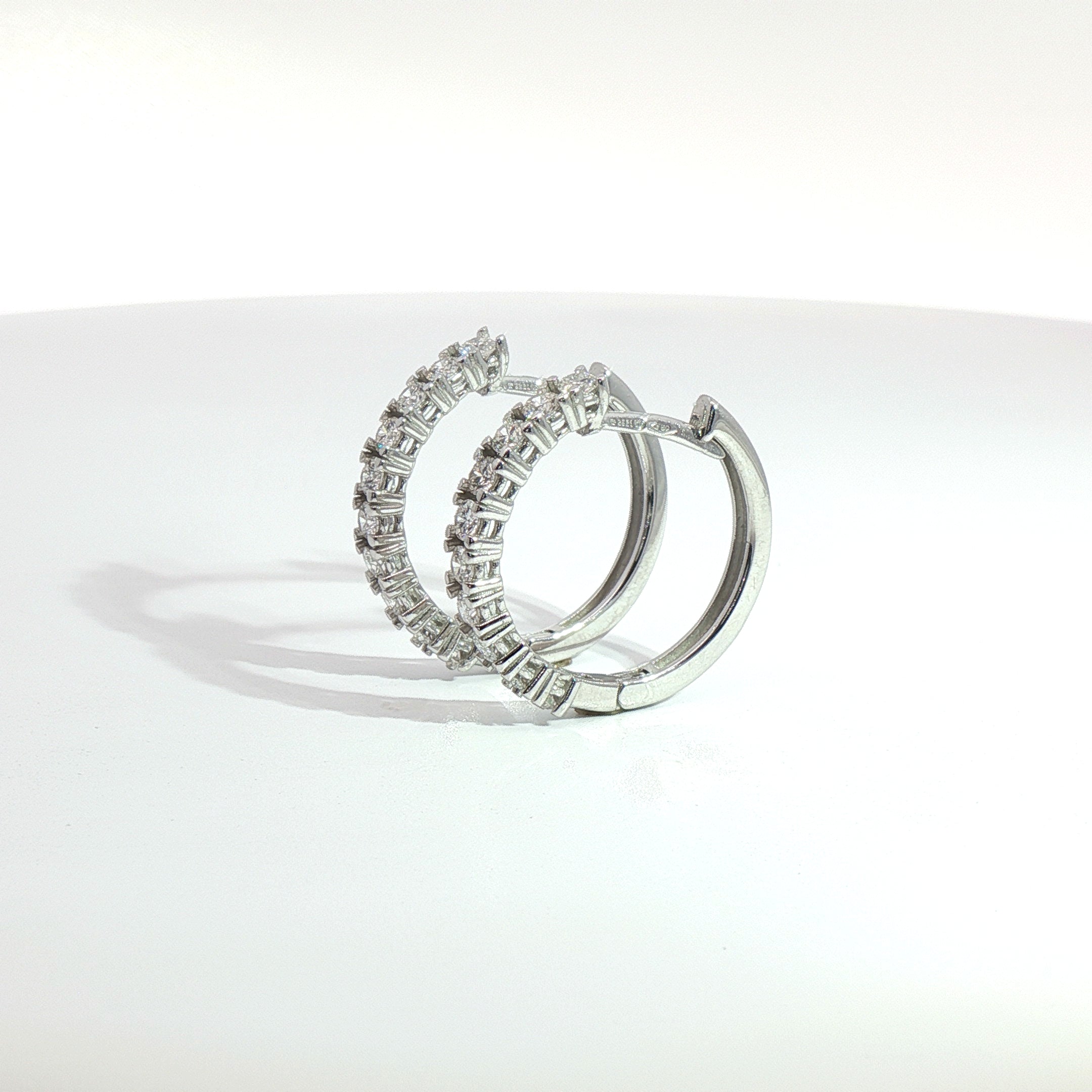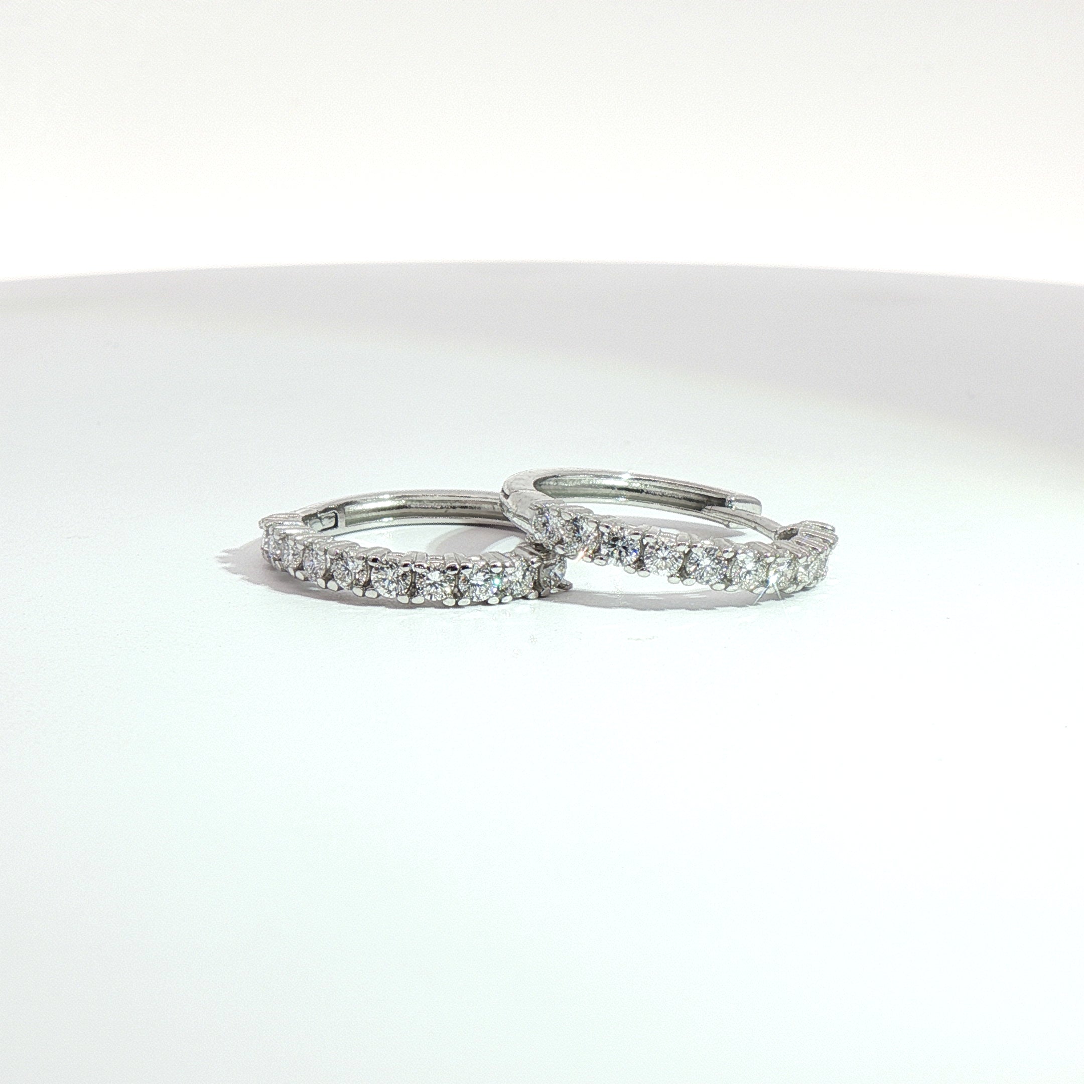 Orecchini a cerchio in oro bianco 18kt con diamanti Lab-Grown taglio brillante per un totale di 0,57 carati. Ogni orecchino è composto da 10 diamanti incassati a giorno, selezionati per colore E/F e purezza VS, così da garantire massima luminosità e un effetto scintillante da ogni angolazione.
