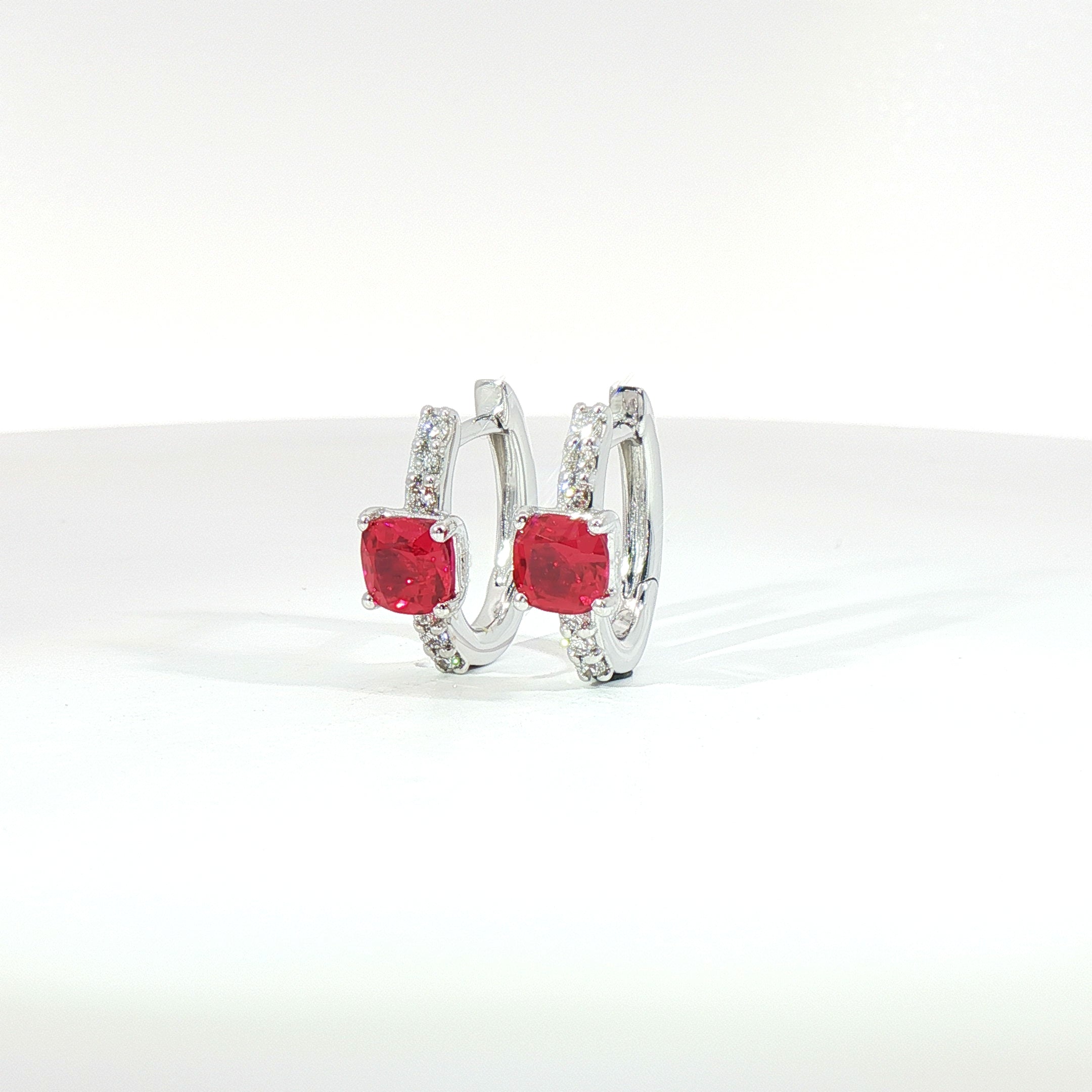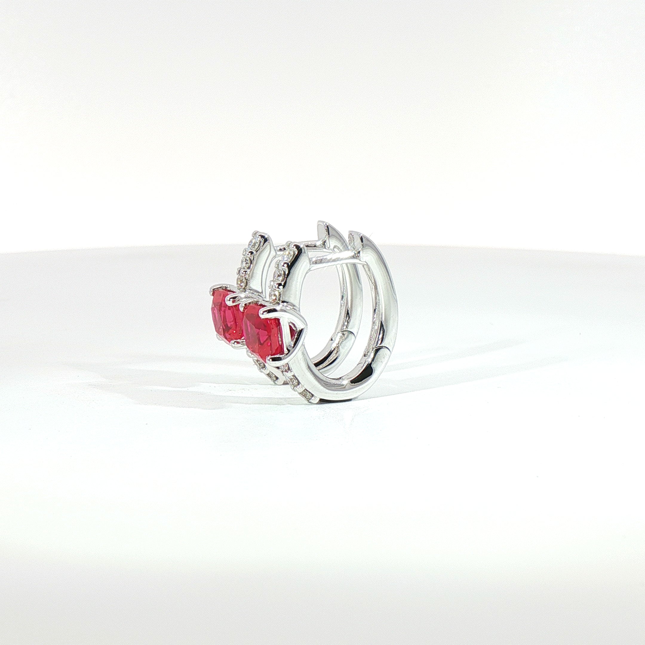 Realizzati in oro bianco 18kt, questi orecchini uniscono l’intensità del colore rosso con una luminosità sofisticata, grazie a una composizione pensata per valorizzare forma e dettagli.
