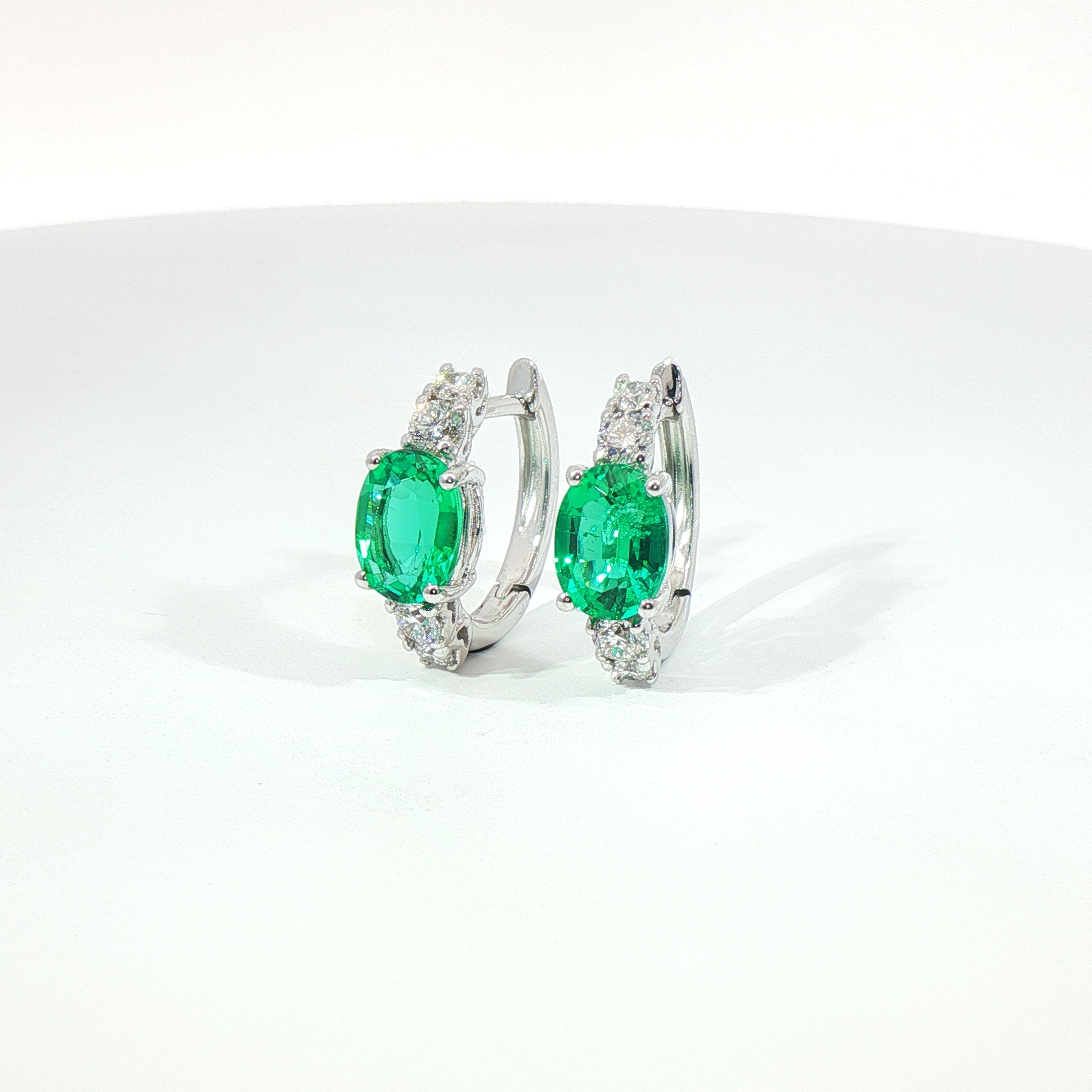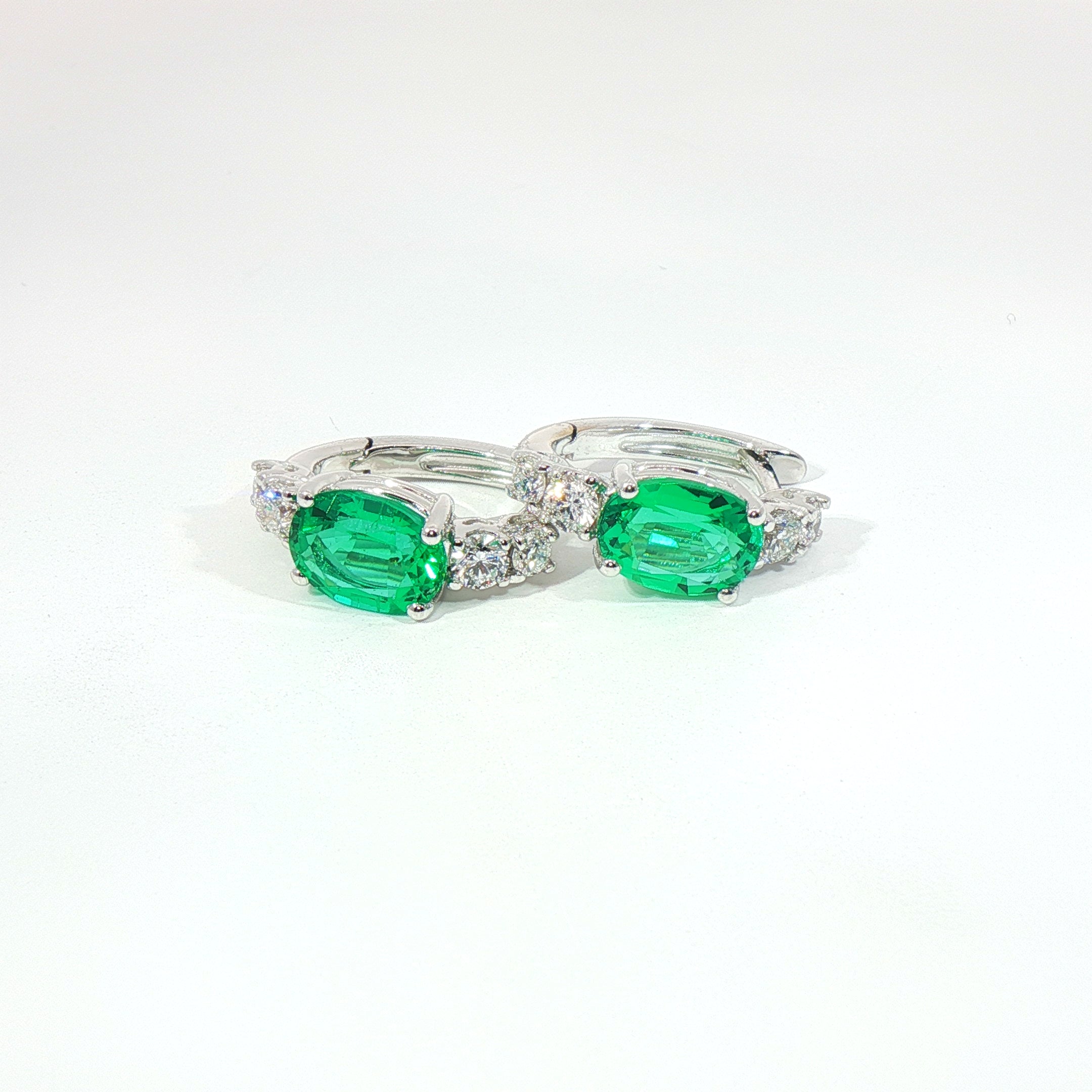 Orecchini in oro bianco con smeraldi Lab-Grown taglio ovale e diamanti Lab-Grown taglio brillante.
