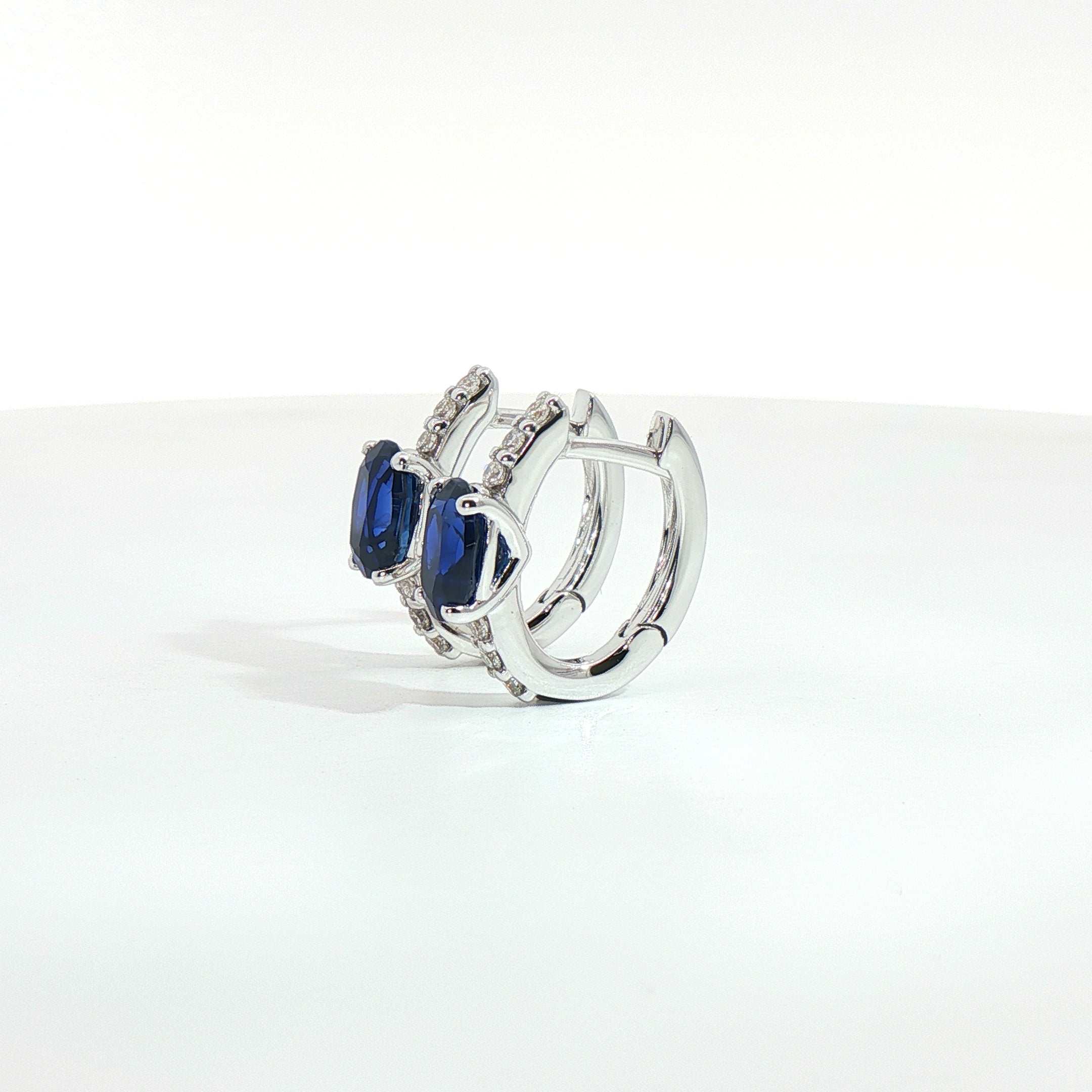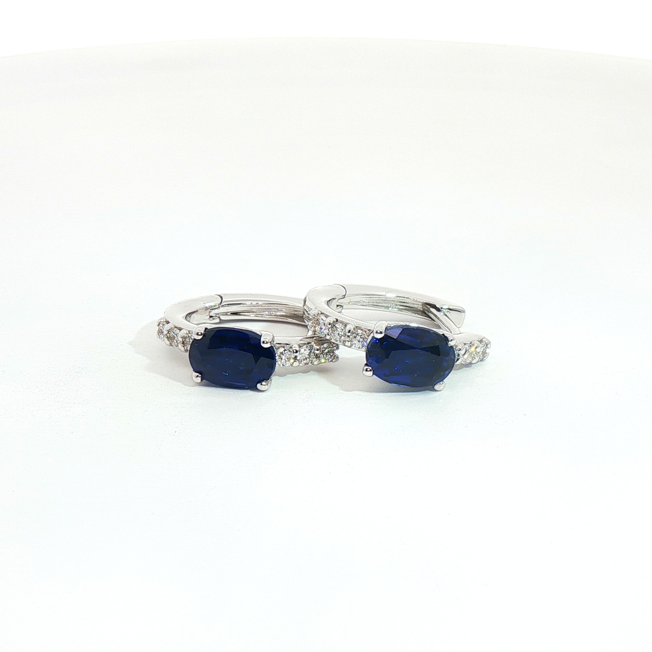 Orecchini in oro bianco con zaffiri Lab-Grown taglio ovale e diamanti Lab-Grown taglio brillante.