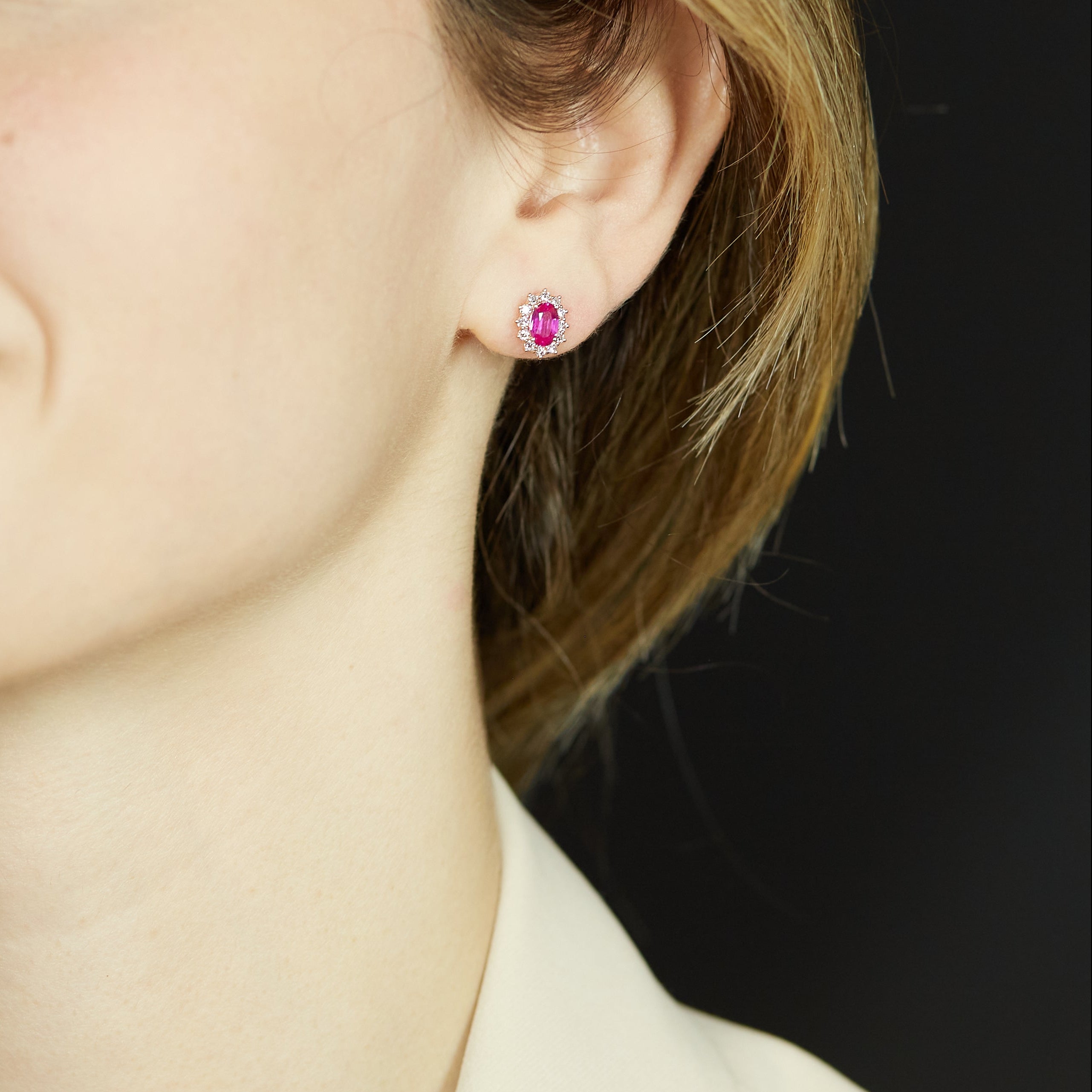 Orecchini punto luce con zaffiri rosa Lab-Grown taglio ovale diamanti Lab-Grown taglio brillante.