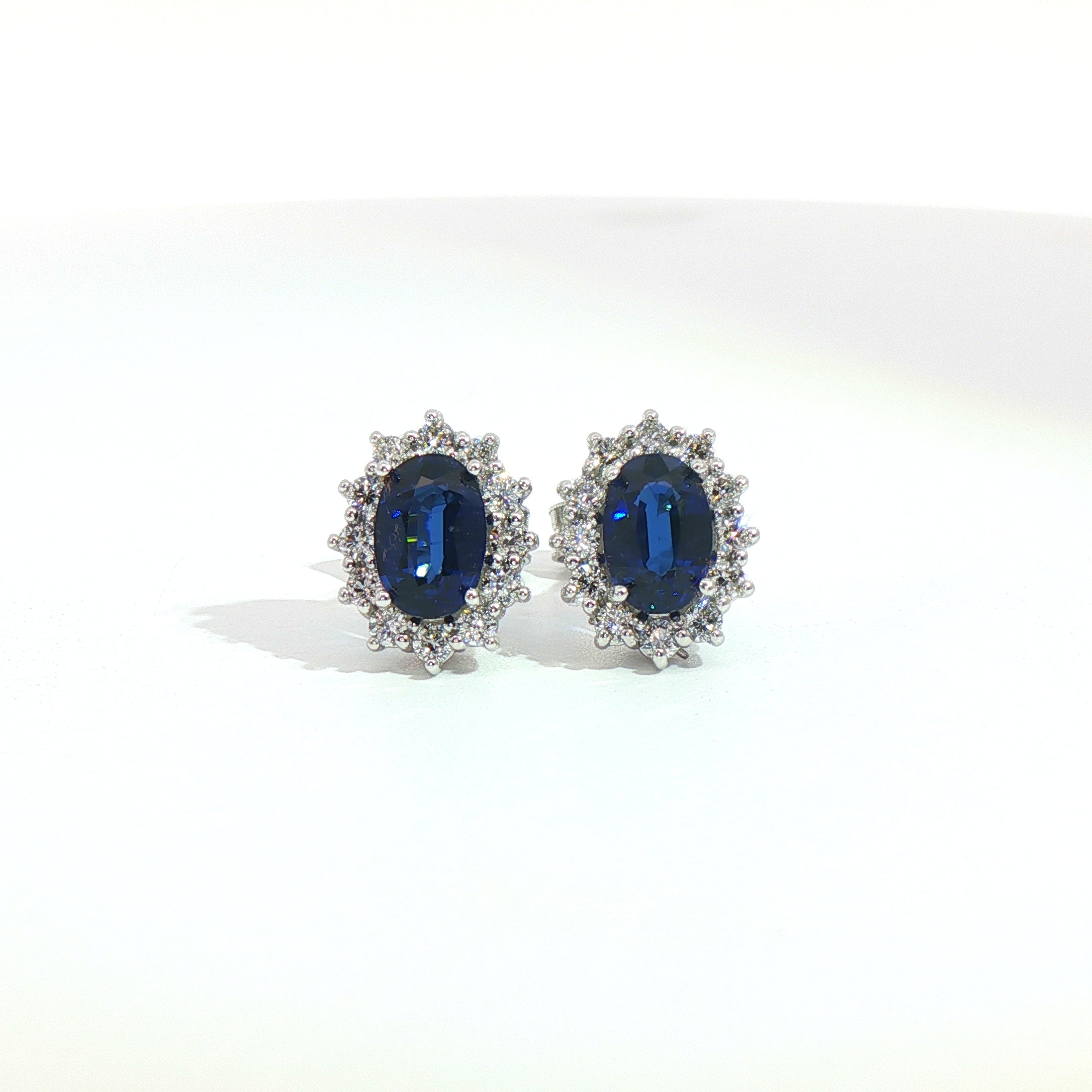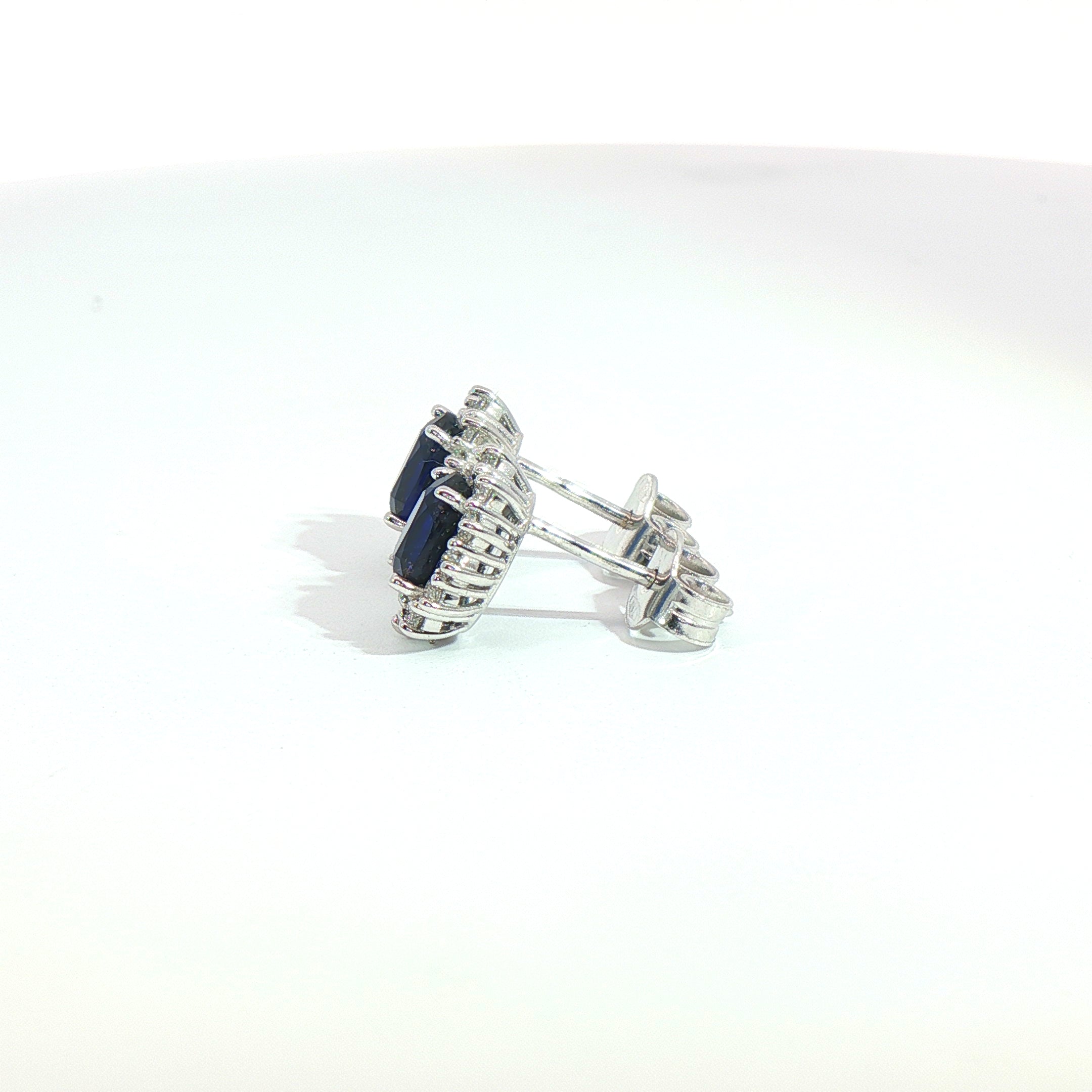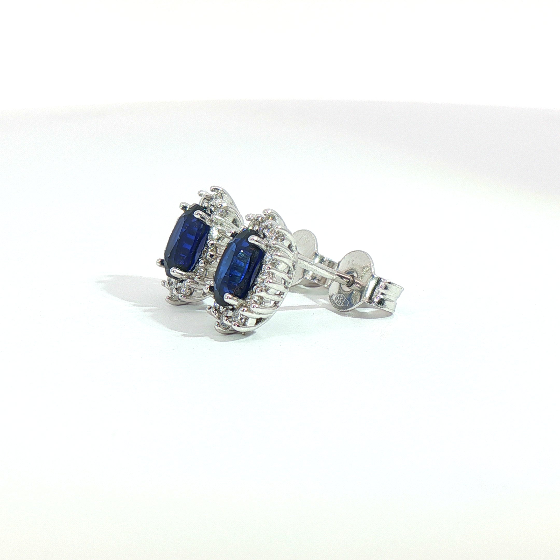 Orecchini punto luce in oro bianco con zaffiri Lab-Grown taglio ovale e diamanti Lab-Grown taglio brillante.