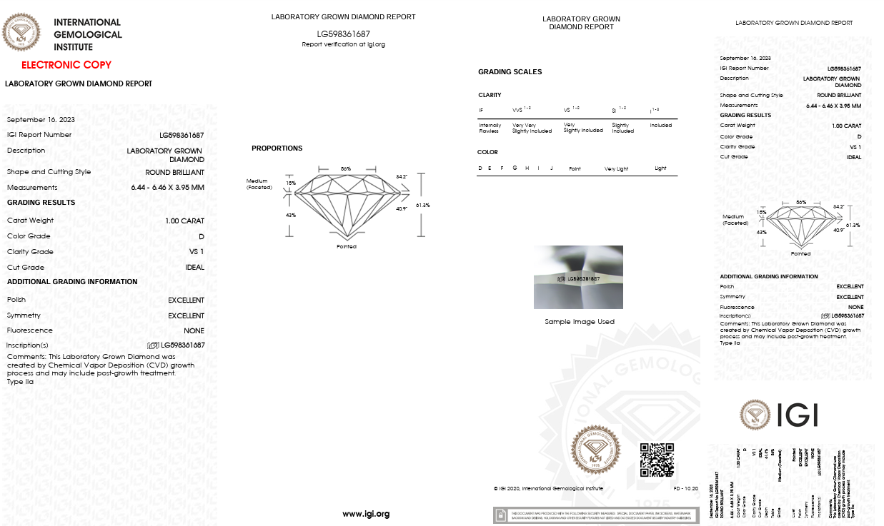 Tutti i diamanti di C-01 jewels sopra 1,00 ct (per quanto riguarda i tagli di forma) sono dotati di di certificatione IGI internazionale.