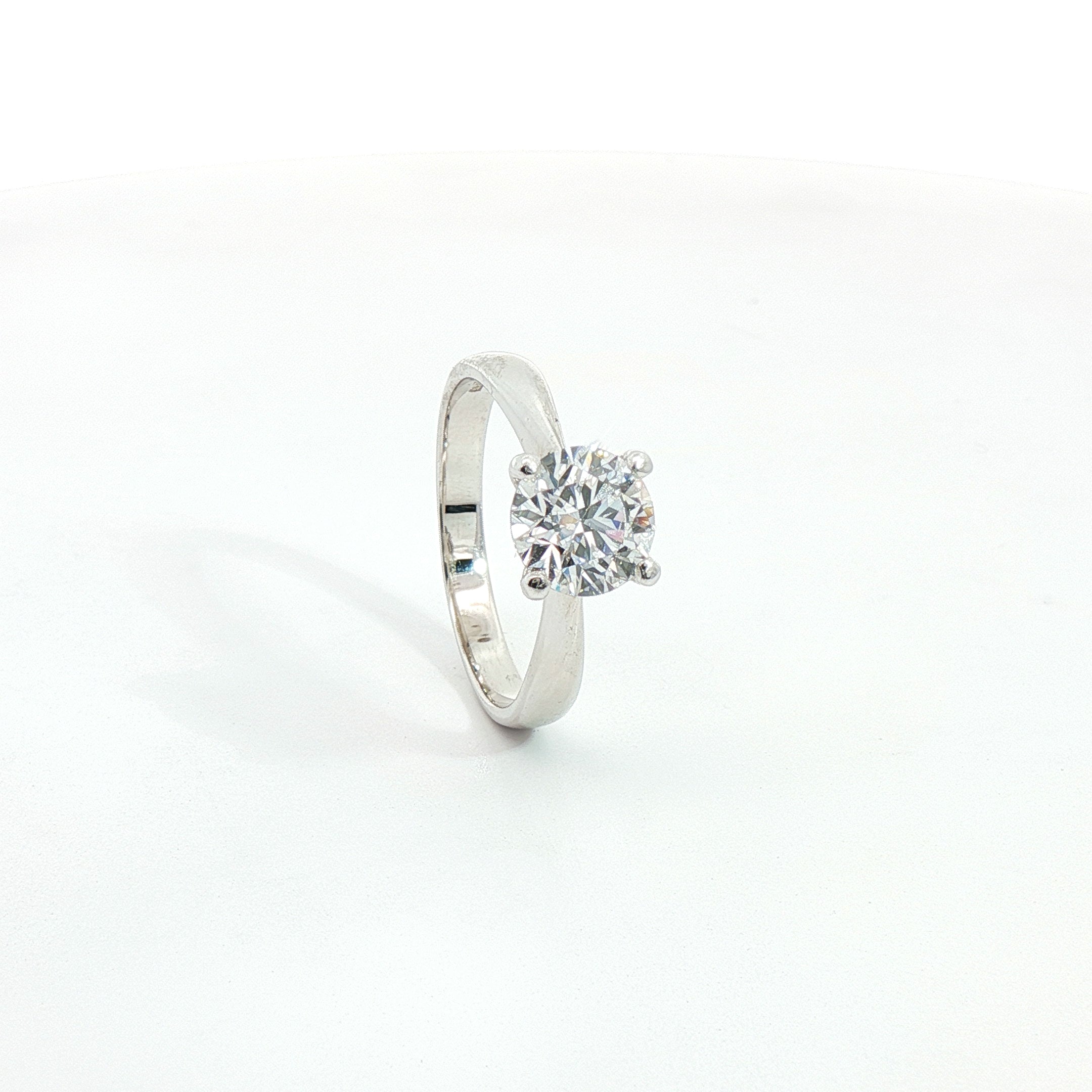 Solitario in oro bianco con diamante Lab-Grown taglio brillante, 1,44 carati.