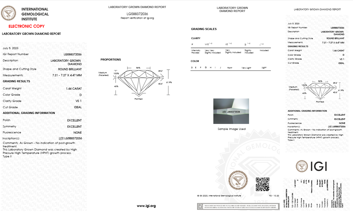 Tutti i diamanti di C-01 jewels sopra 1,00 ct (per quanto riguarda i tagli di forma) sono dotati di di certificatione IGI internazionale.