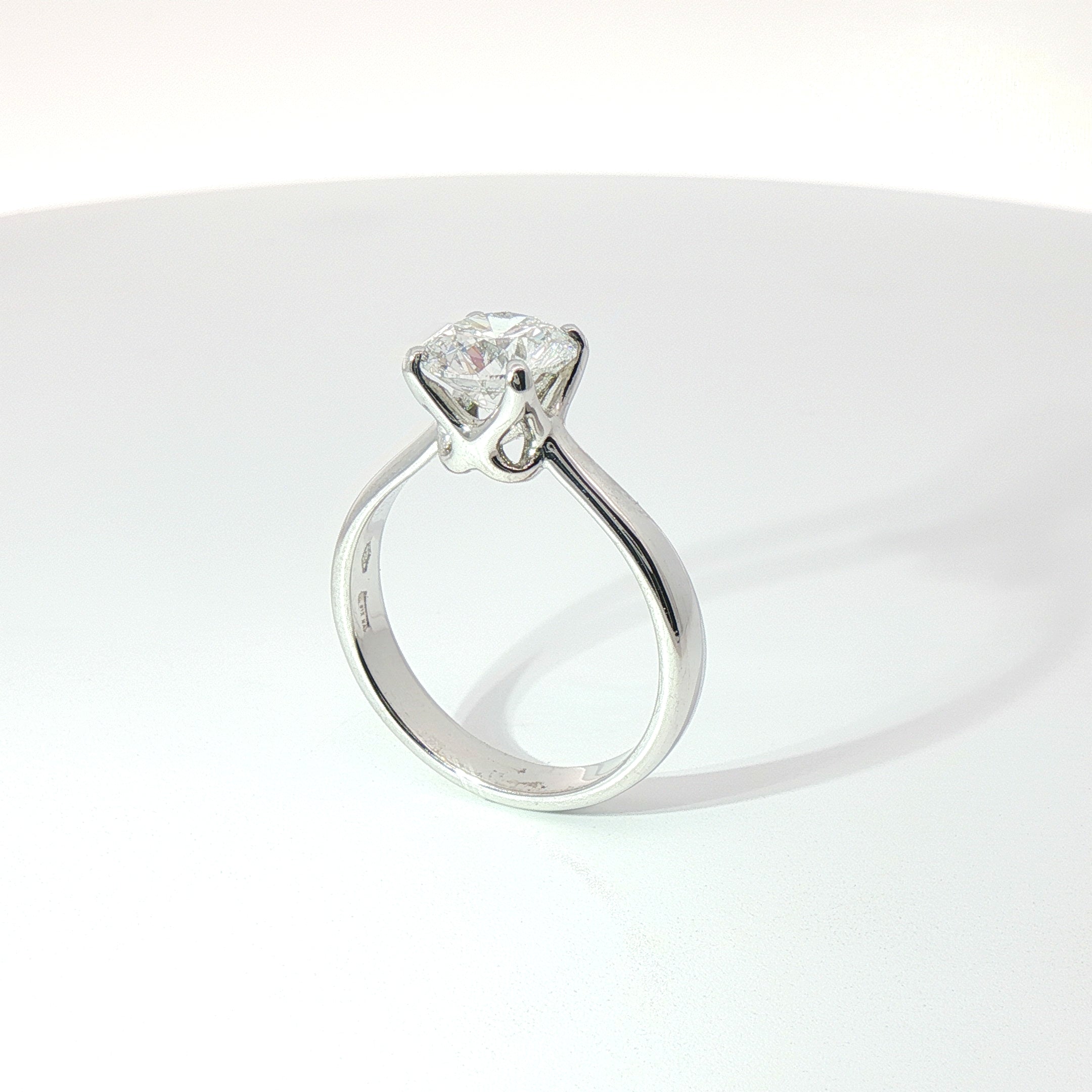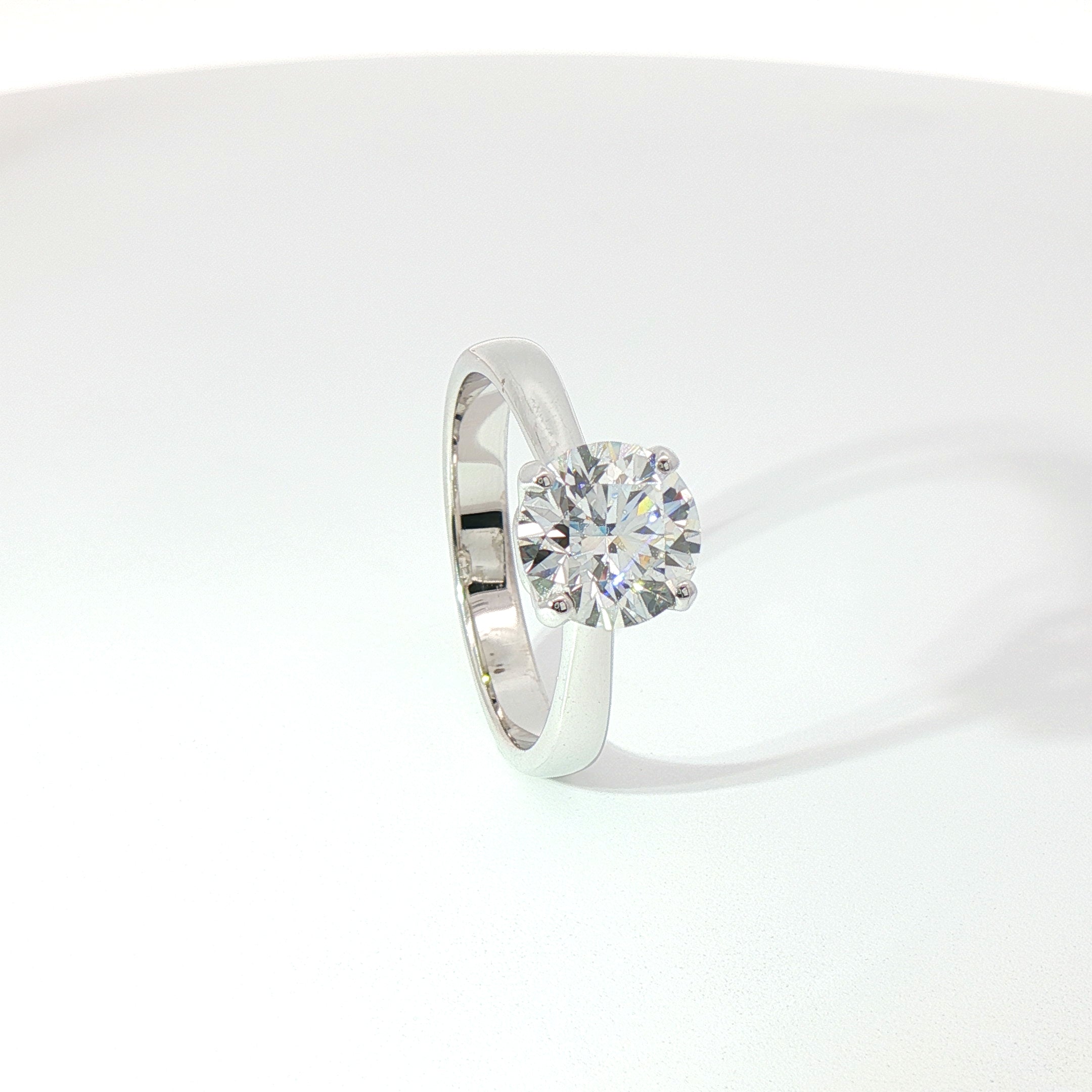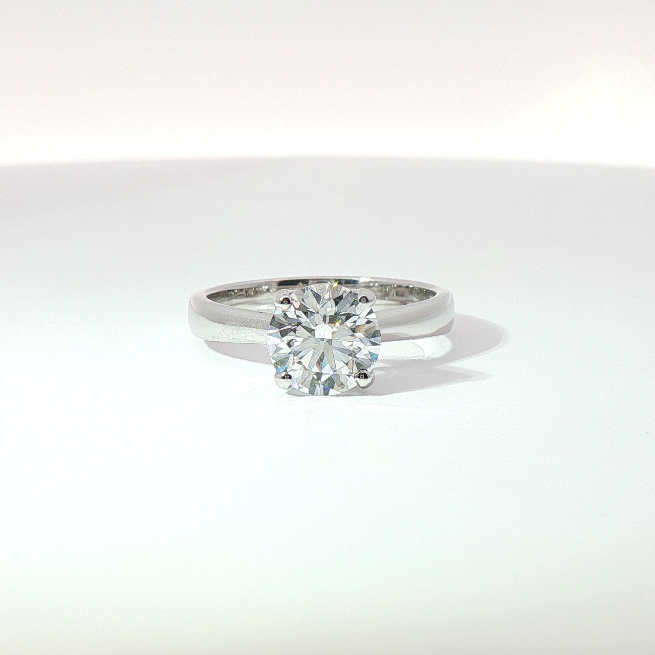 Solitario in oro bianco 18kt con diamante Lab-Grown taglio brillante da 1,70 carati, certificato IGI, scelto per la sua straordinaria luminosità e proporzioni impeccabili.