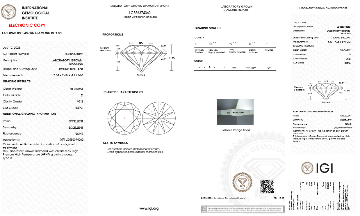 1,70 CERTIFICATO IGI: LG586374062COLORE D PUREZZA VS2